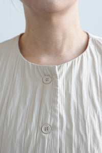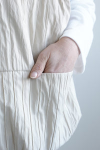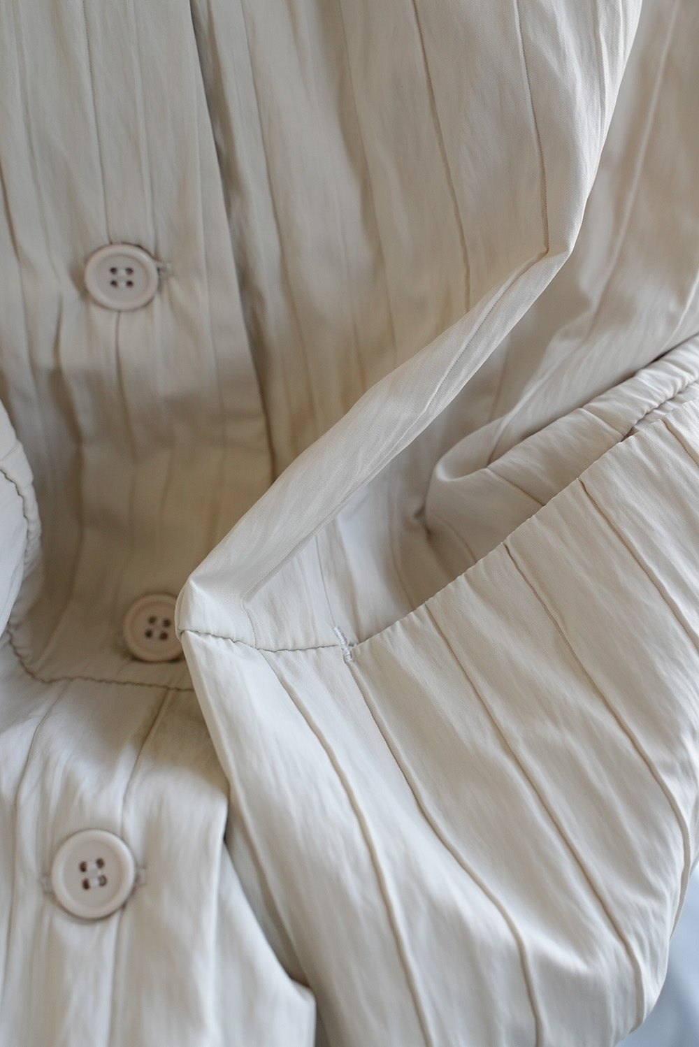 表情のあるストライプ生地と、ふんわり丸みのあるバルーンシルエットが魅力の一枚。