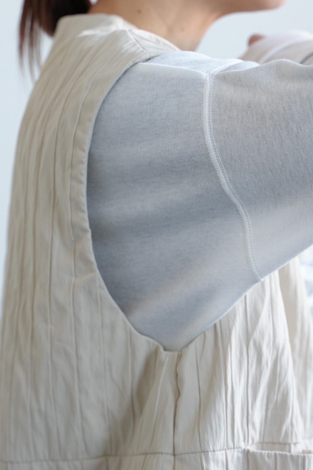 裾にかけて広がるバルーン仕様のフォルムが、さりげなく体型カバーもしながら、重ね着しやすいデザインです。