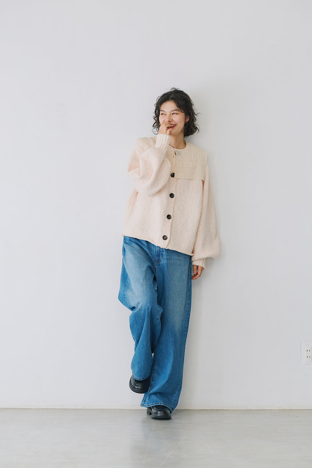 様々なトップスに取り入れやすいデニムは、ビッグシルエットのシャツやフィット感のあるトップスとの着こなしもおすすめ。