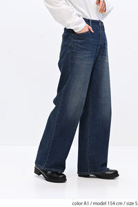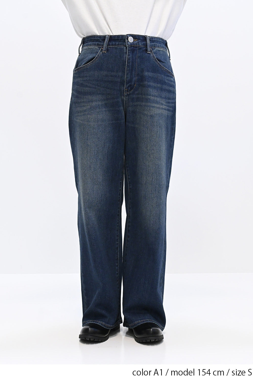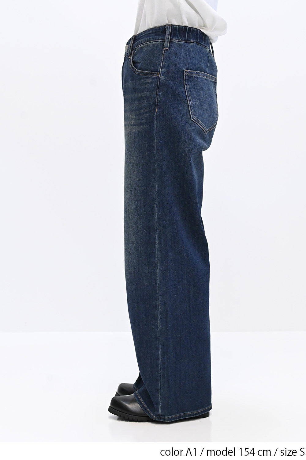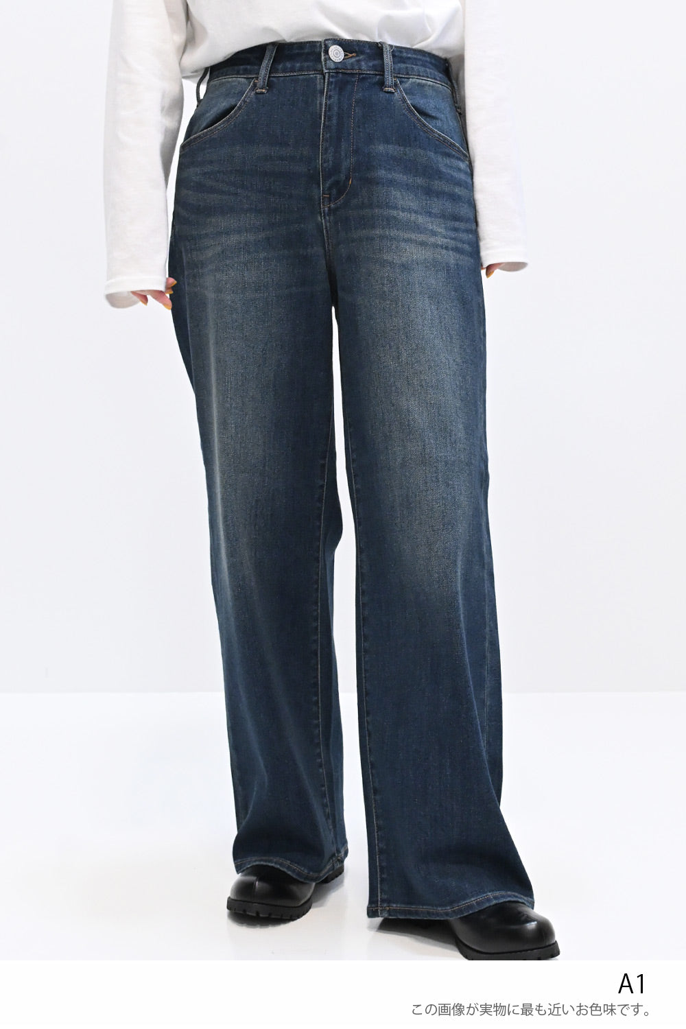 やわらかな穿き心地が人気のイージーワイドデニムに新色オーバーダイ(A1)が登場。