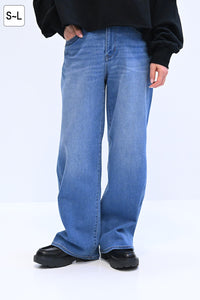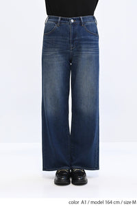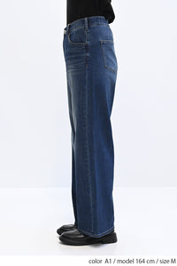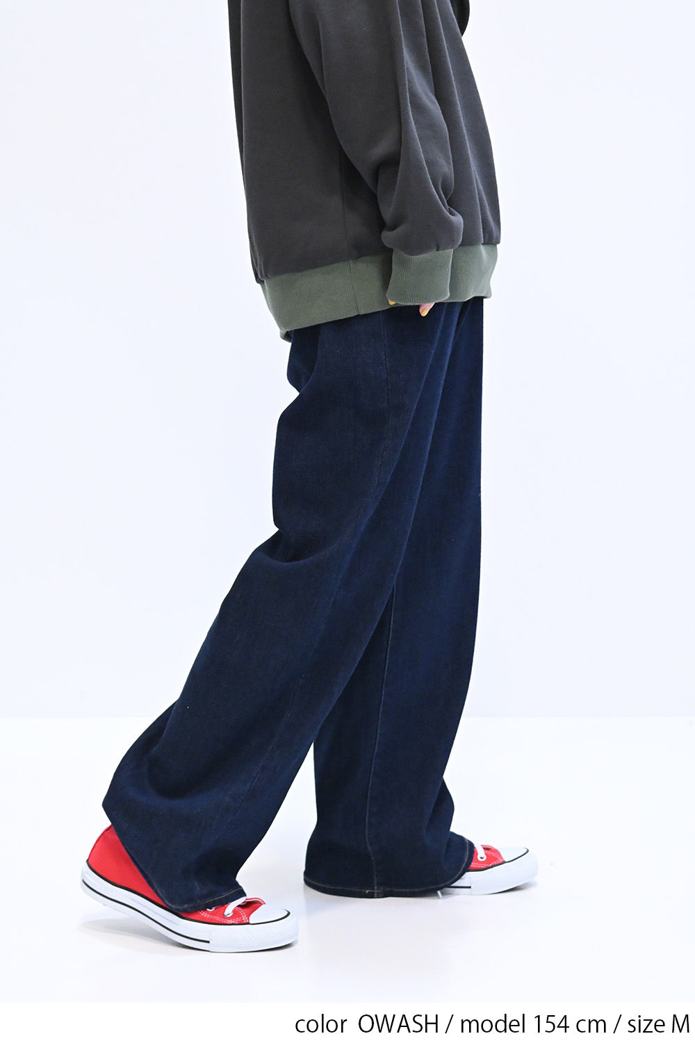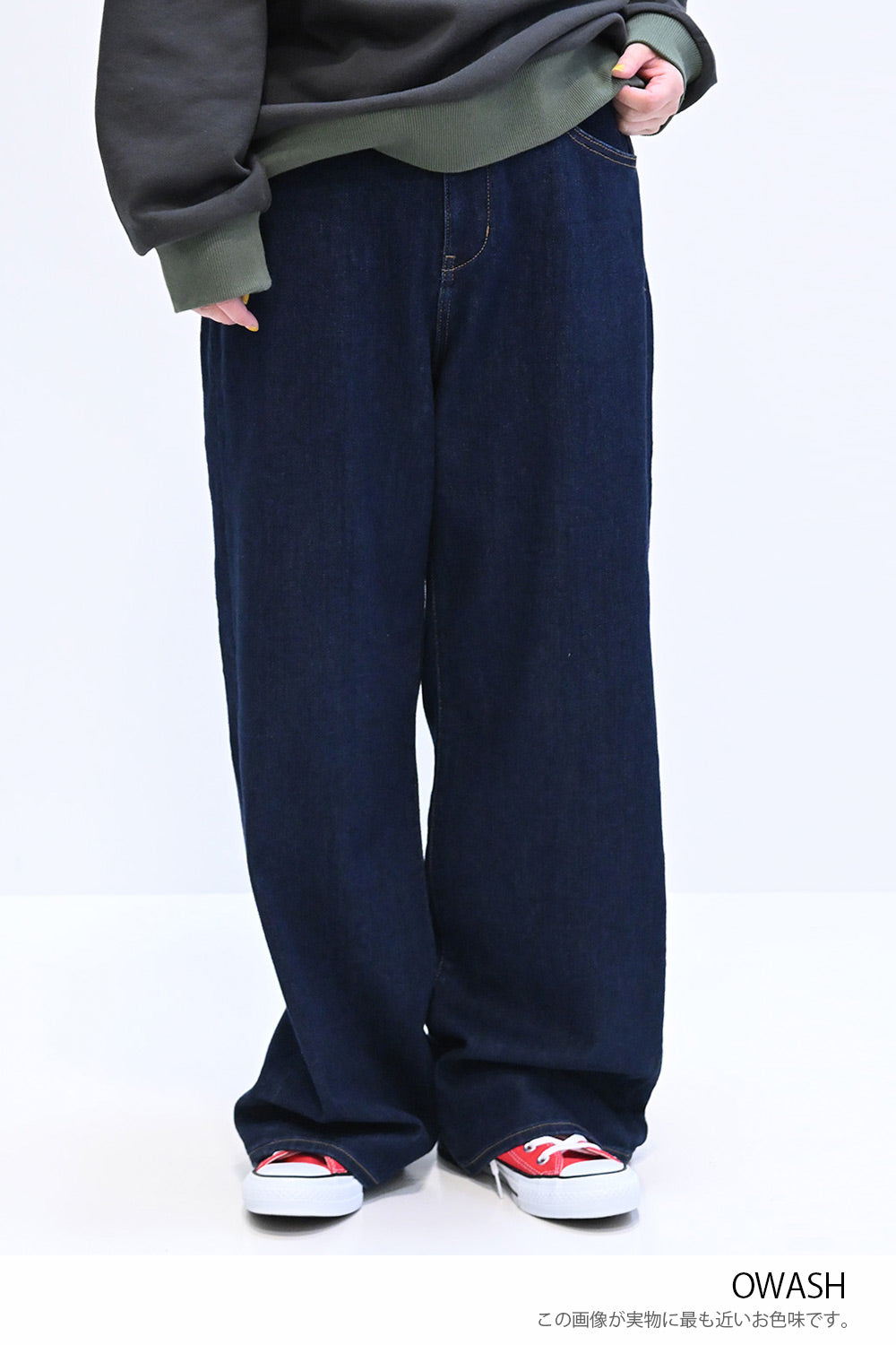 やわらかな穿き心地が人気のイージーワイドデニムに新色オーバーダイ(A1)が登場。