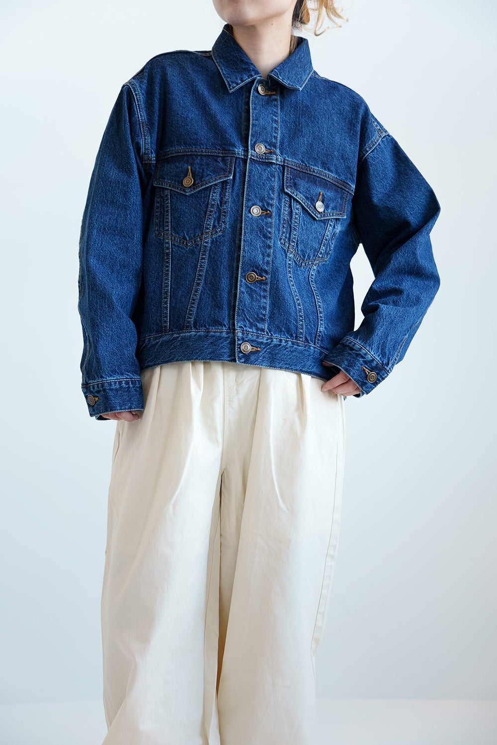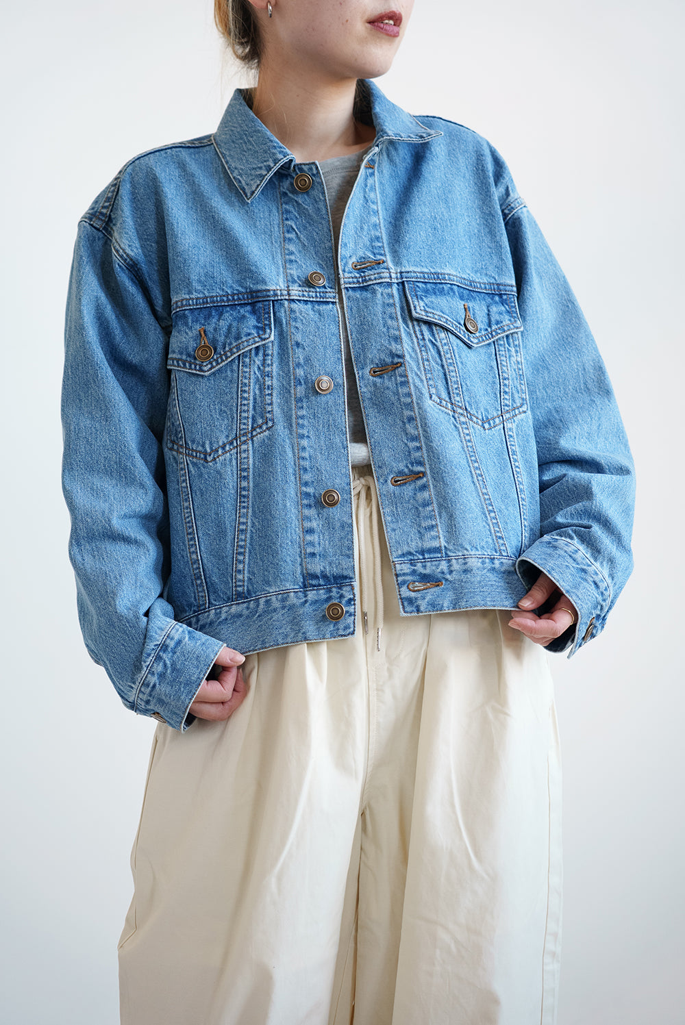 程よい厚みのデニム生地で、季節の変わり目のアウターとして活躍します。