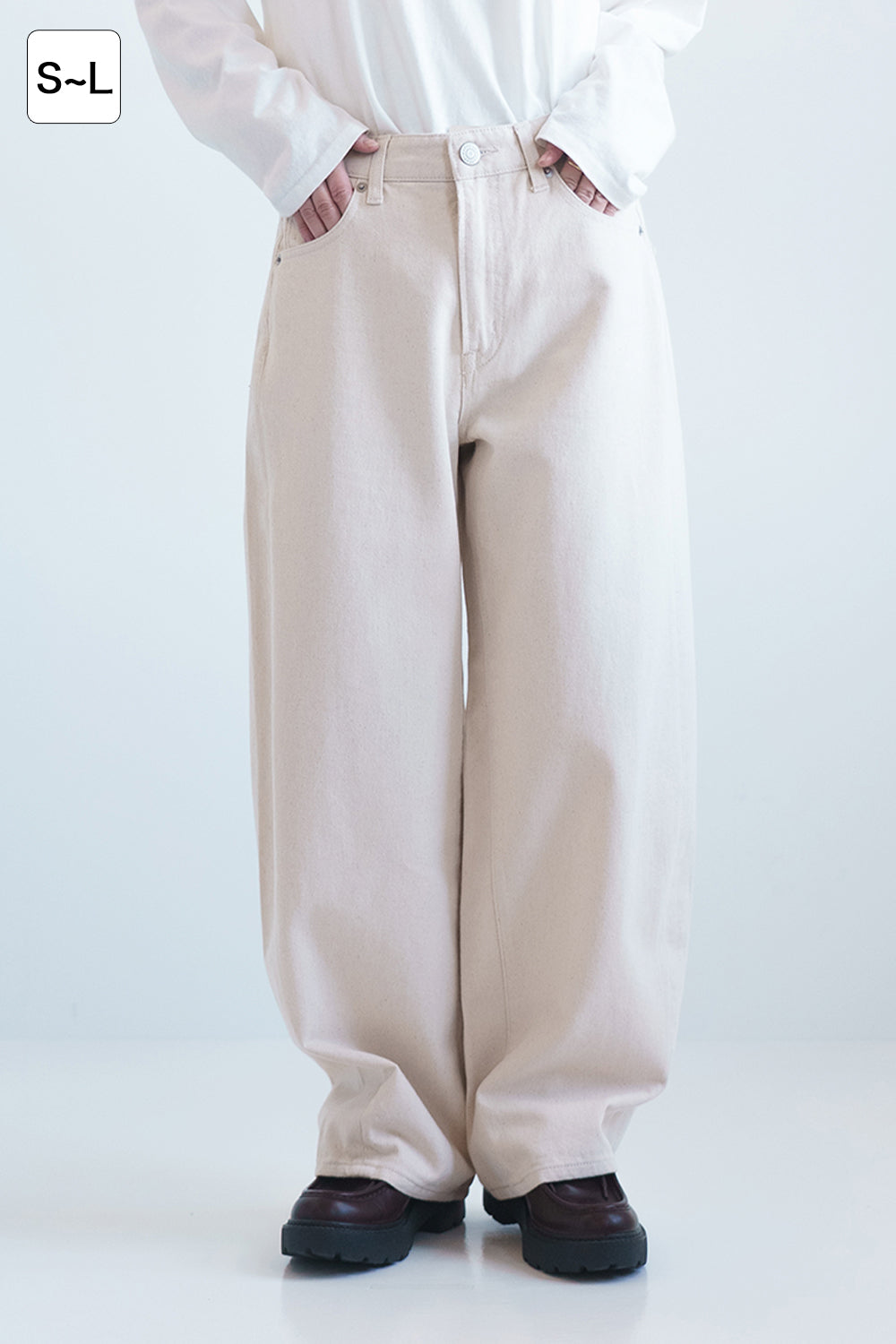 裾にかけてふんわりと丸みを描く、シルエットが印象的なデニムのイージーバルーンパンツ。