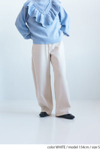 裾に向かってすっきりと細くなるシルエットが、自然なスタイルアップを叶え、さりげなく体型カバーをしてくれます。