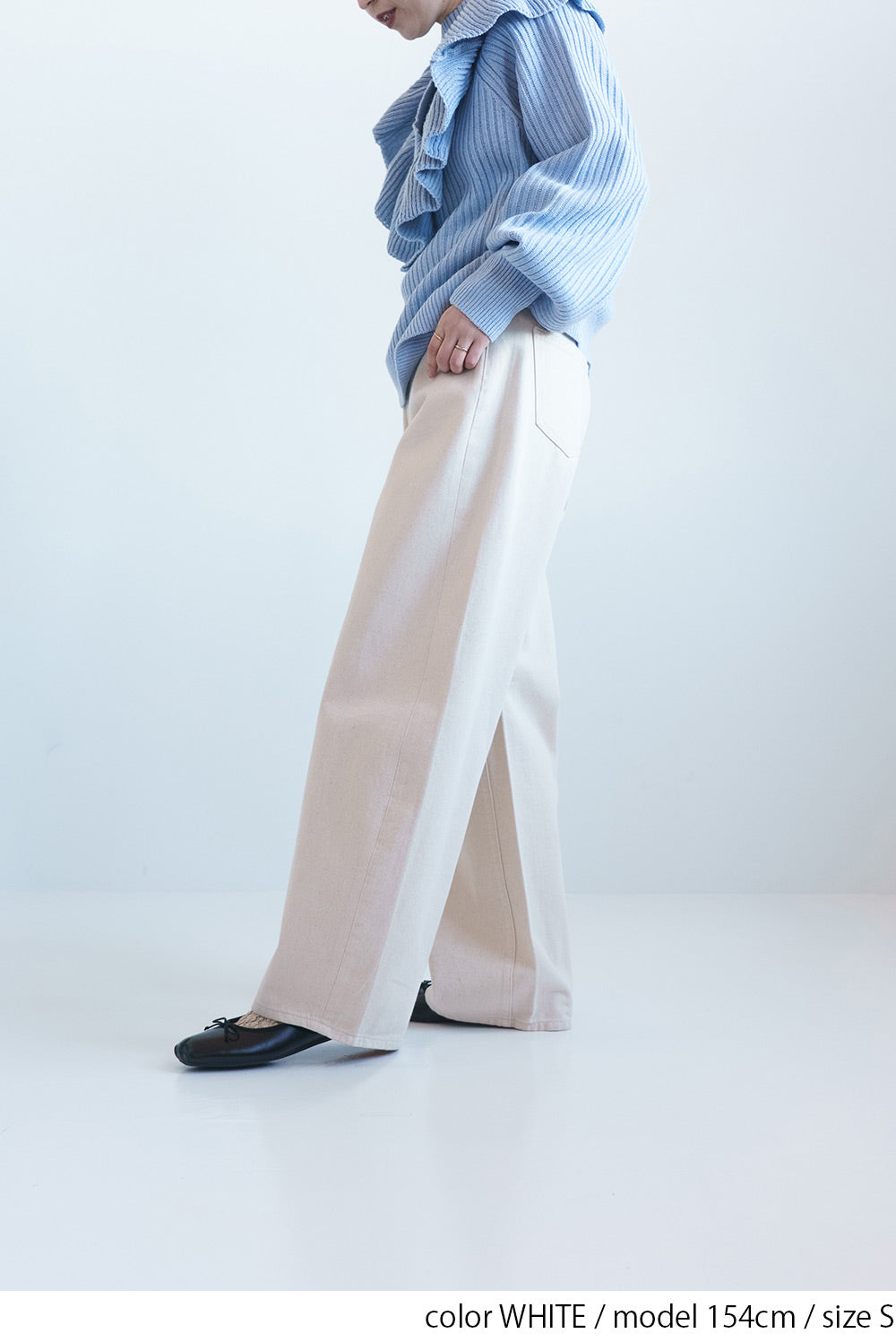 腰まわりはゆったりとした穿き心地ながら、立体的なライン設計で脚の形をきれいに見せてくれる一本です。