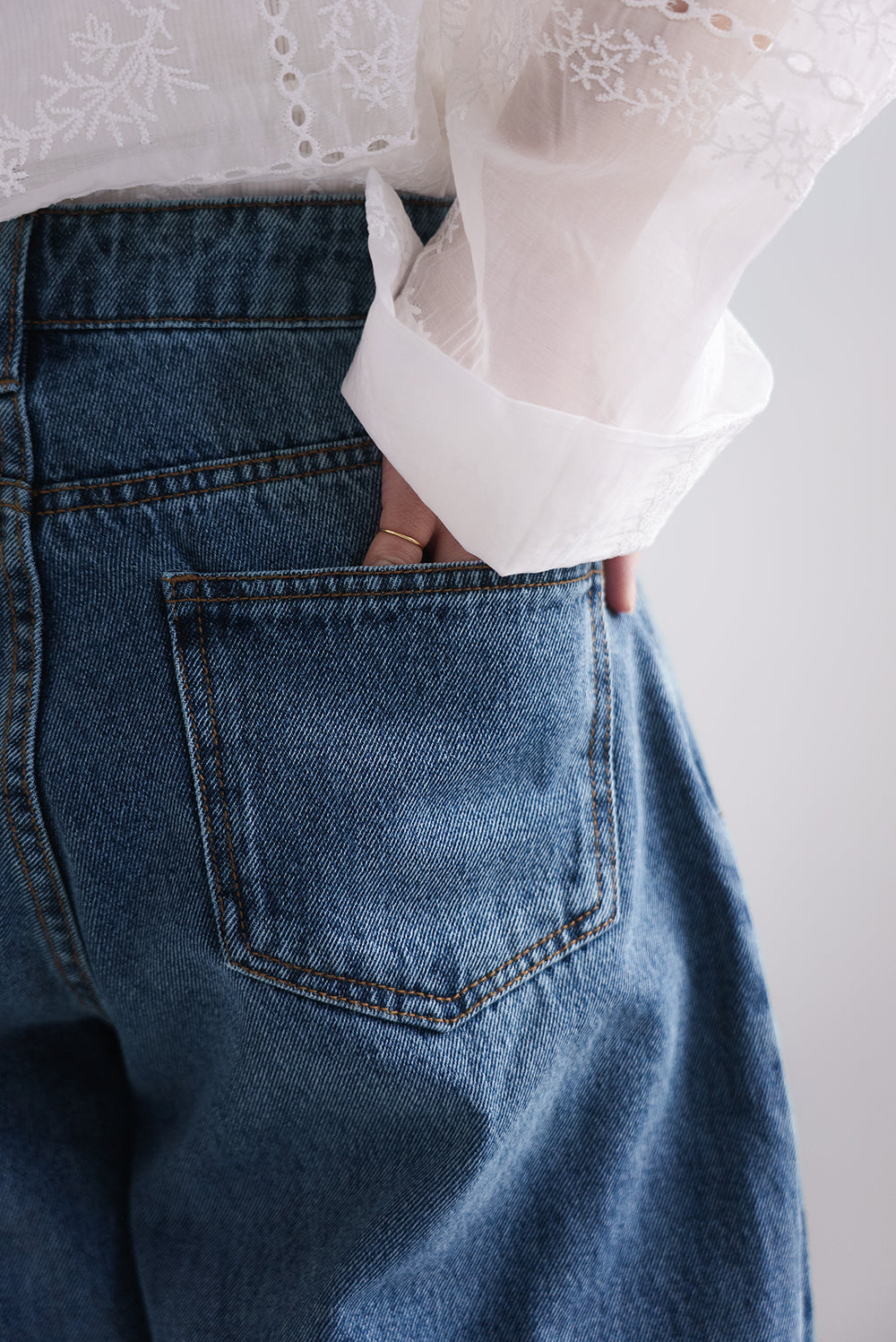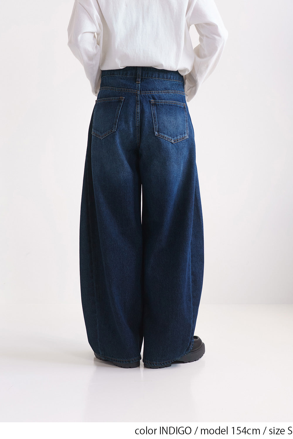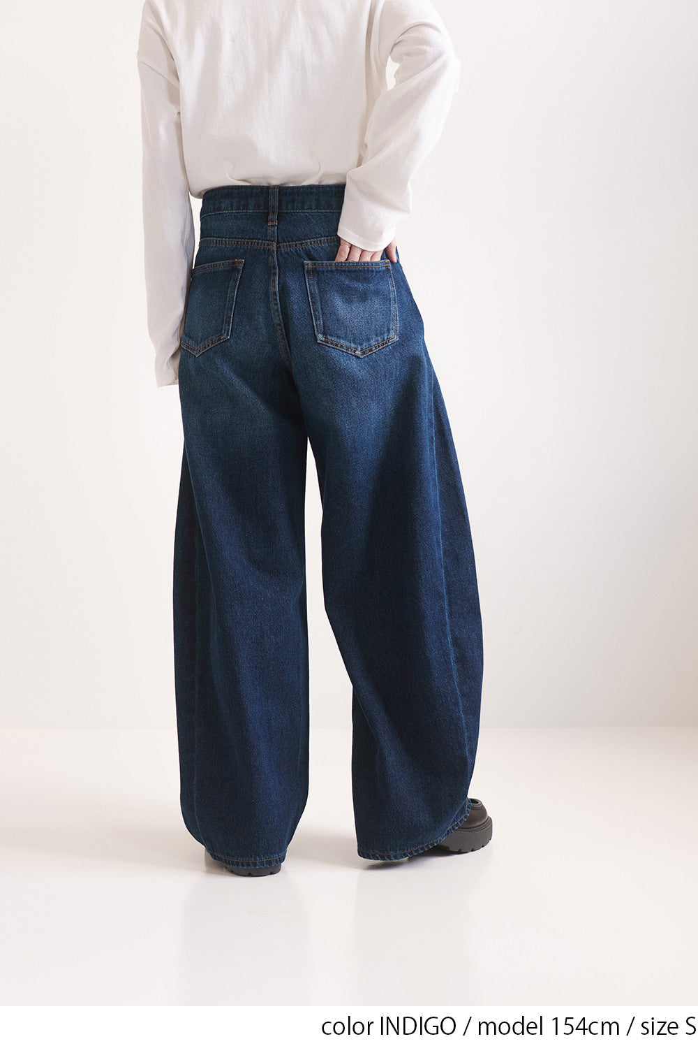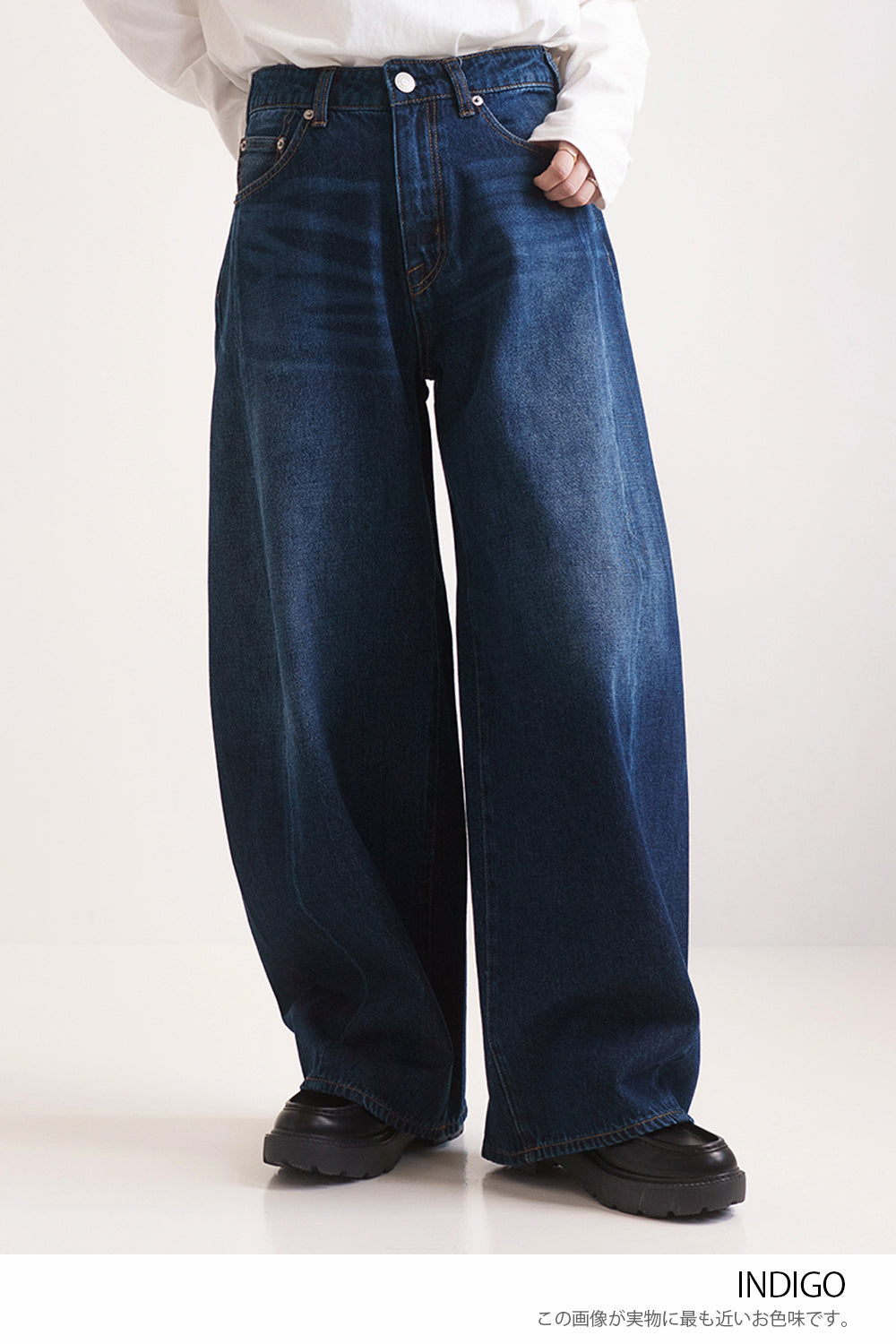 程よいワイド感がトレンドたっぷりのデニムワイドバレルパンツ。