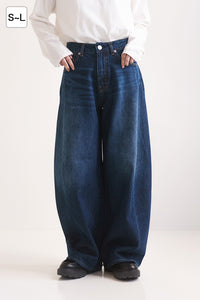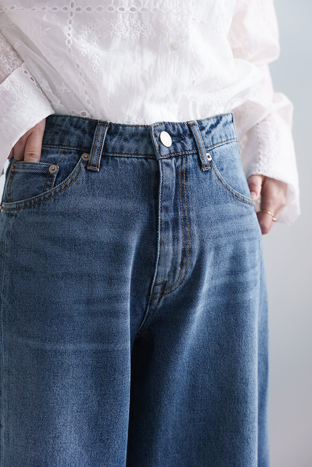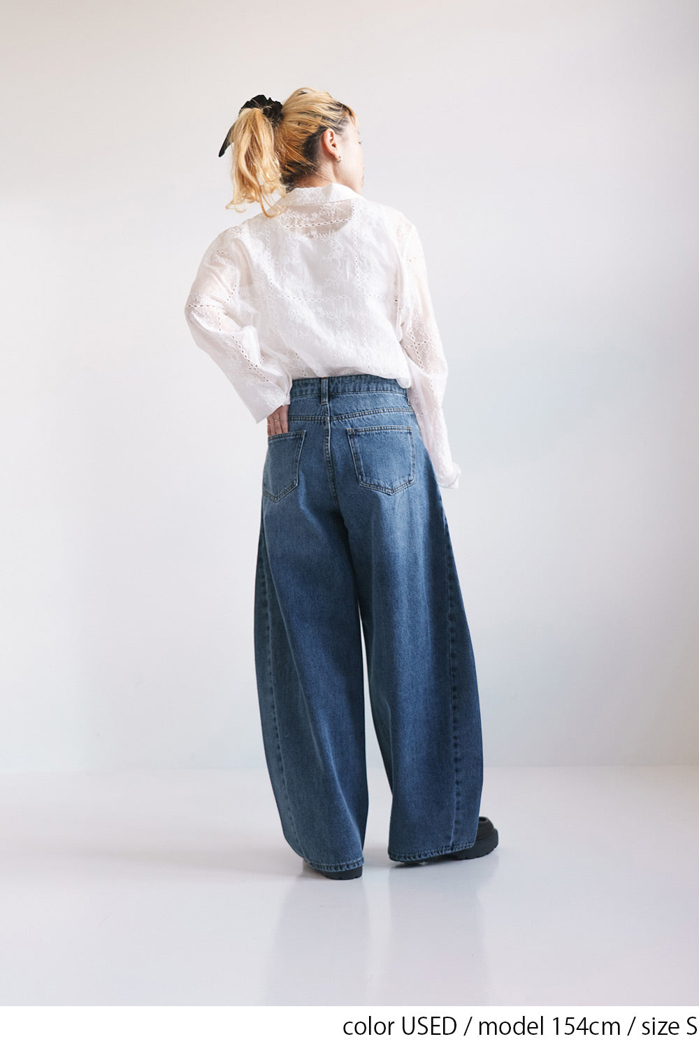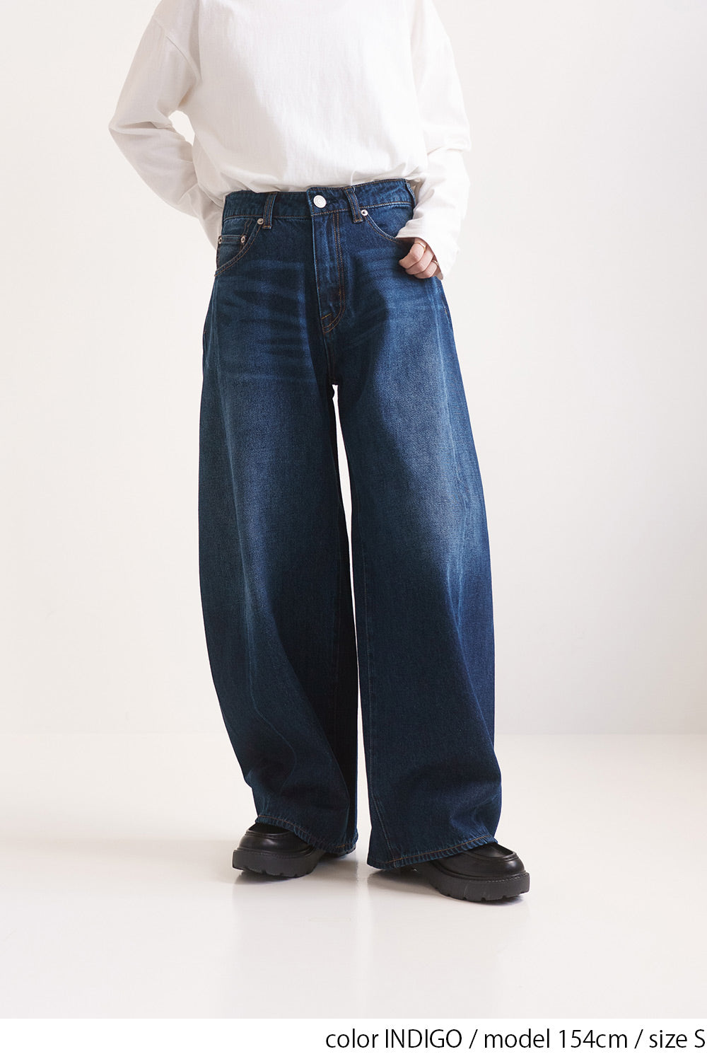 程よいワイド感がトレンドたっぷりのデニムワイドバレルパンツ。
