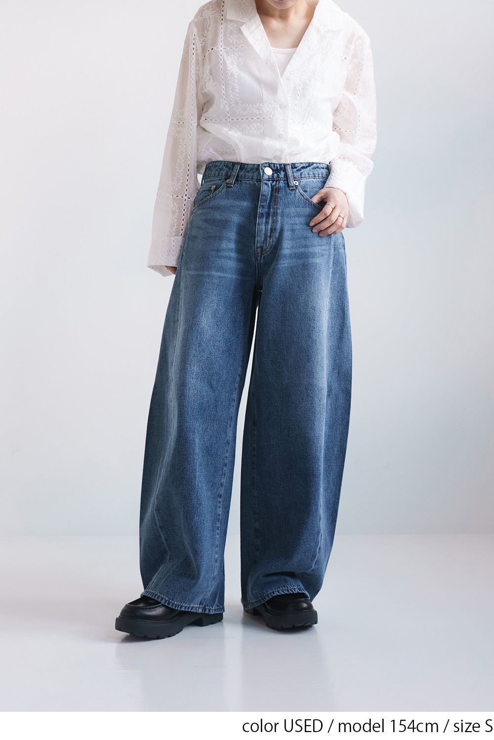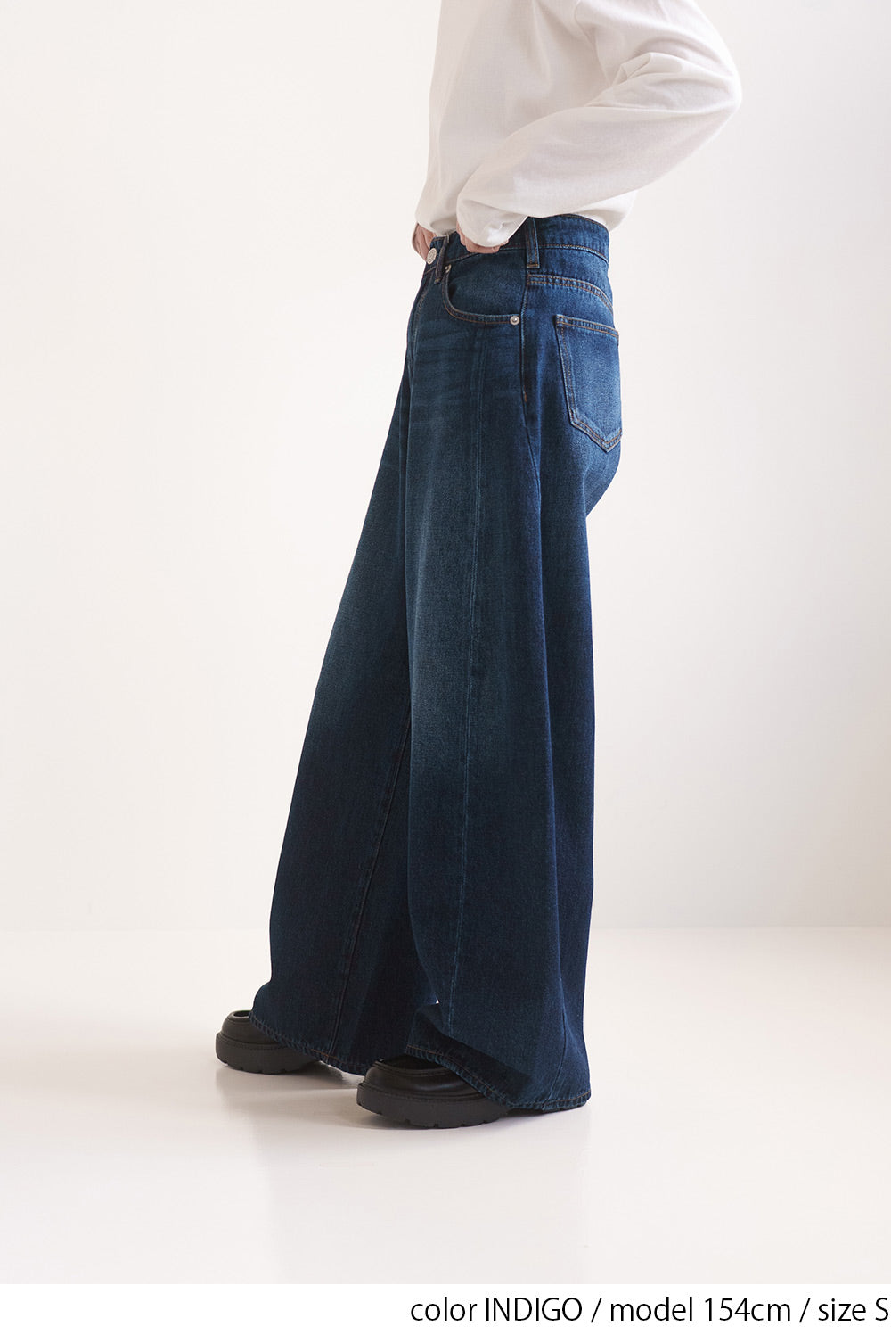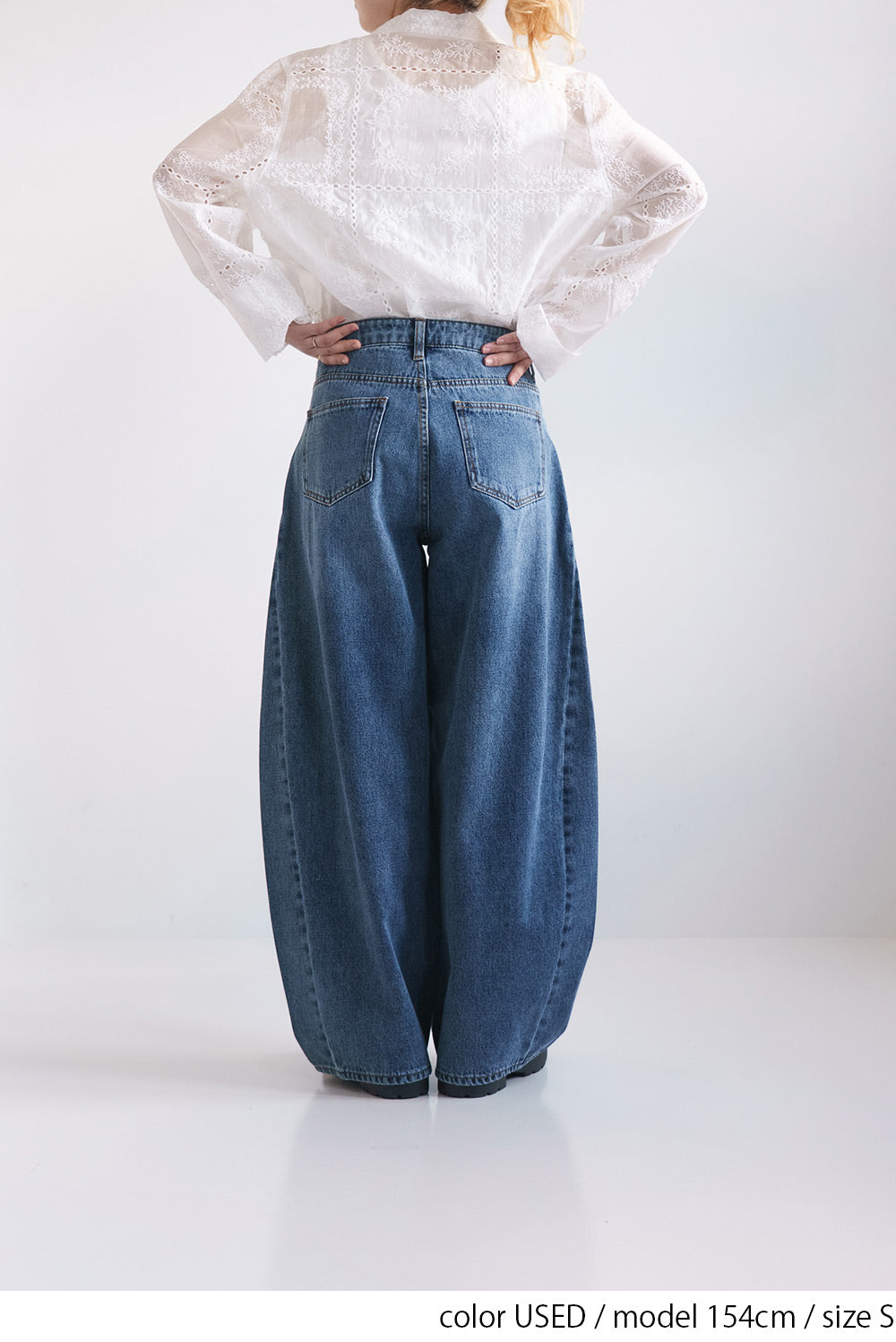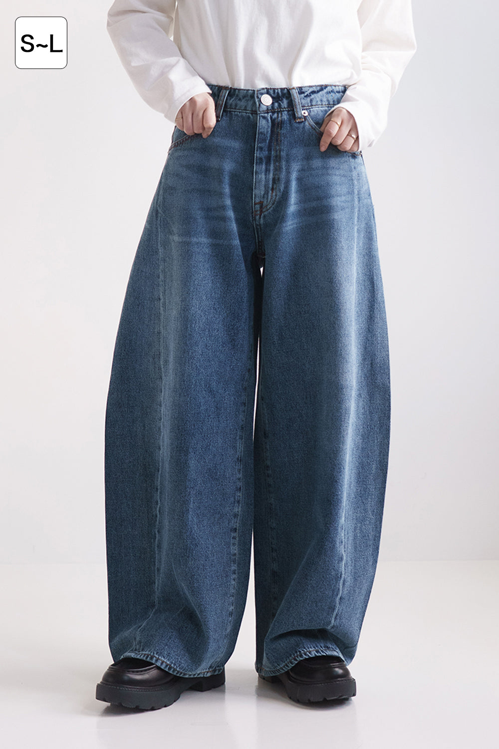 程よいワイド感がトレンドたっぷりのデニムワイドバレルパンツ。