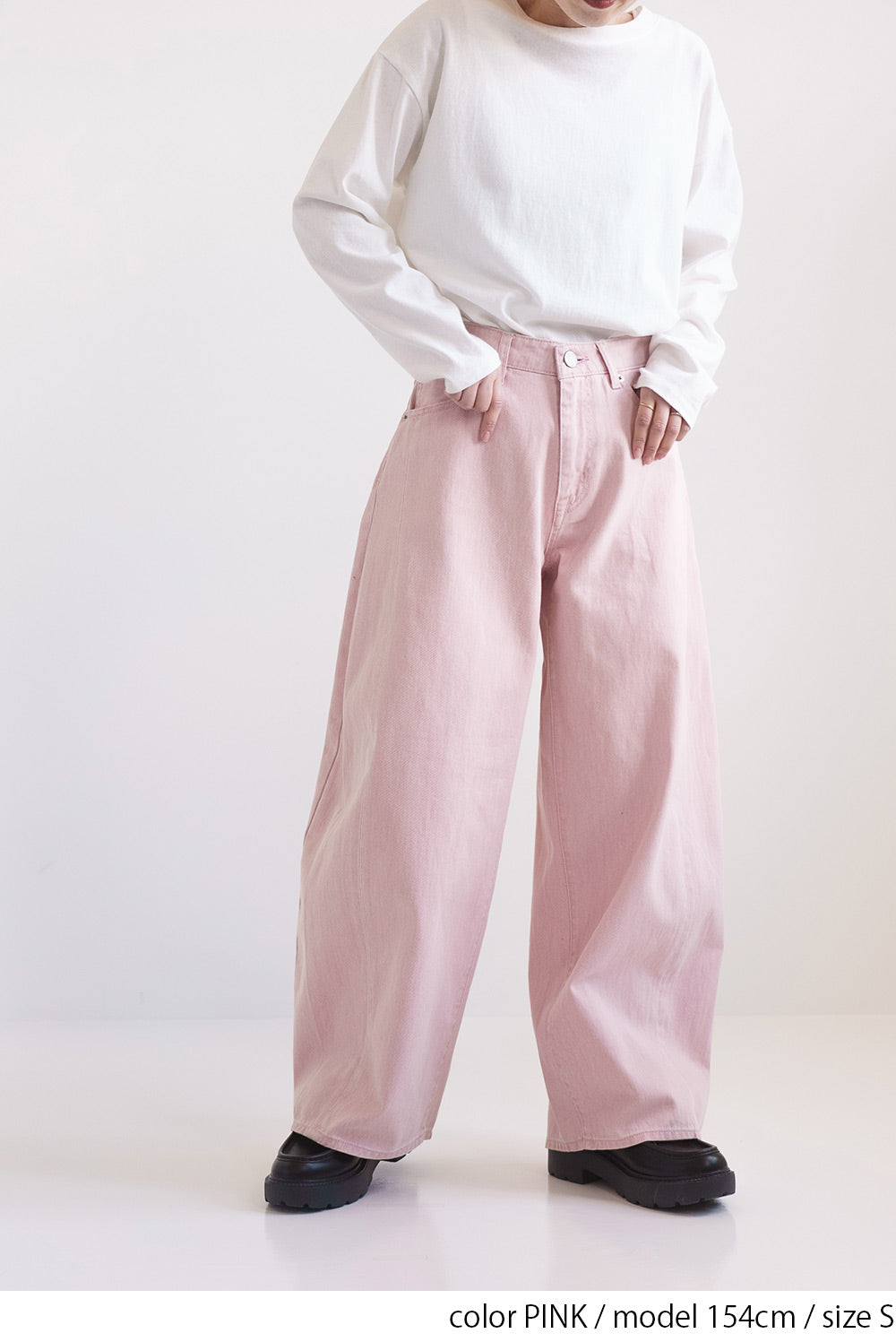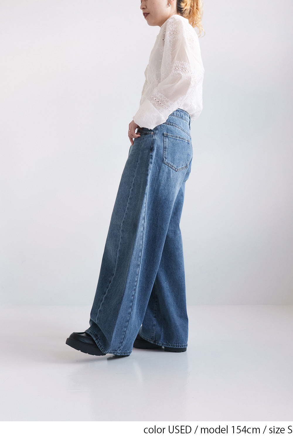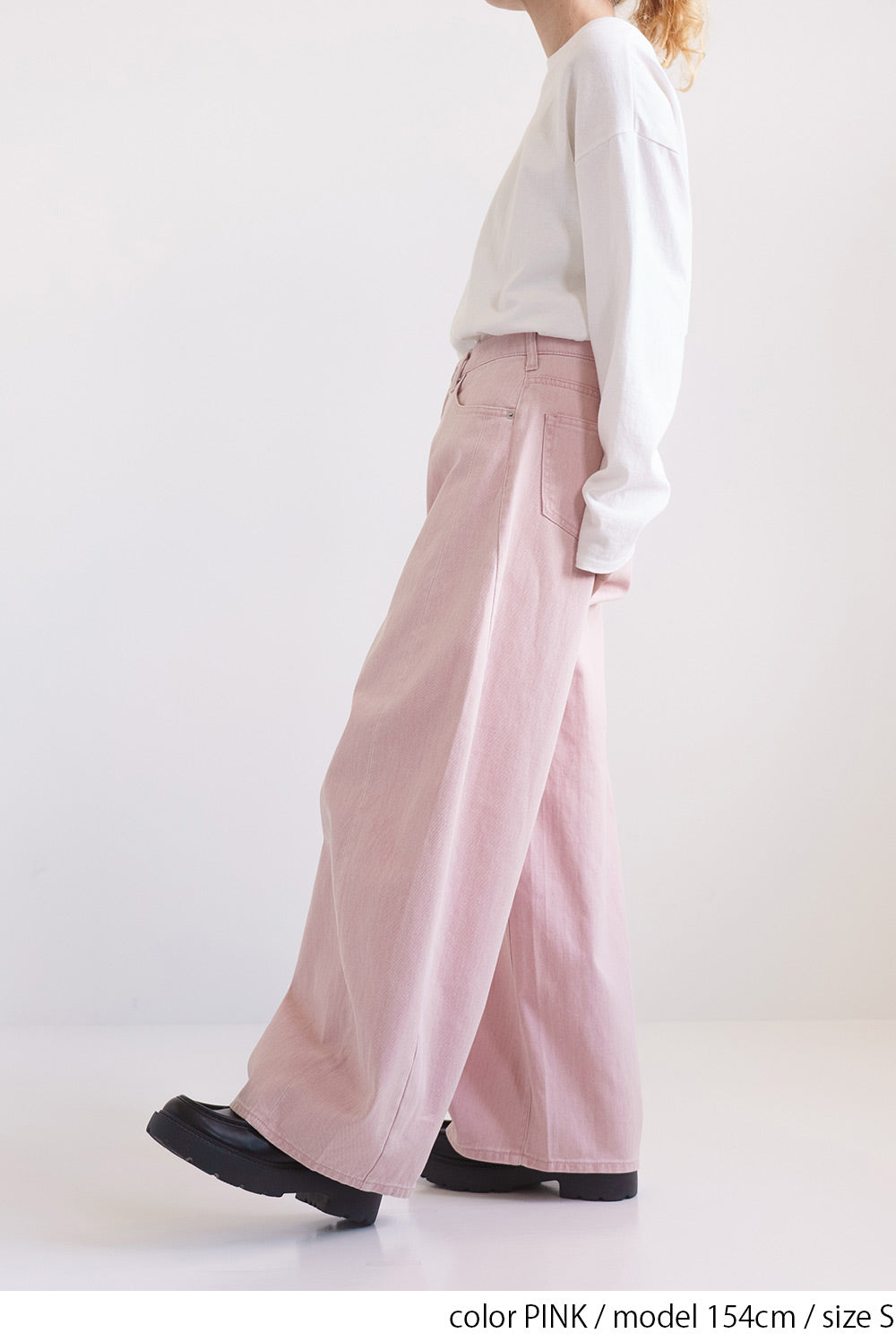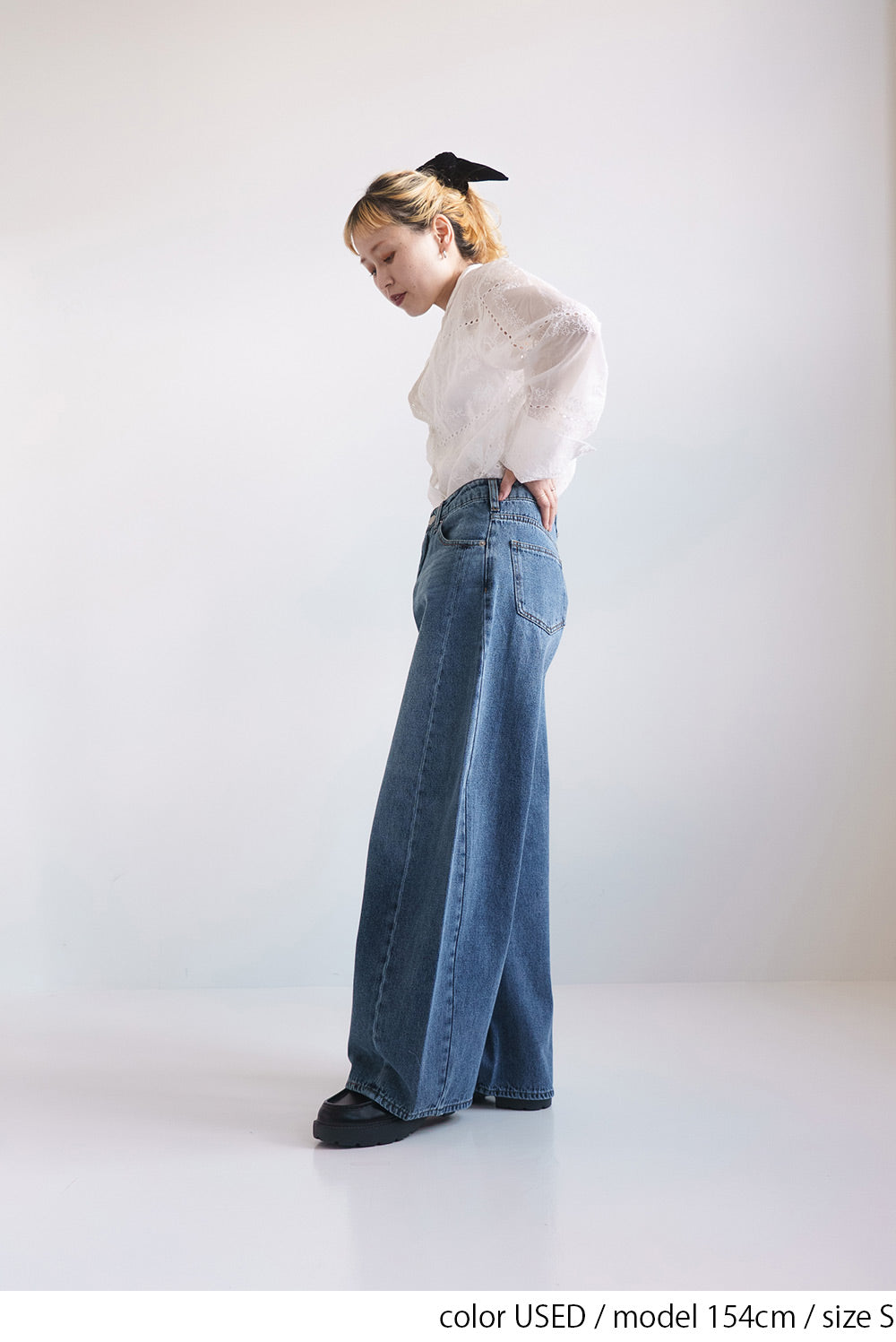 加工感を楽しめるデニム素材で、デニム好きの方にも満足していただける仕上がりで、デイリーからお出かけまで、頼れる主役ボトムスとして活躍してくれます。