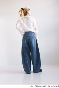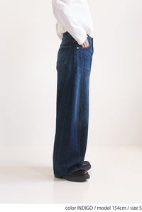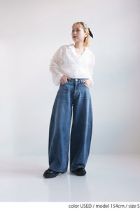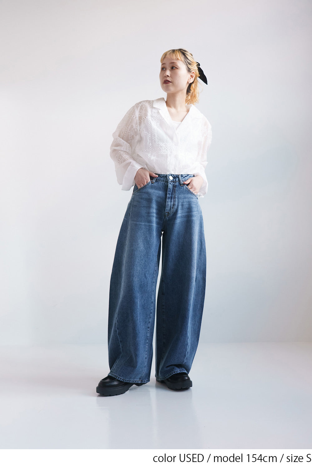 柔らかい甘織りデニムを使用してるので、裾にかけてストンと落ちるシルエットがポイントです。