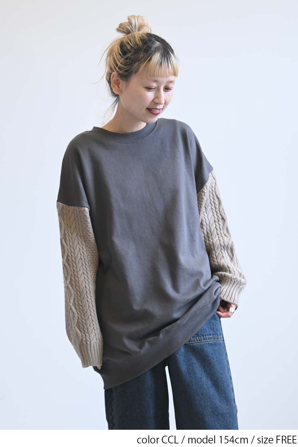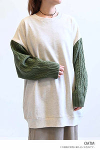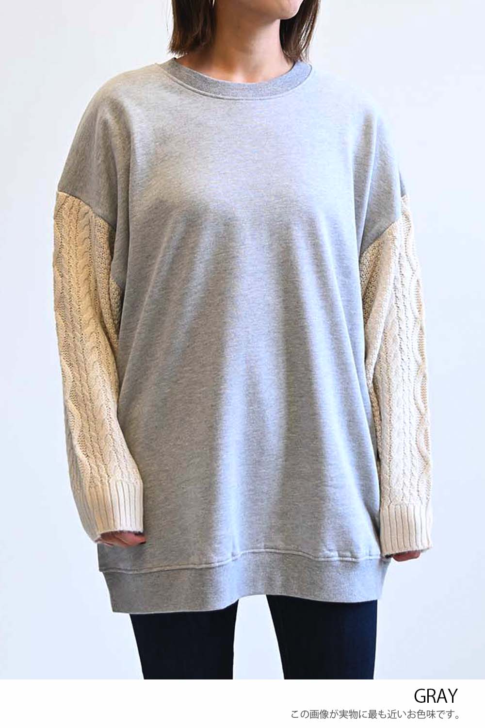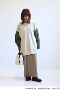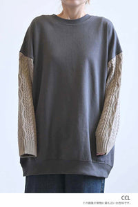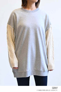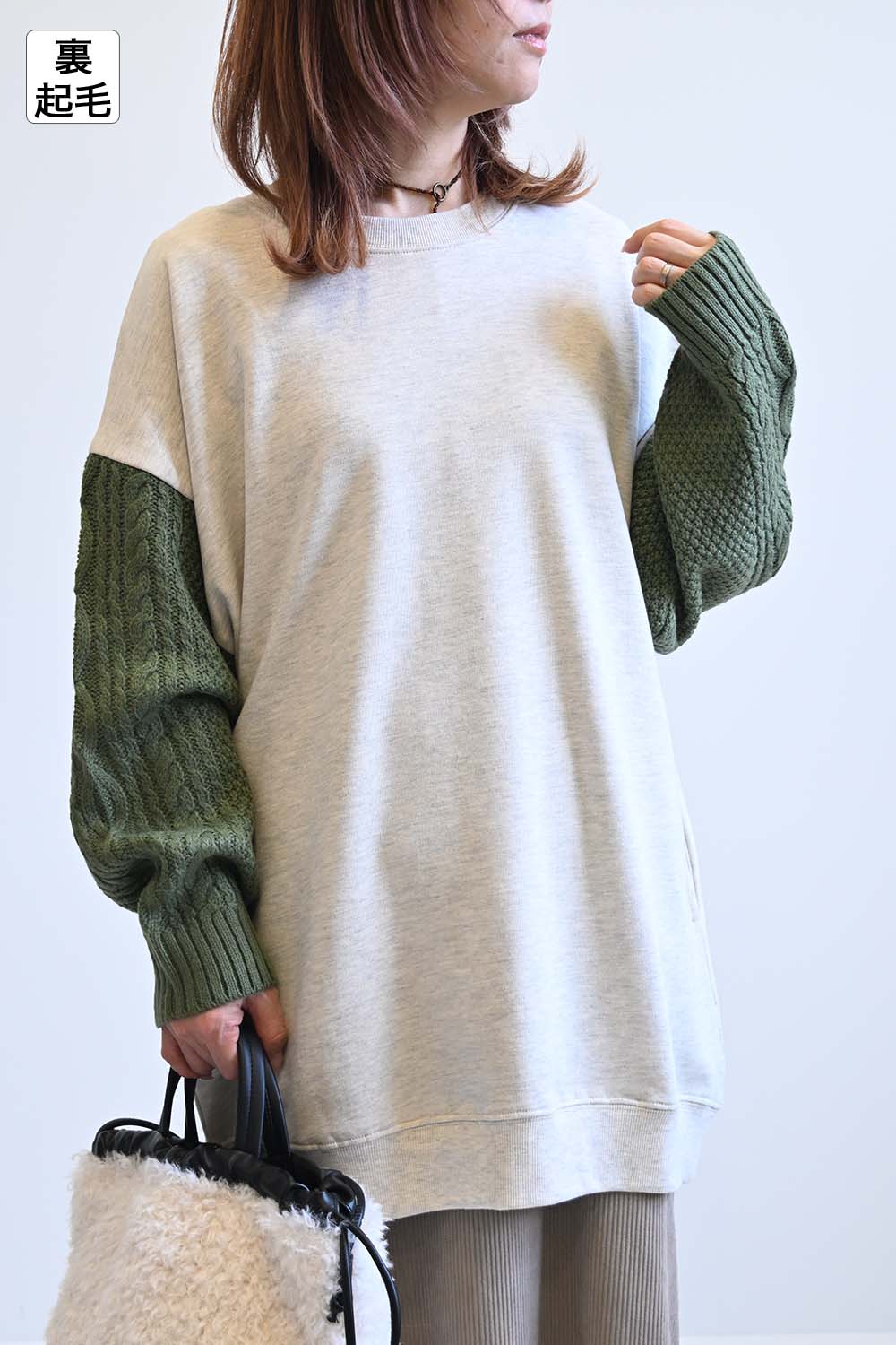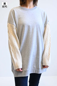 異素材ミックスが可愛い、ドッキングタイプのクルーチュニックが登場!