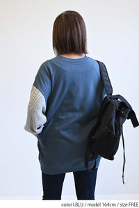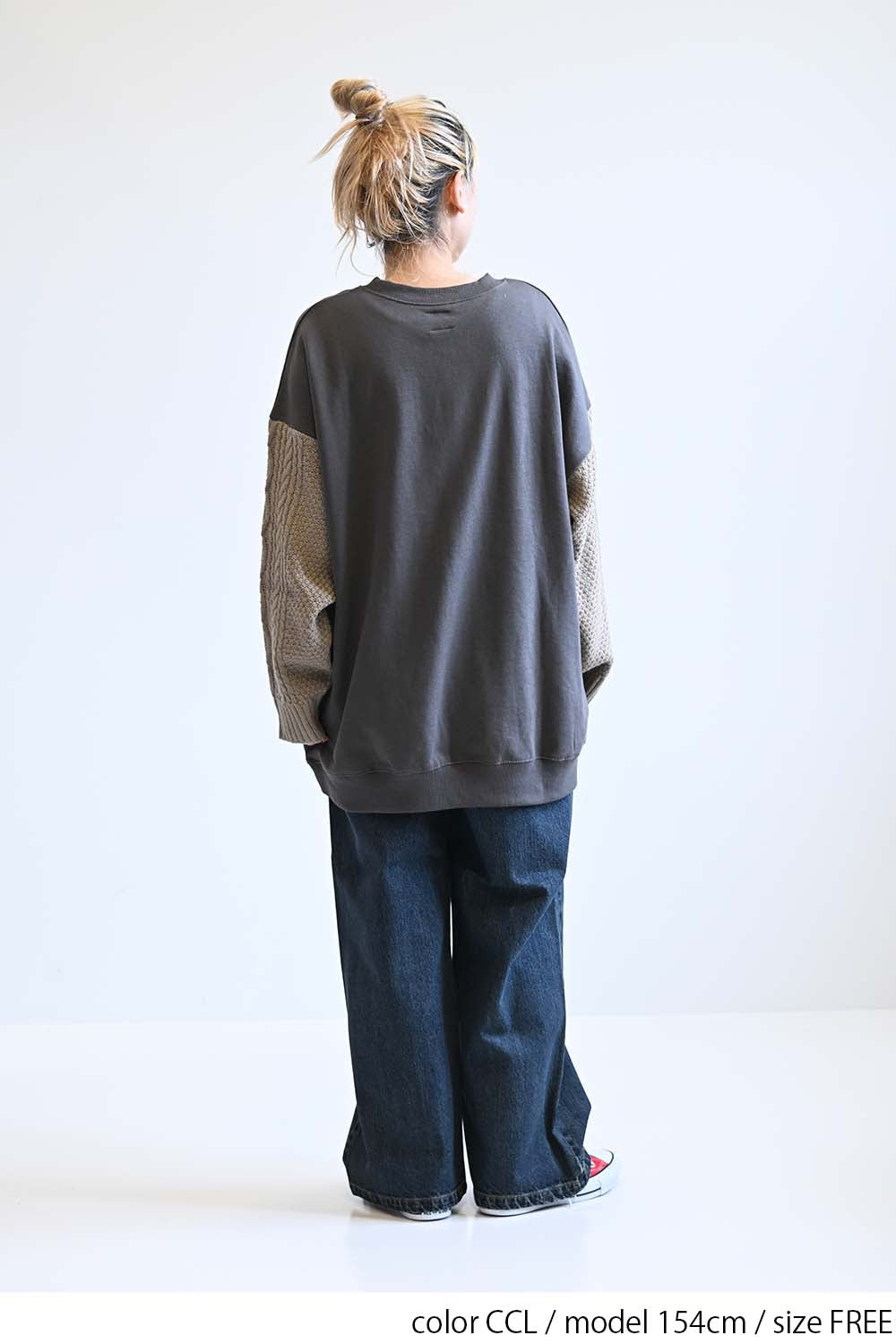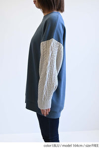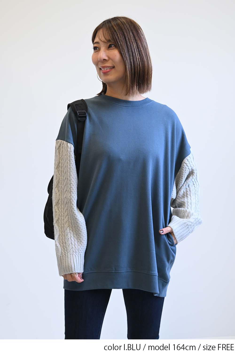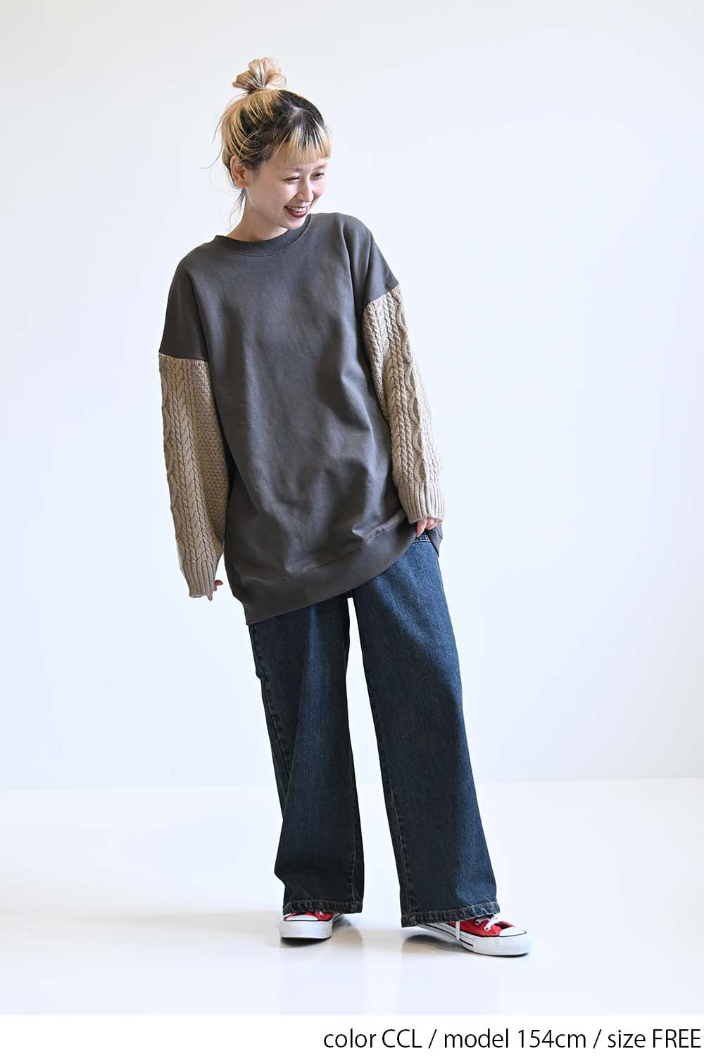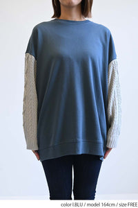 異素材ミックスが可愛い、ドッキングタイプのクルーチュニックが登場!