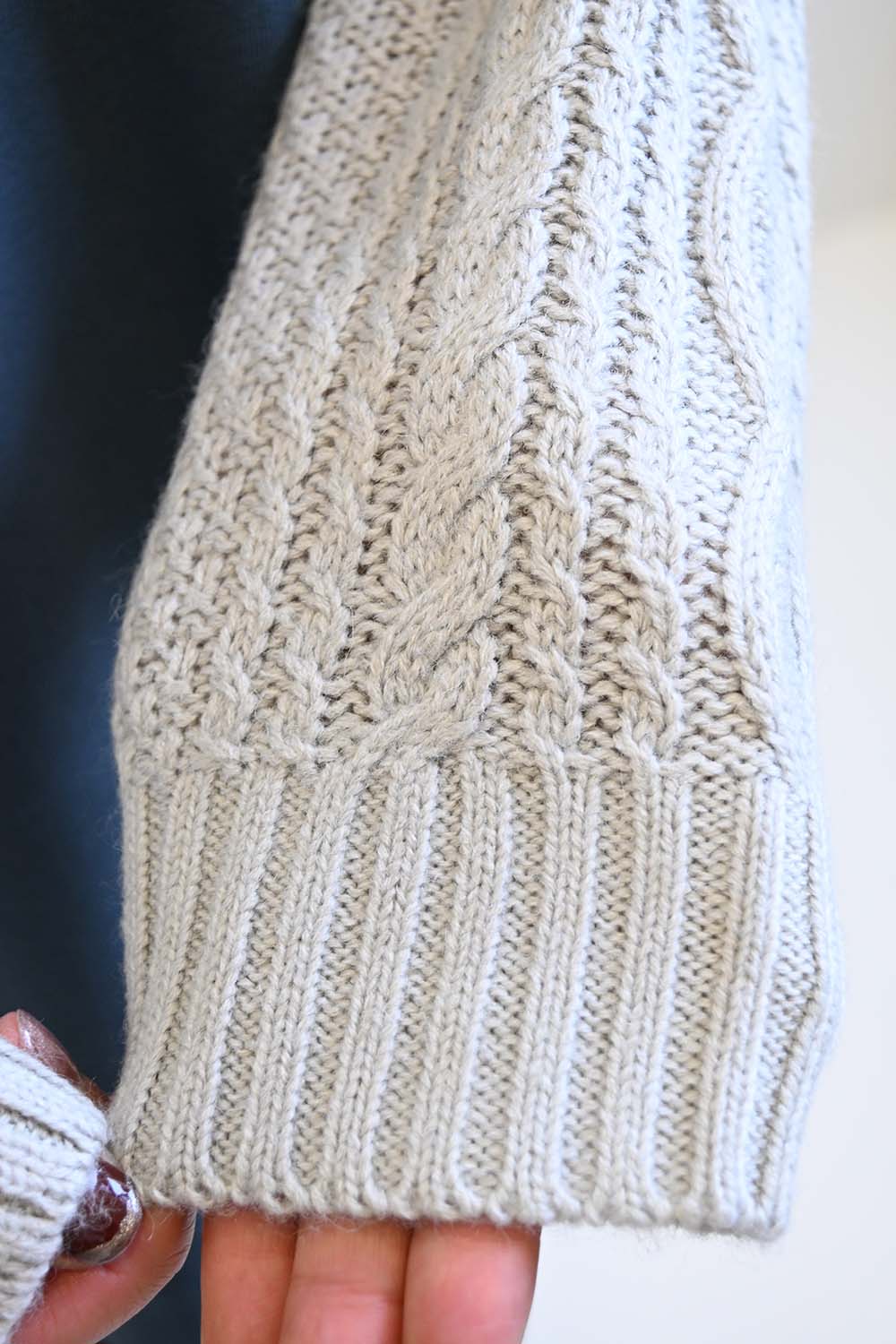 ニット部分と身頃の配色使いがコーデのアクセントに。