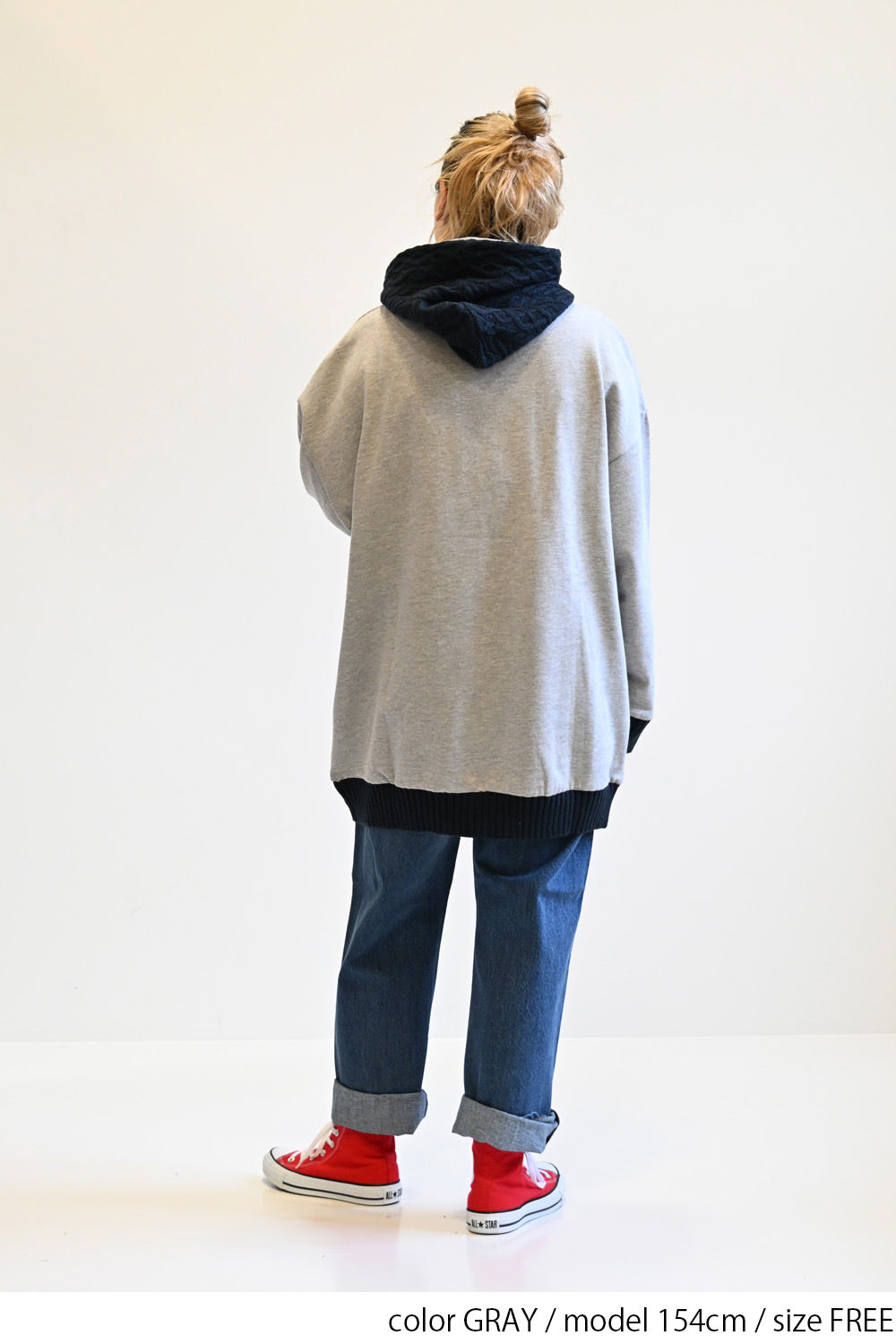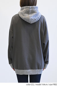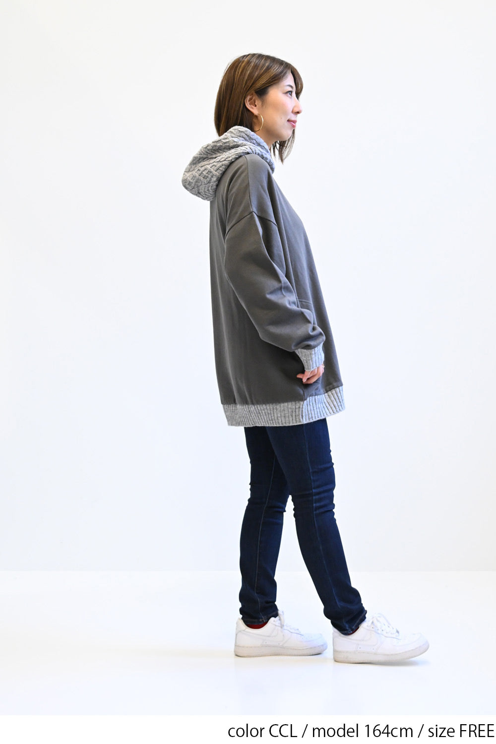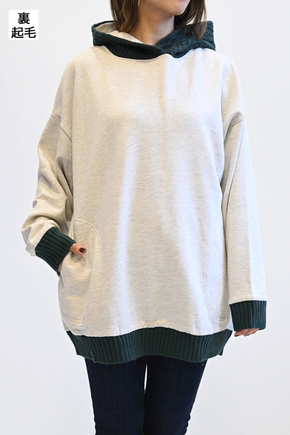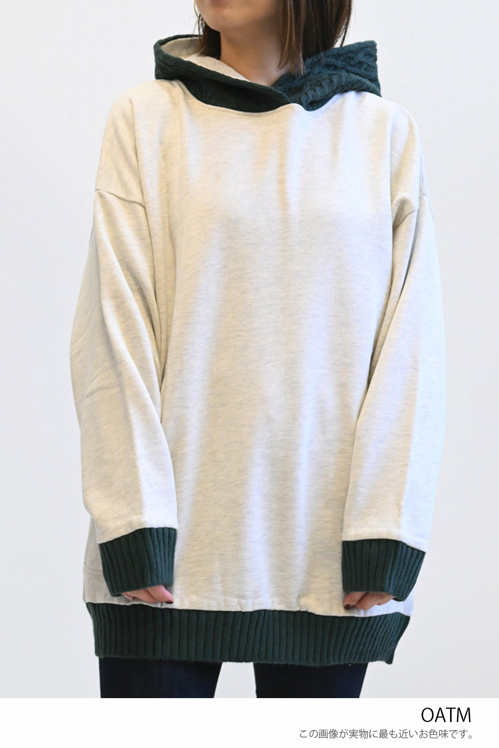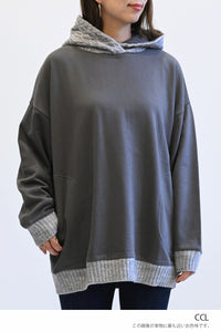 異素材ミックスが可愛い、ドッキングタイプのパーカーチュニックが登場!