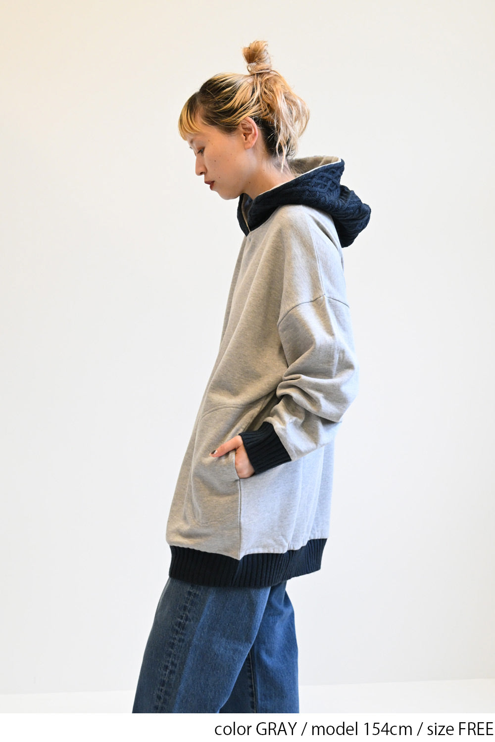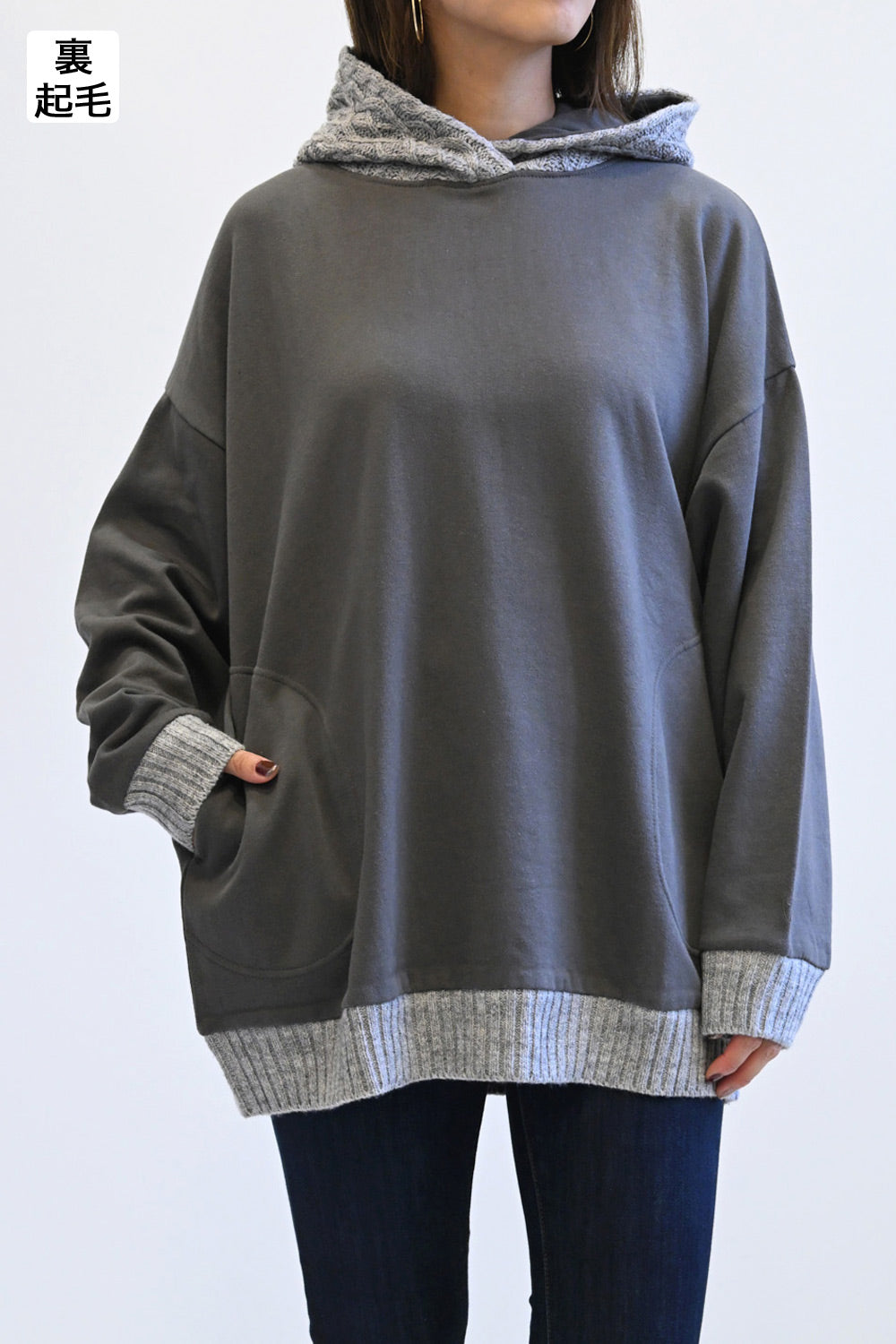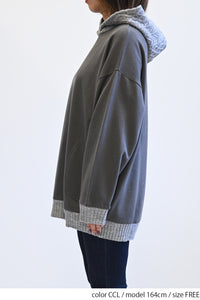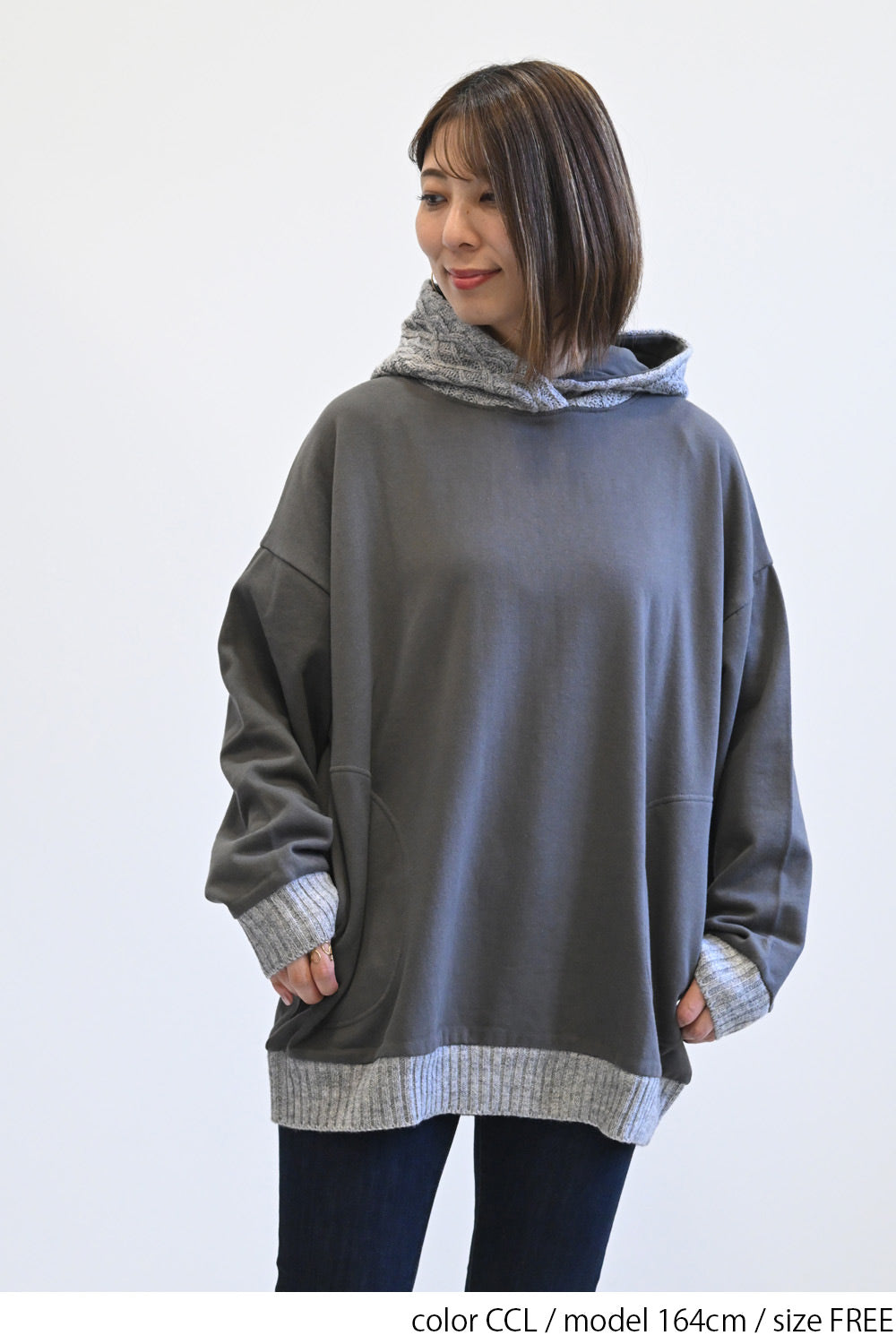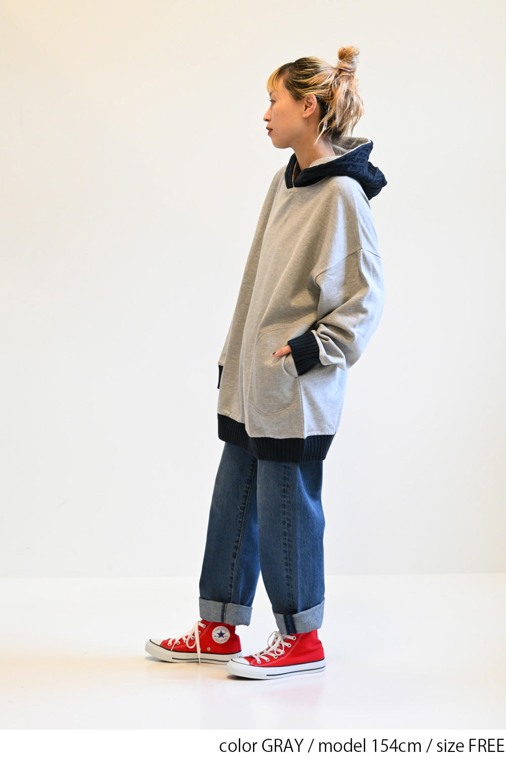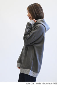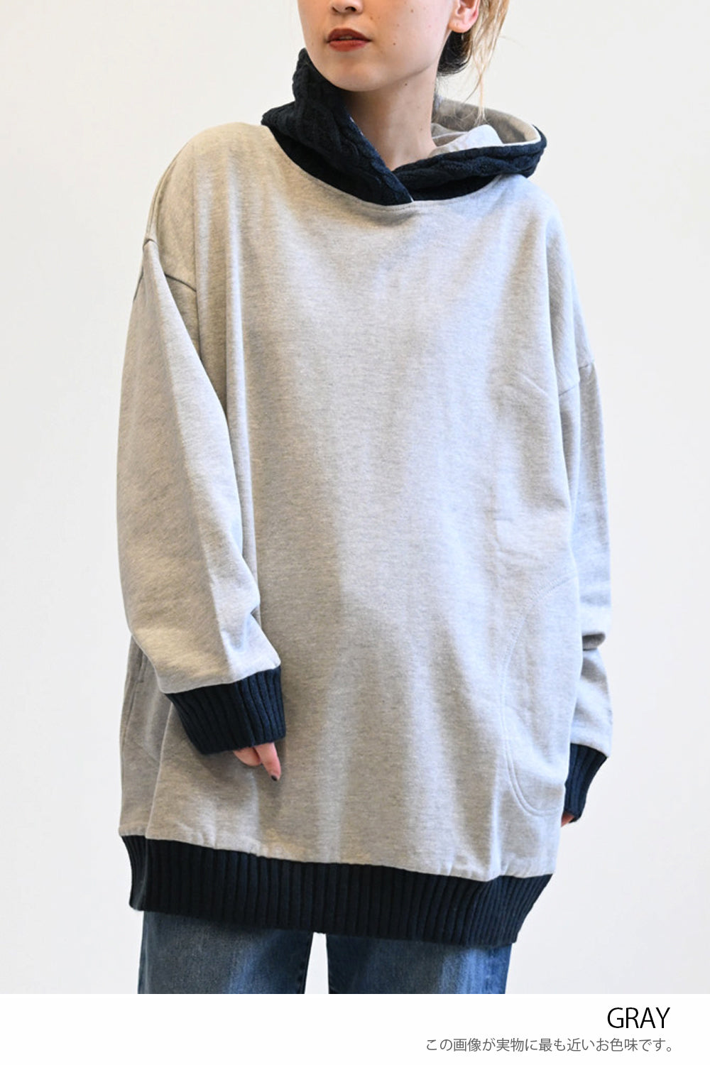 異素材ミックスが可愛い、ドッキングタイプのパーカーチュニックが登場!