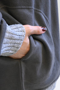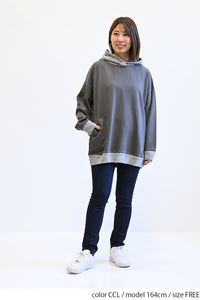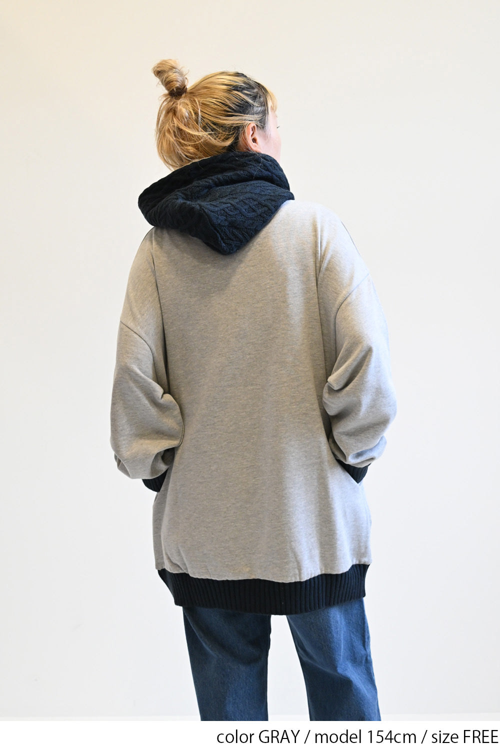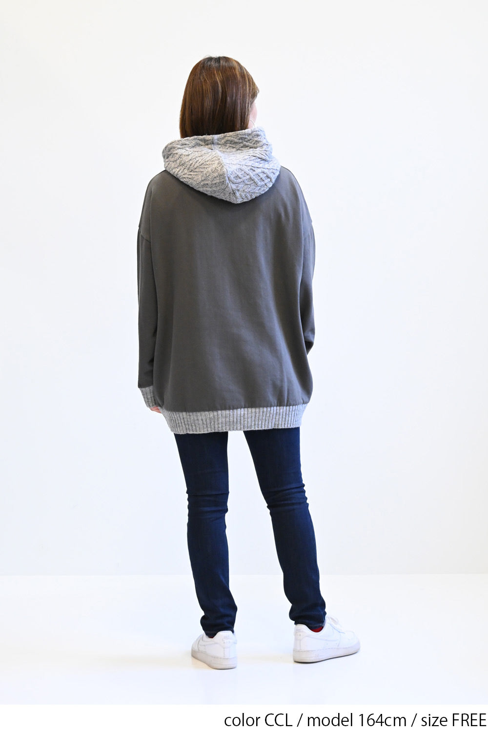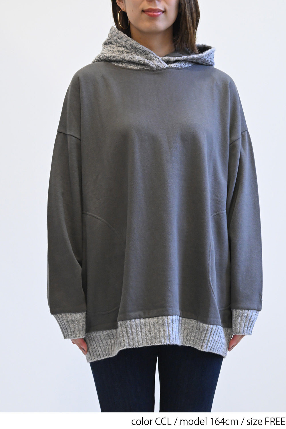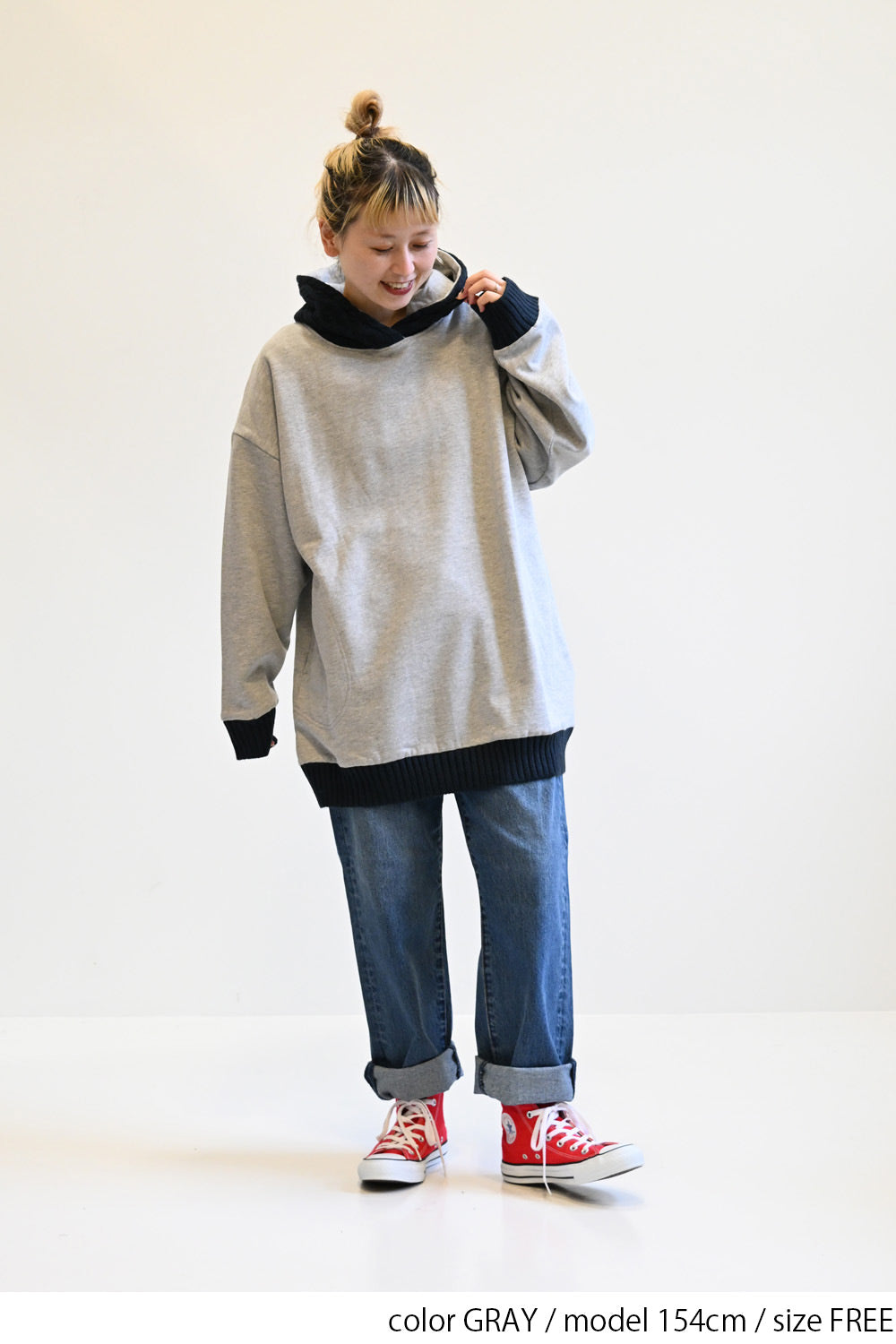 異素材ミックスが可愛い、ドッキングタイプのパーカーチュニックが登場!