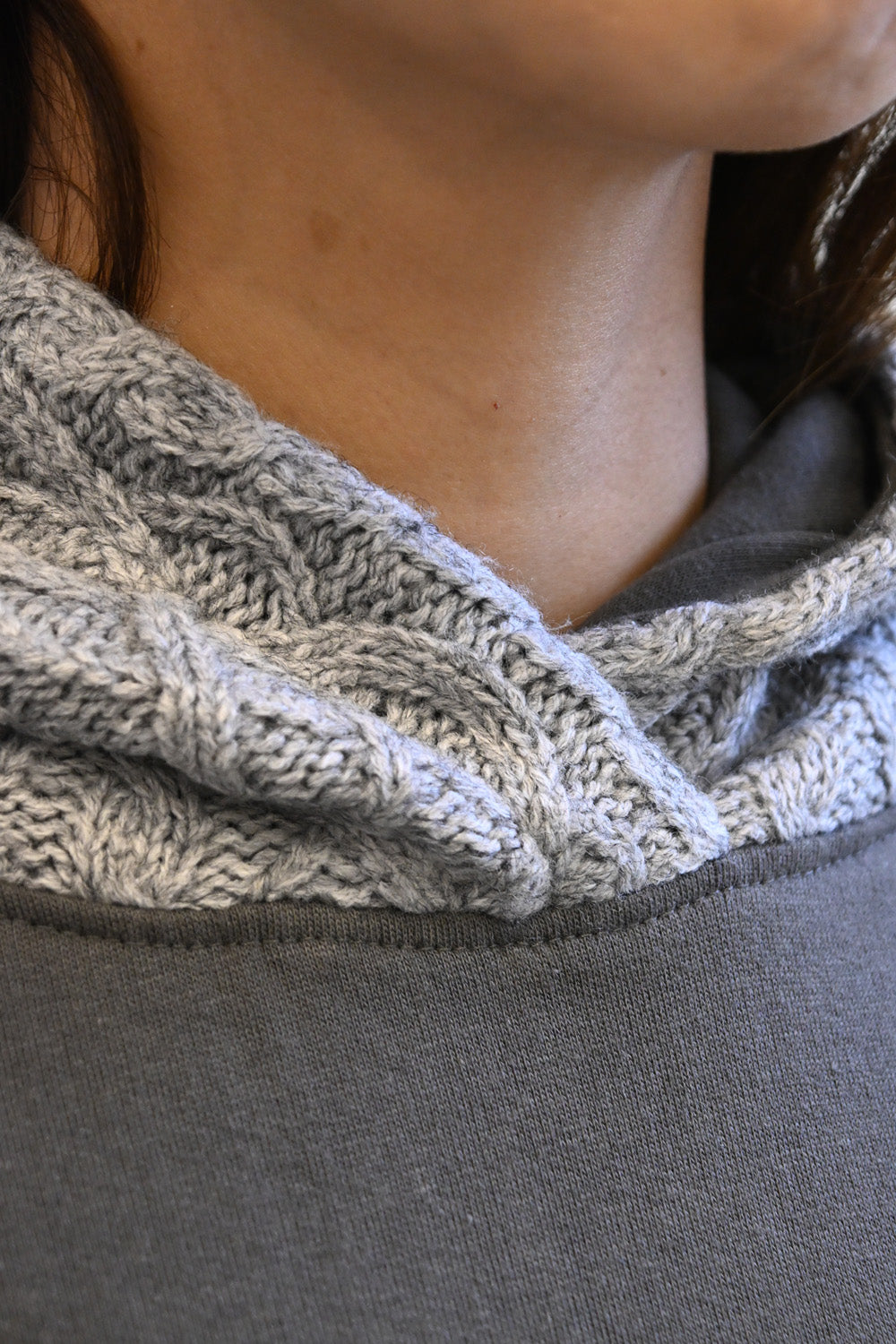 フード・袖口・裾にニット素材を使用し、季節感とデザイン性をプラスしました。