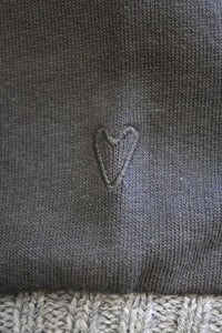 ニット部分は身頃と配色になっており、シンプルながらもコーデに映えるアクセントに。