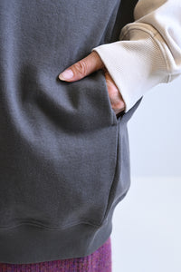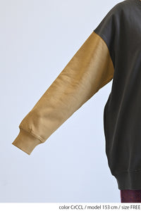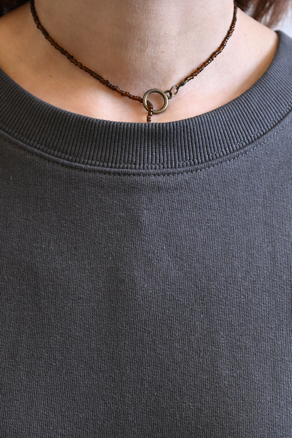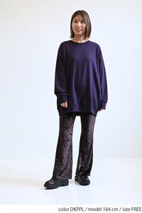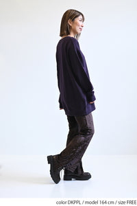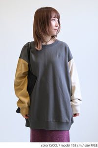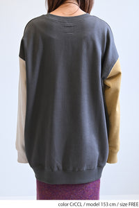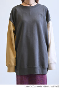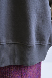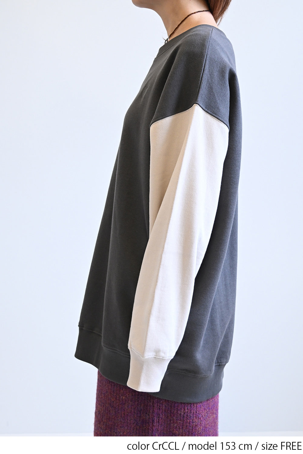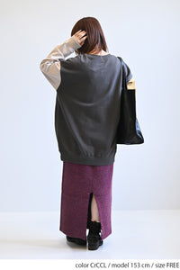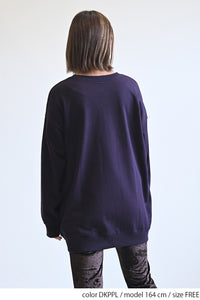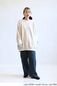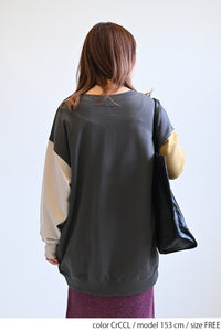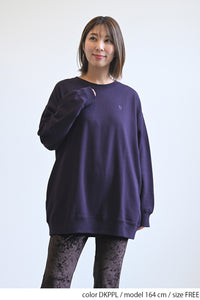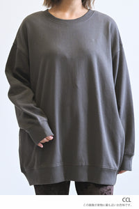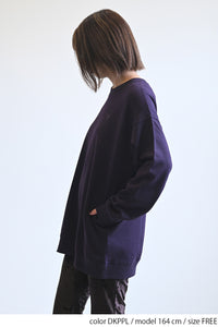 ドロップショルダーのリラックスシルエットで、体のラインを拾わずゆったりと着られます。