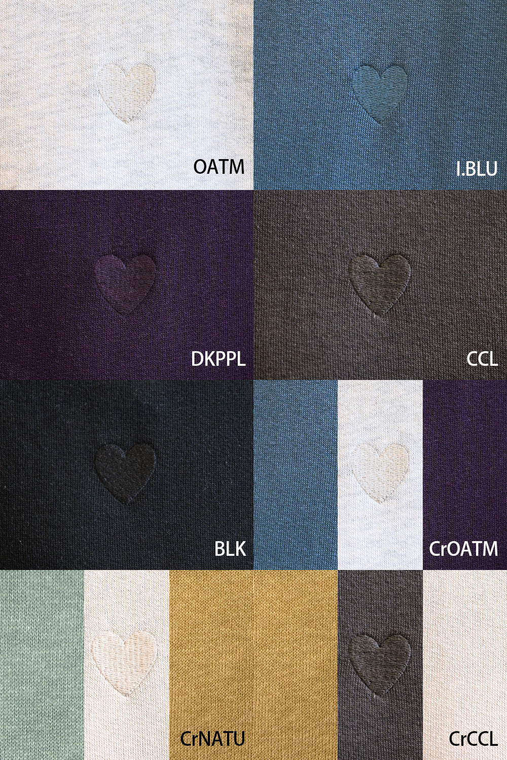 胸元にあしらった小さなハート刺繍が、さりげない可愛らしさをプラス。