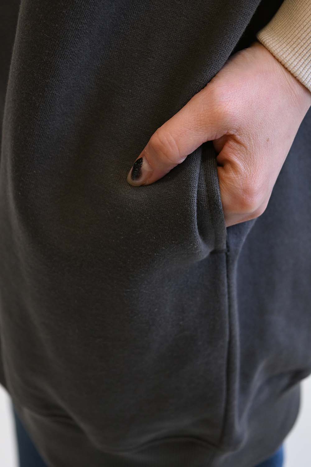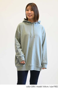 着丈長めが嬉しいぬくぬくパーカーチュニックです。