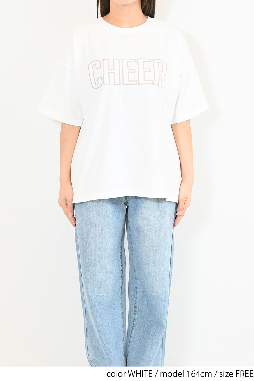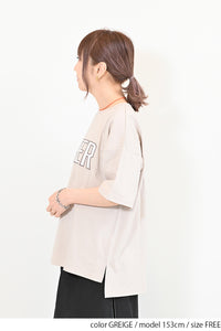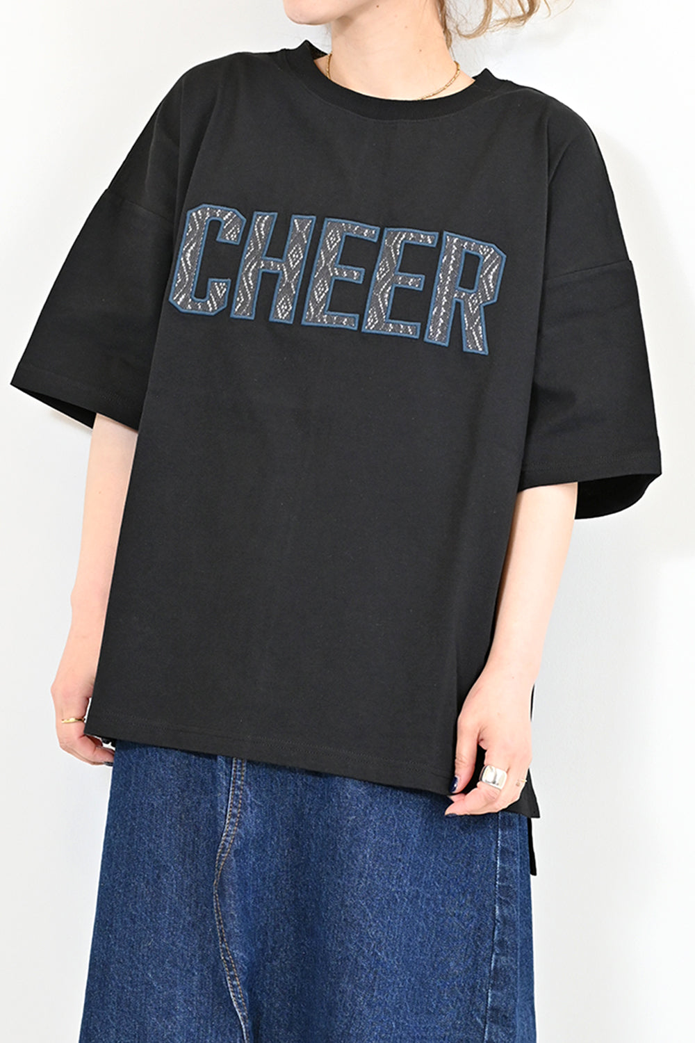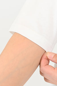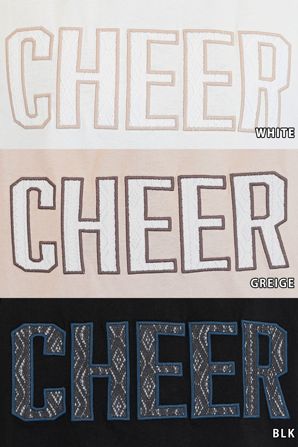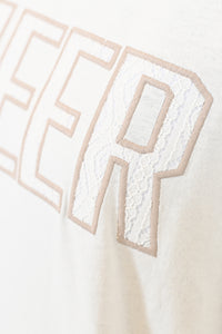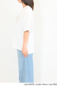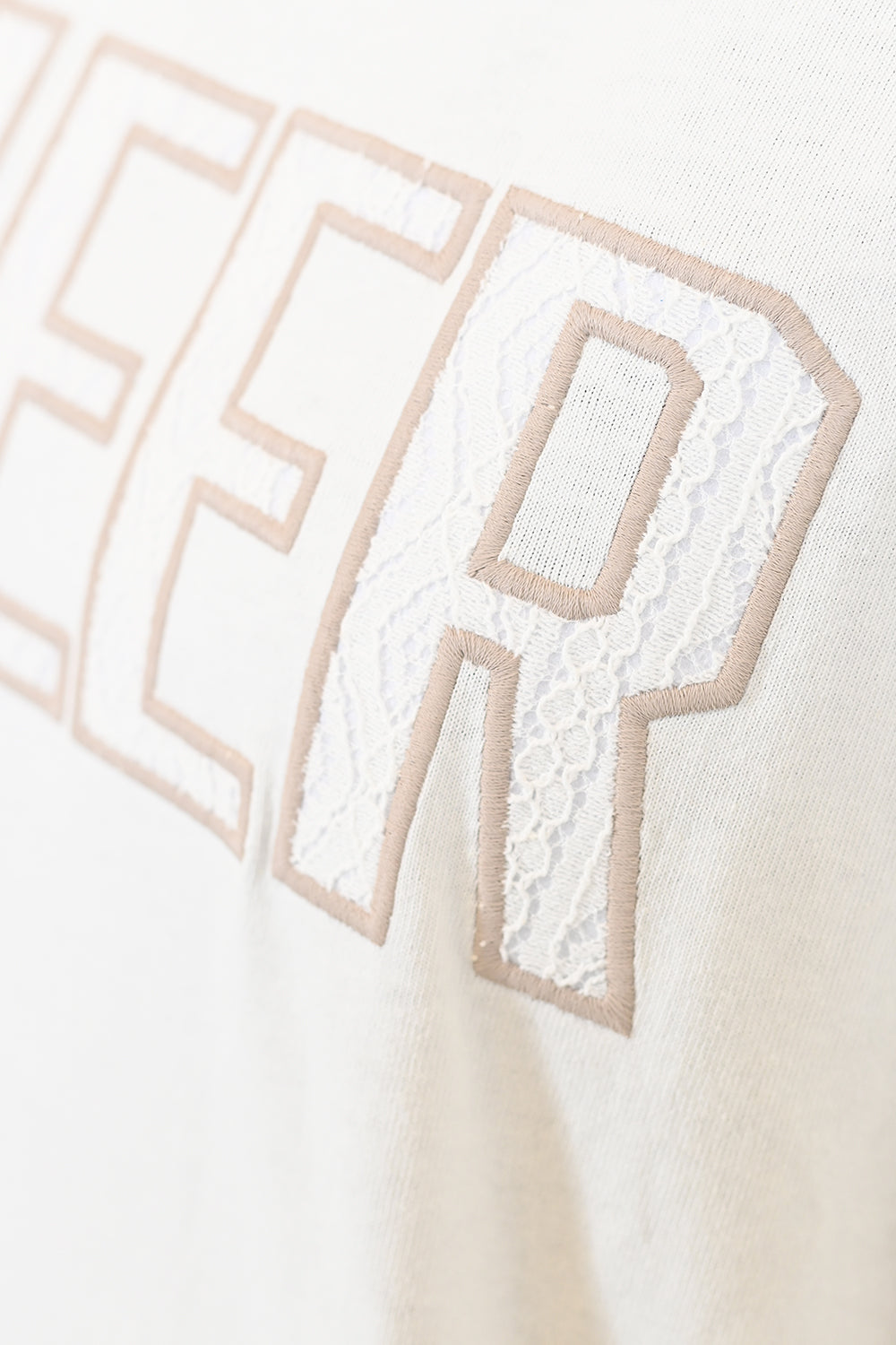 ロゴ部分に繊細なレースをあしらったロゴTシャツ。