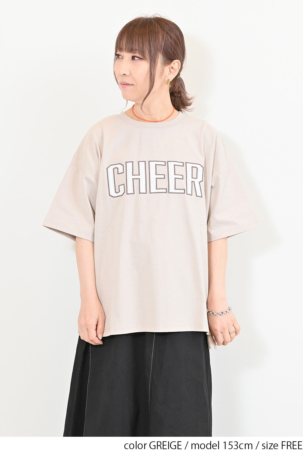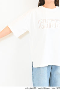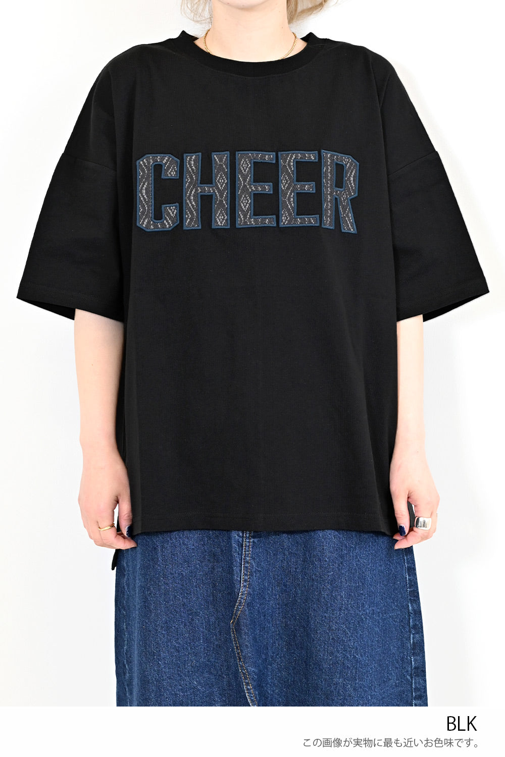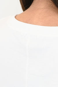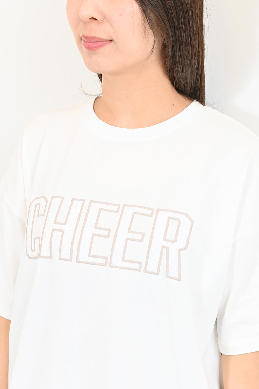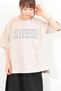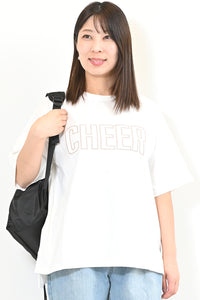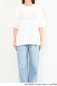 ロゴ部分に繊細なレースをあしらったロゴTシャツ。