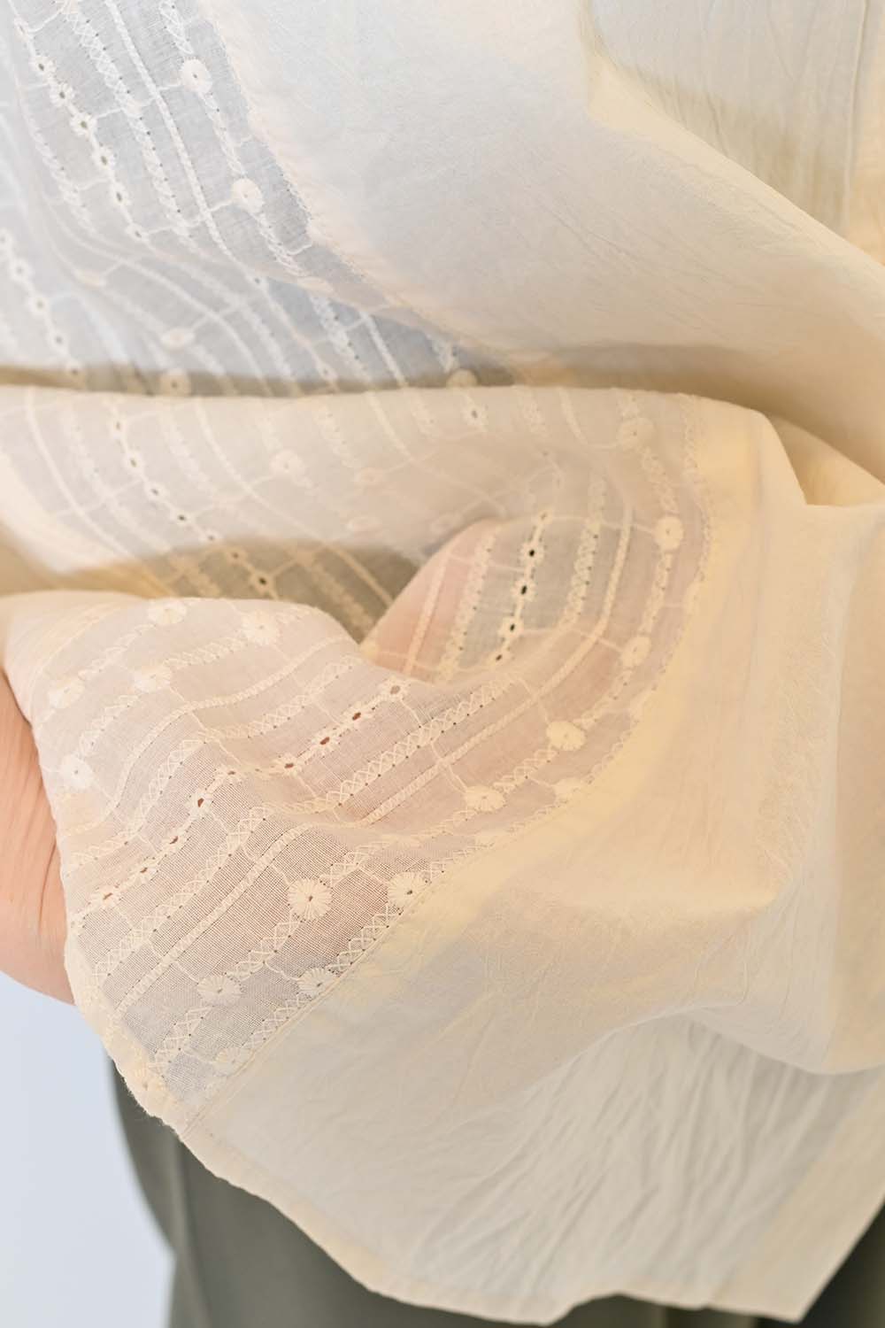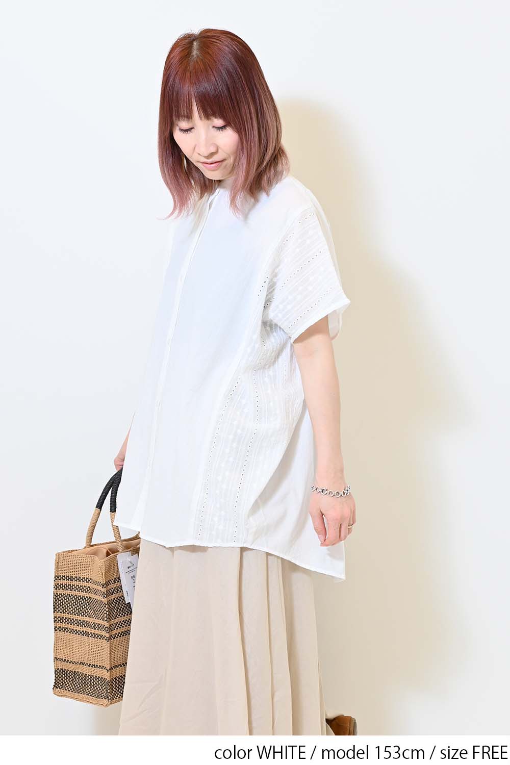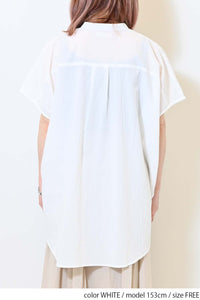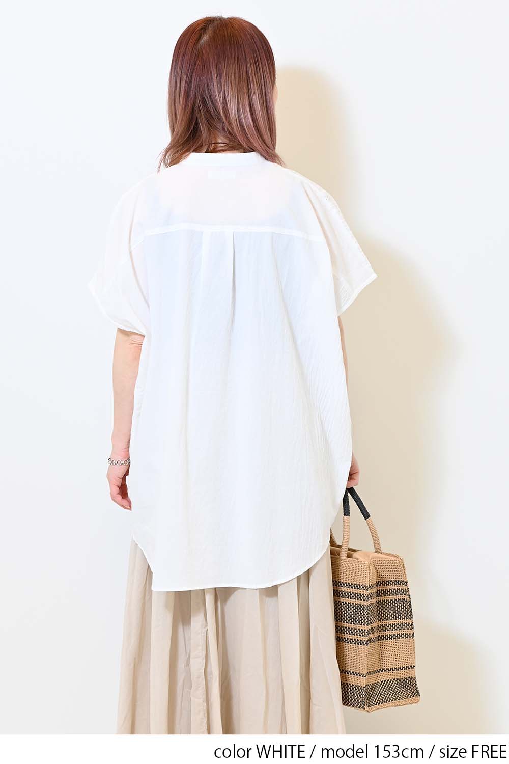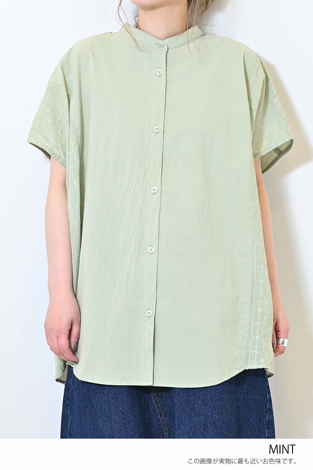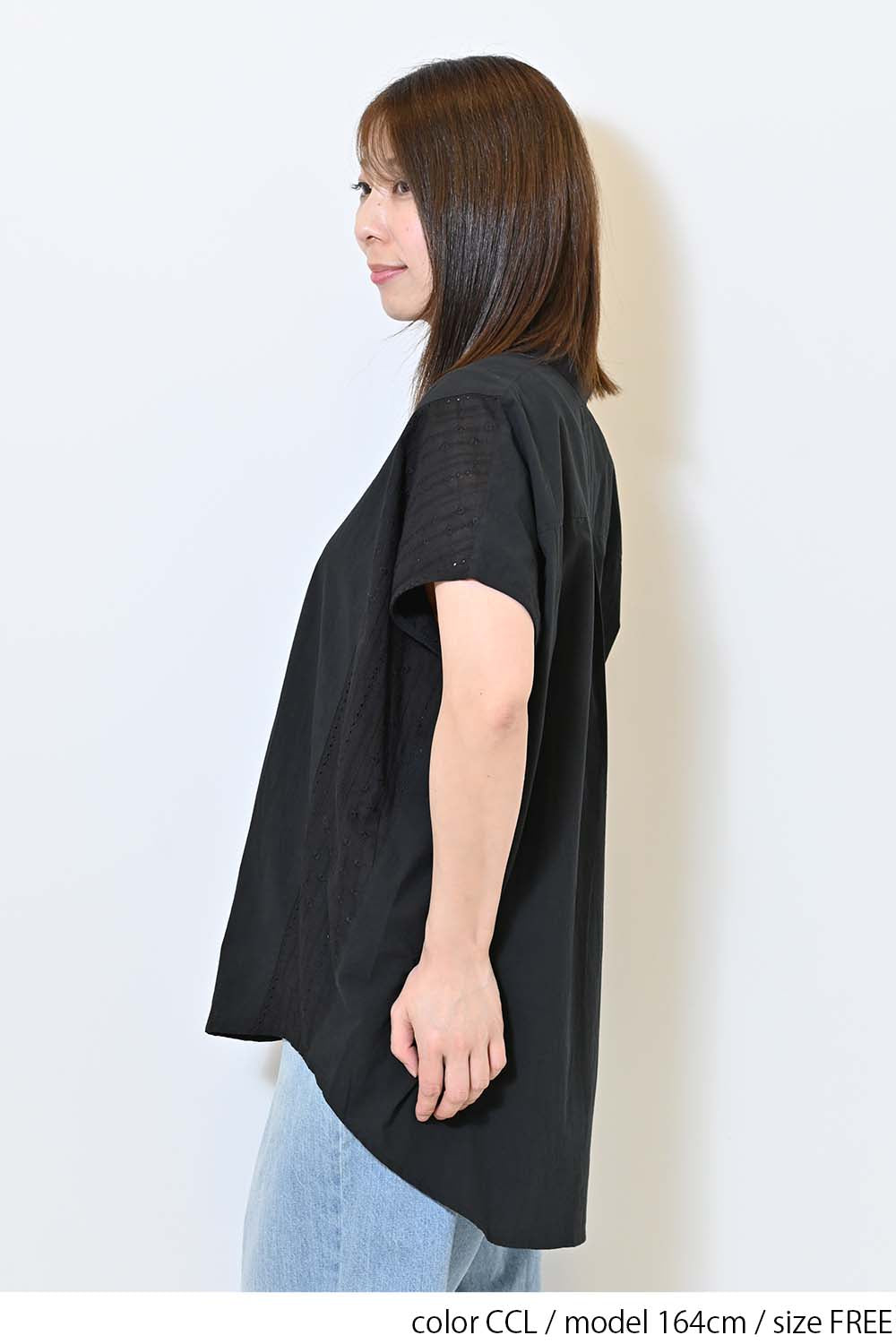 洗いざらしのような風合いが魅力のウォッシャブルコットンに、繊細な綿レースをサイドに切り替えた、涼しげな印象のドルマンワイドシャツチュニックです。