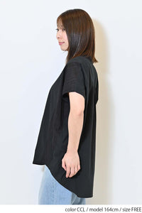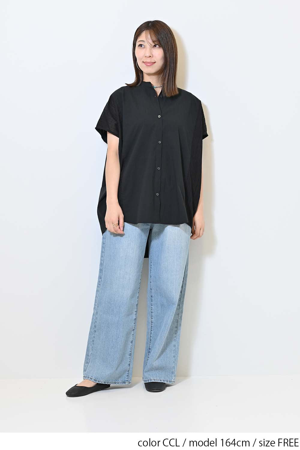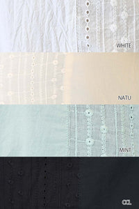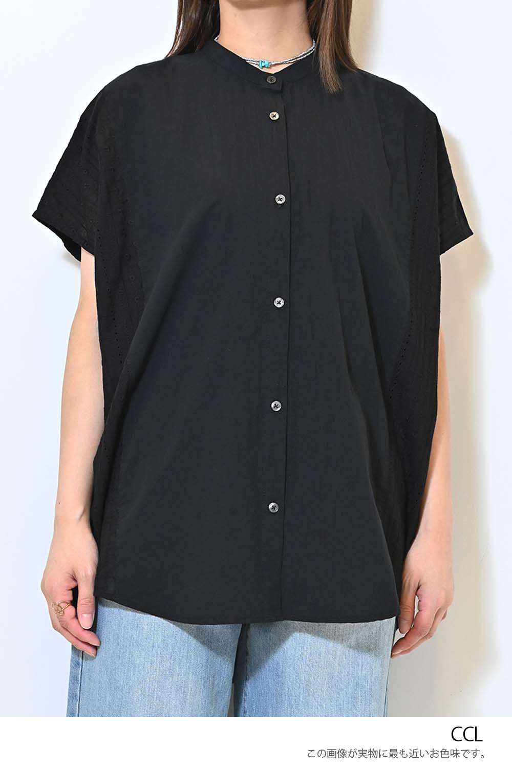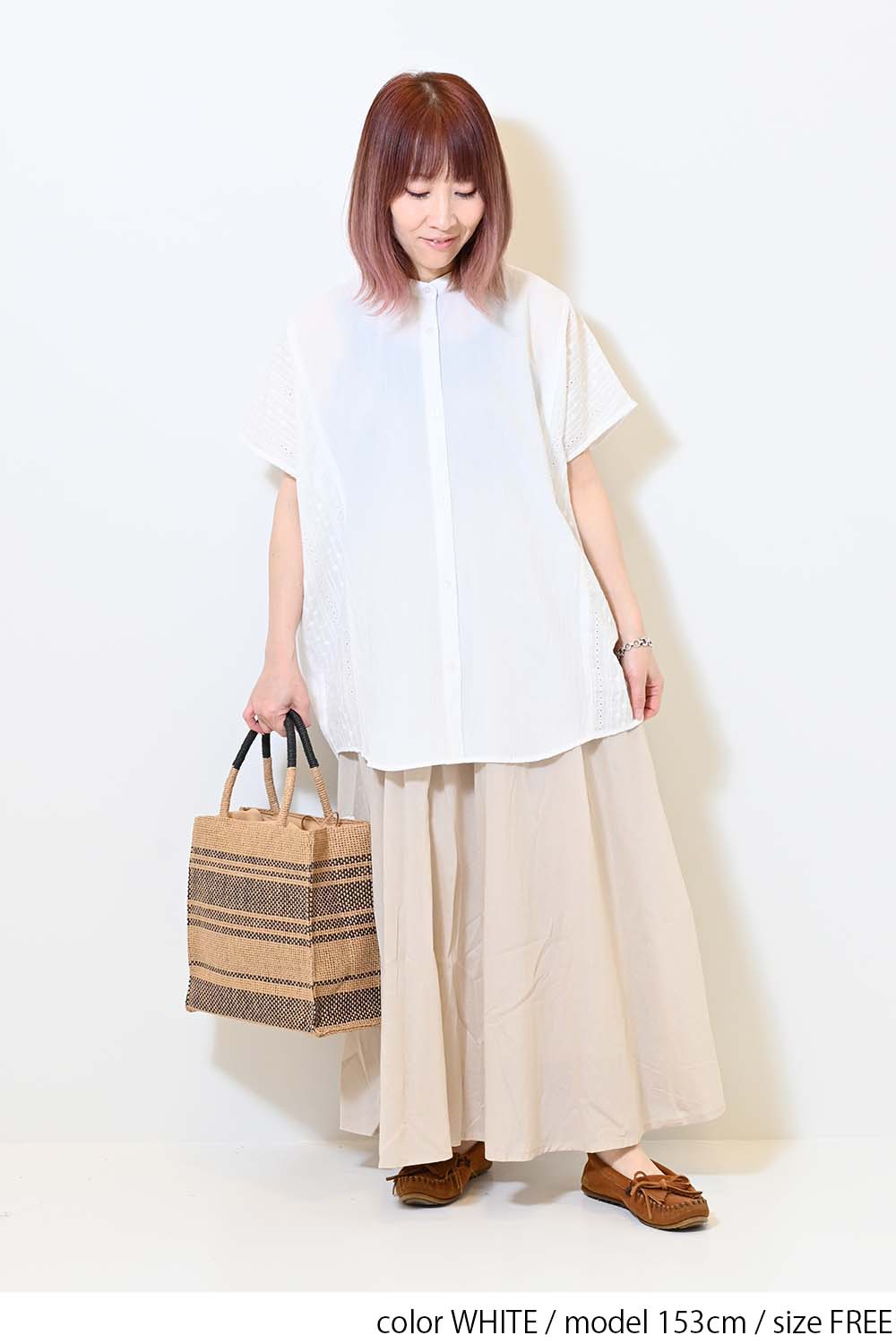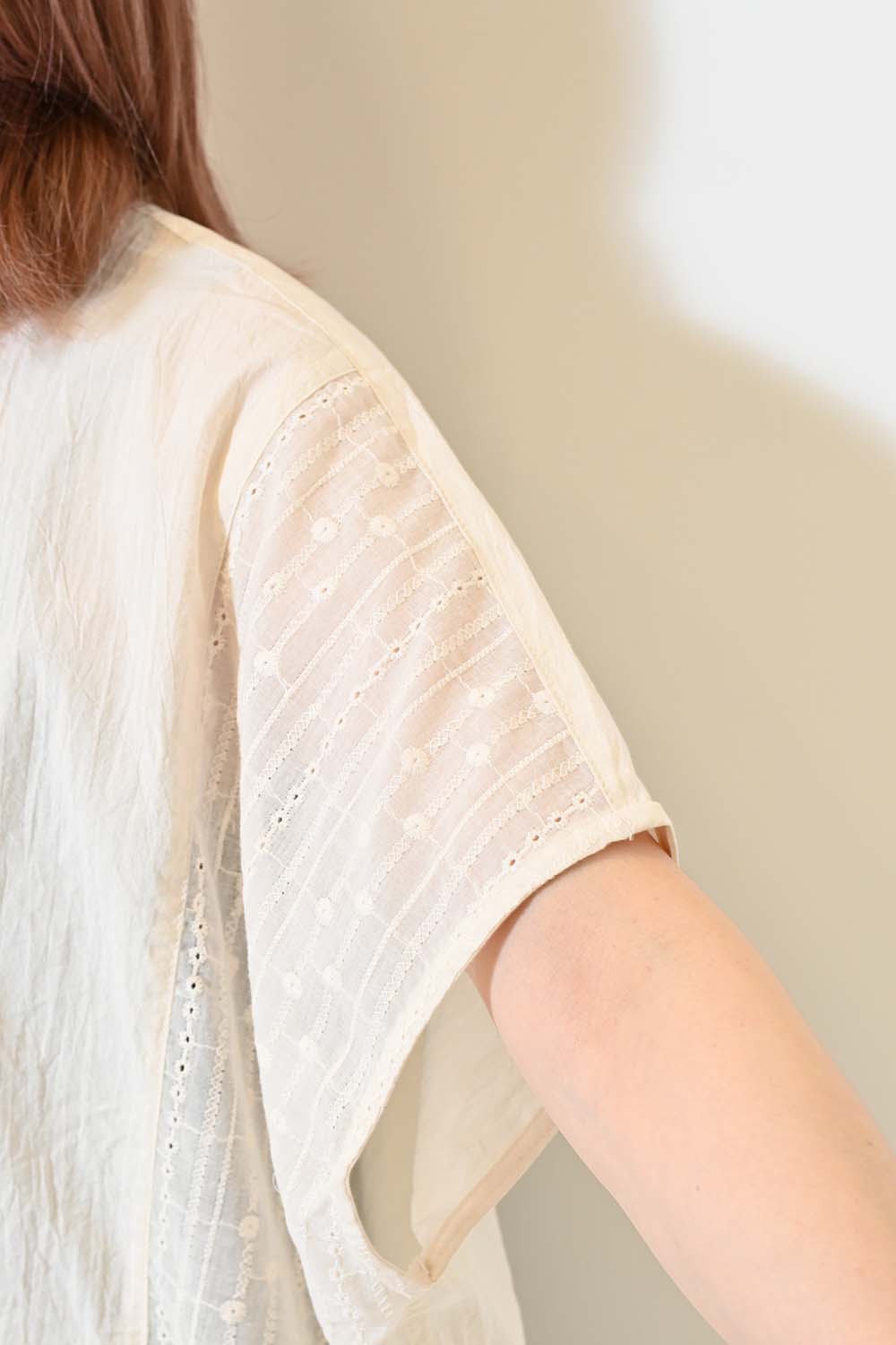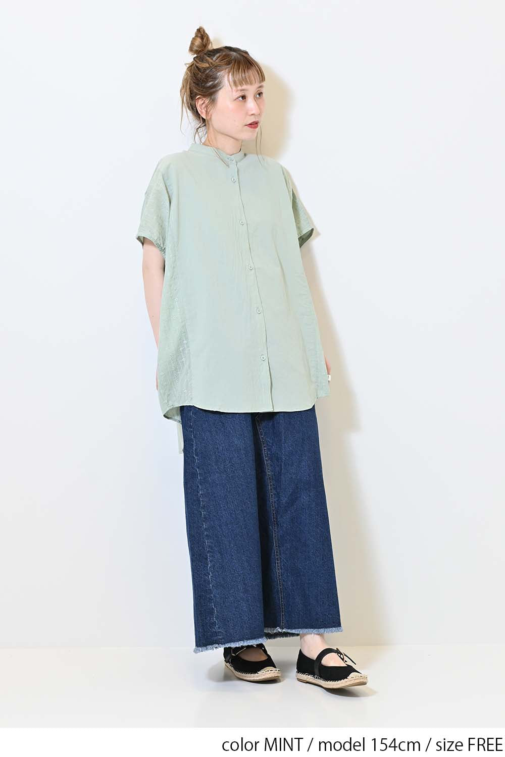 洗いざらしのような風合いが魅力のウォッシャブルコットンに、繊細な綿レースをサイドに切り替えた、涼しげな印象のドルマンワイドシャツチュニックです。