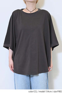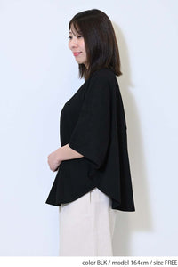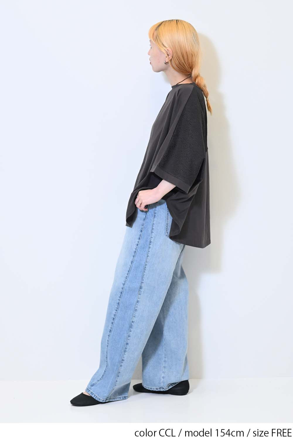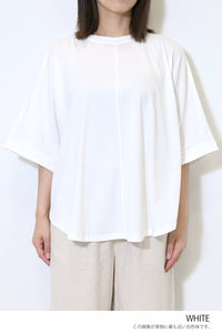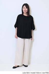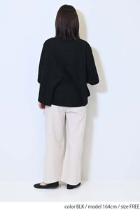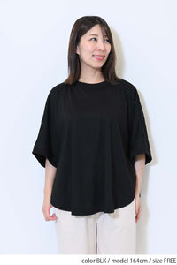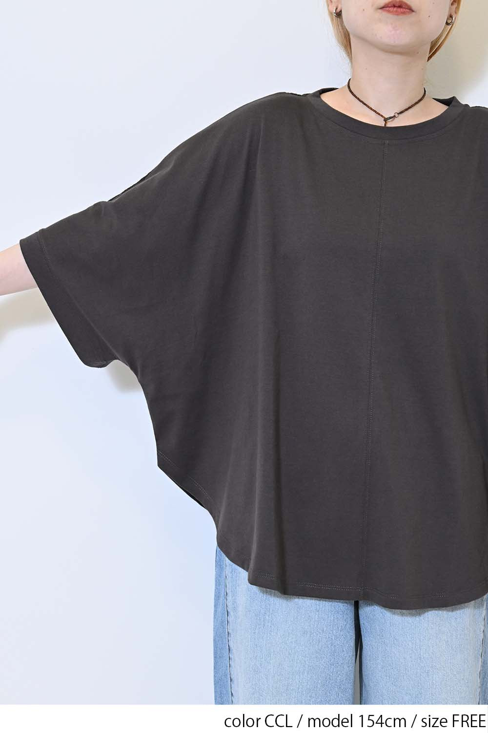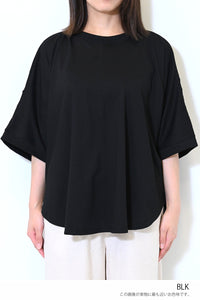 ラウンド裾がボトムとのバランスを取りやすく、タックインせずに着てもサマになります。