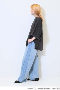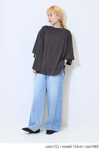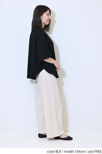 ゆったりとしたシルエットを活かして、テーパードパンツやデニムと合わせればリラックス感のある大人カジュアルに。