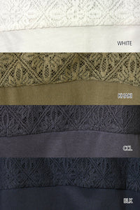 レースの切替が、シンプルなコーデに程よい甘さをプラスしてくれます。