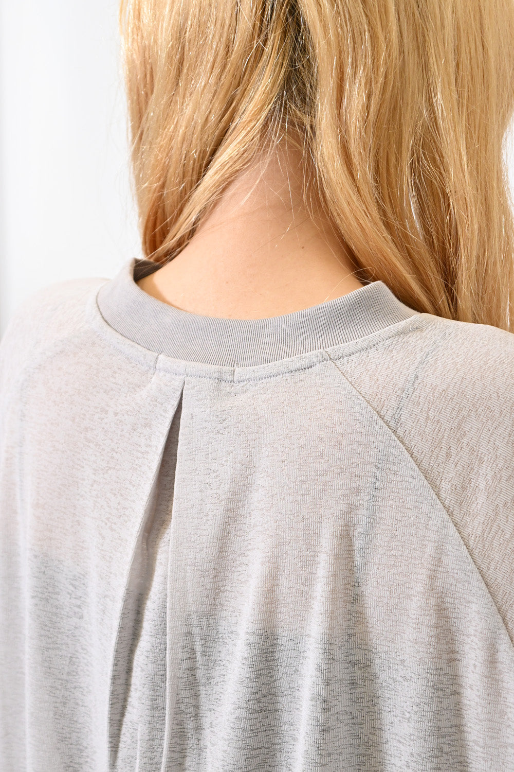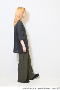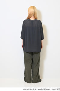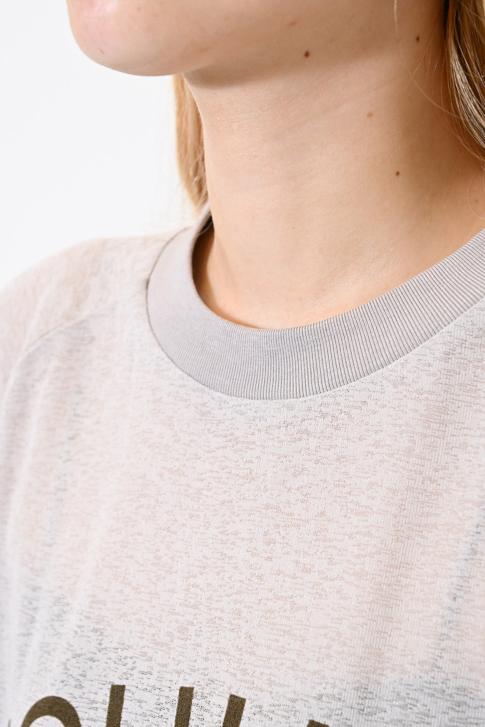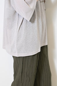 シアーな透け感と梨地の上質な風合いが、大人のこなれ感を演出してくれるロゴプルオーバーです。