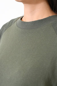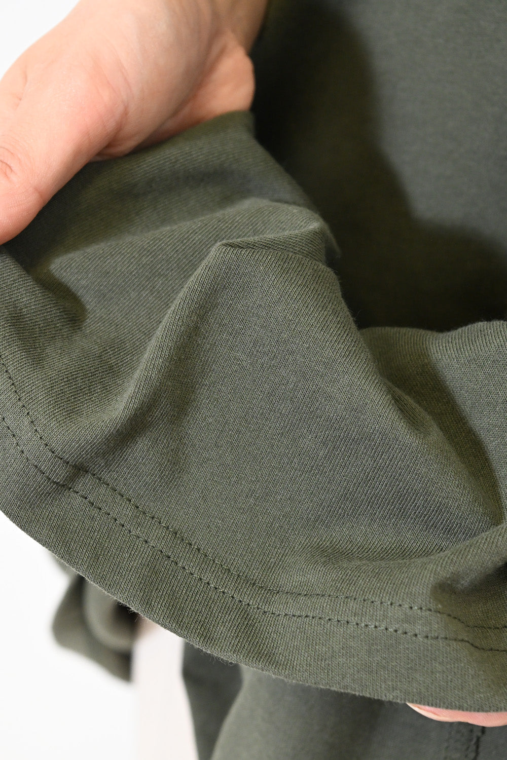 シンプルながら袖の切り替えがアクセントになり、一枚で着ても手抜き感のないおしゃれが叶います。