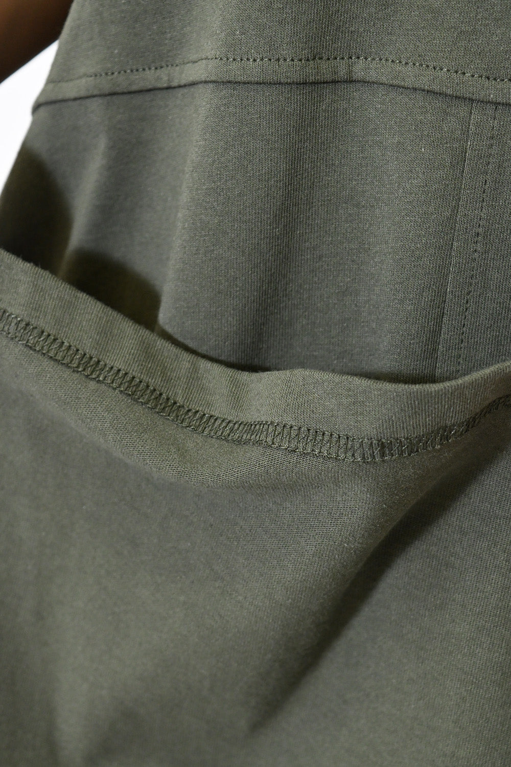 ウエストにはさりげない切り替えステッチを施し、ゆったりとしたシルエットでもメリハリのある印象に。