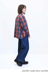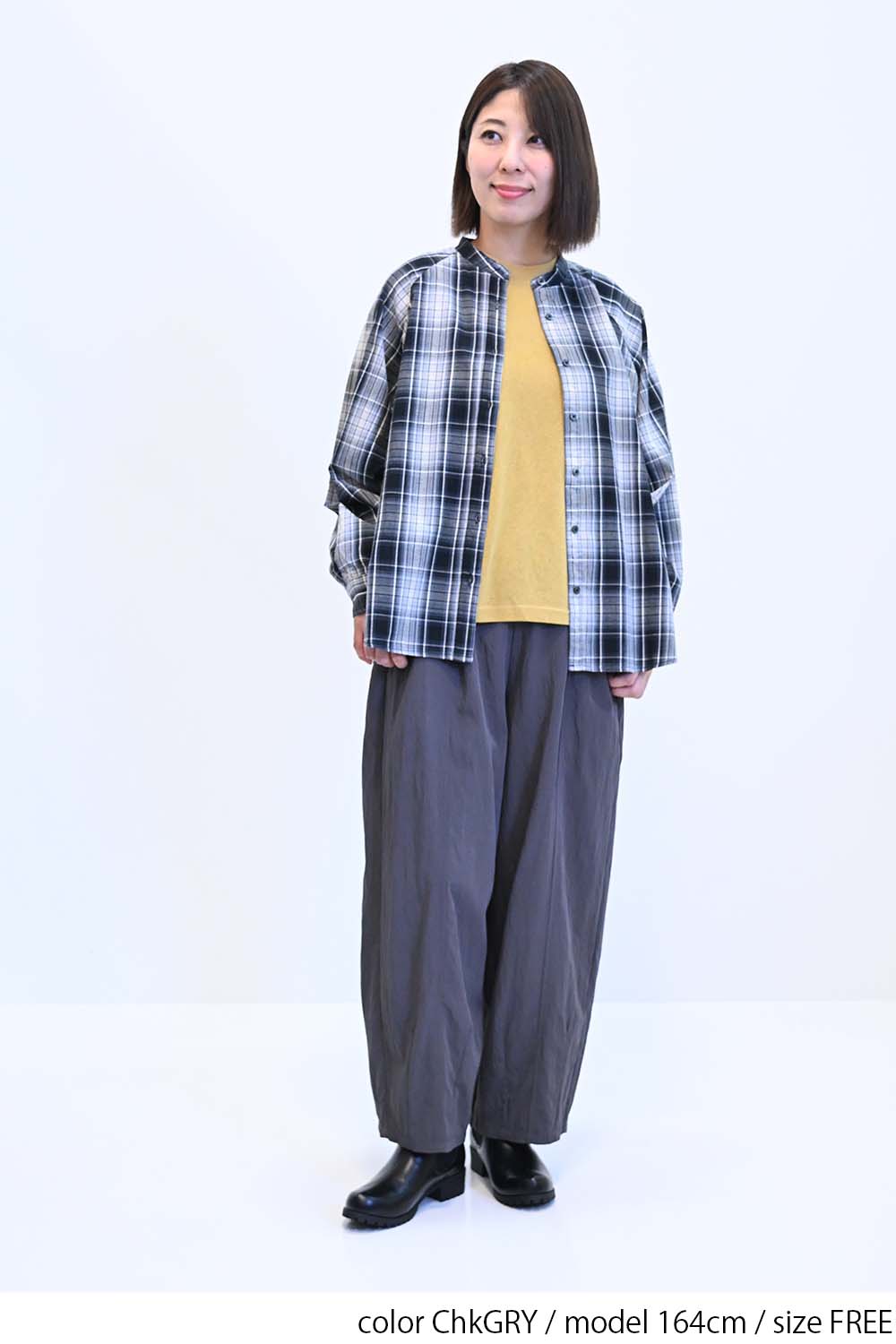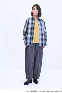 ラフになりすぎないチェック柄と、ふんわりとしたシルエットが魅力的なシャツです。