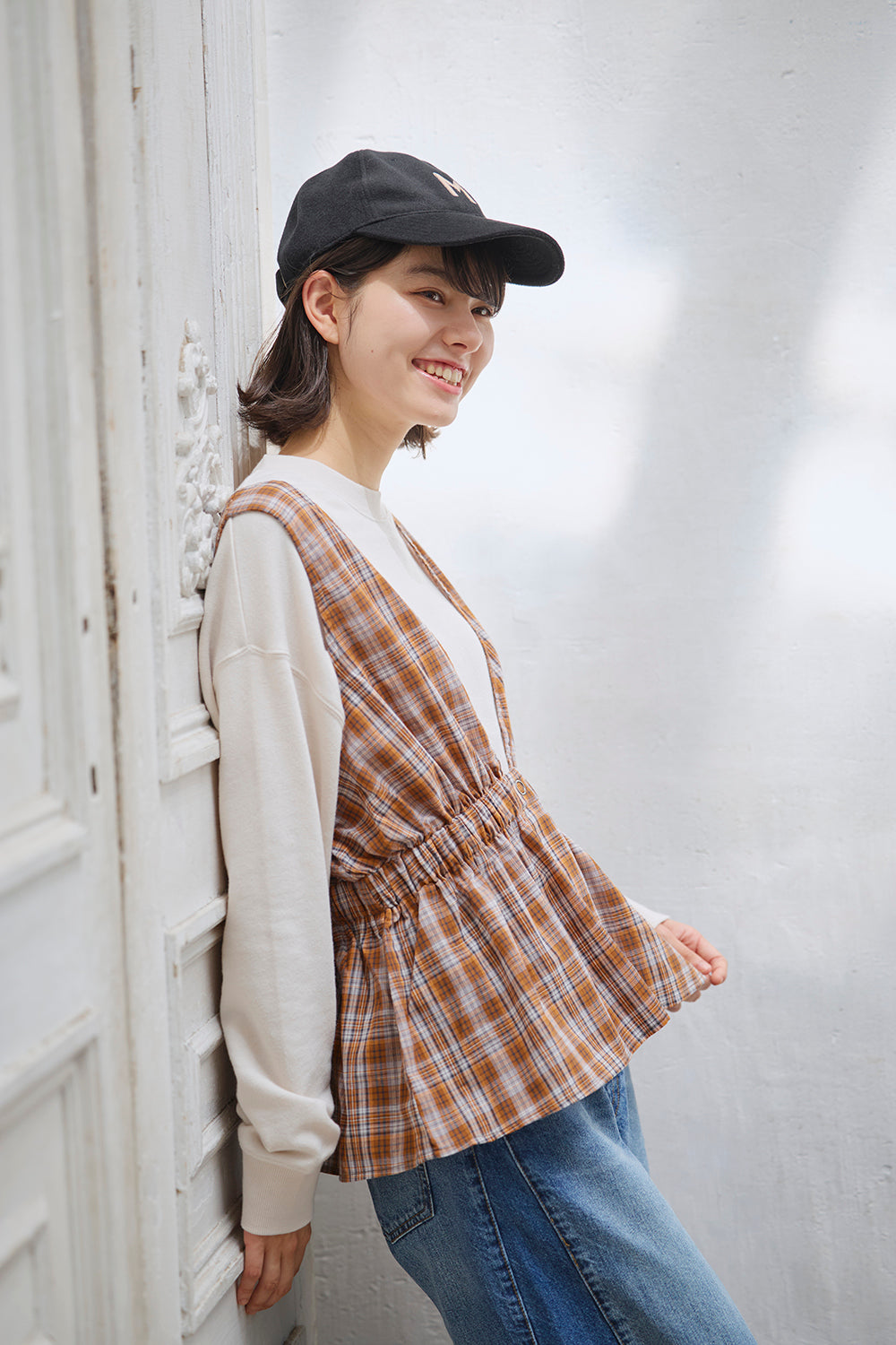 前後どちらを前にしても着用できる2WAY仕様で、コーディネートの幅がグッと広がります。