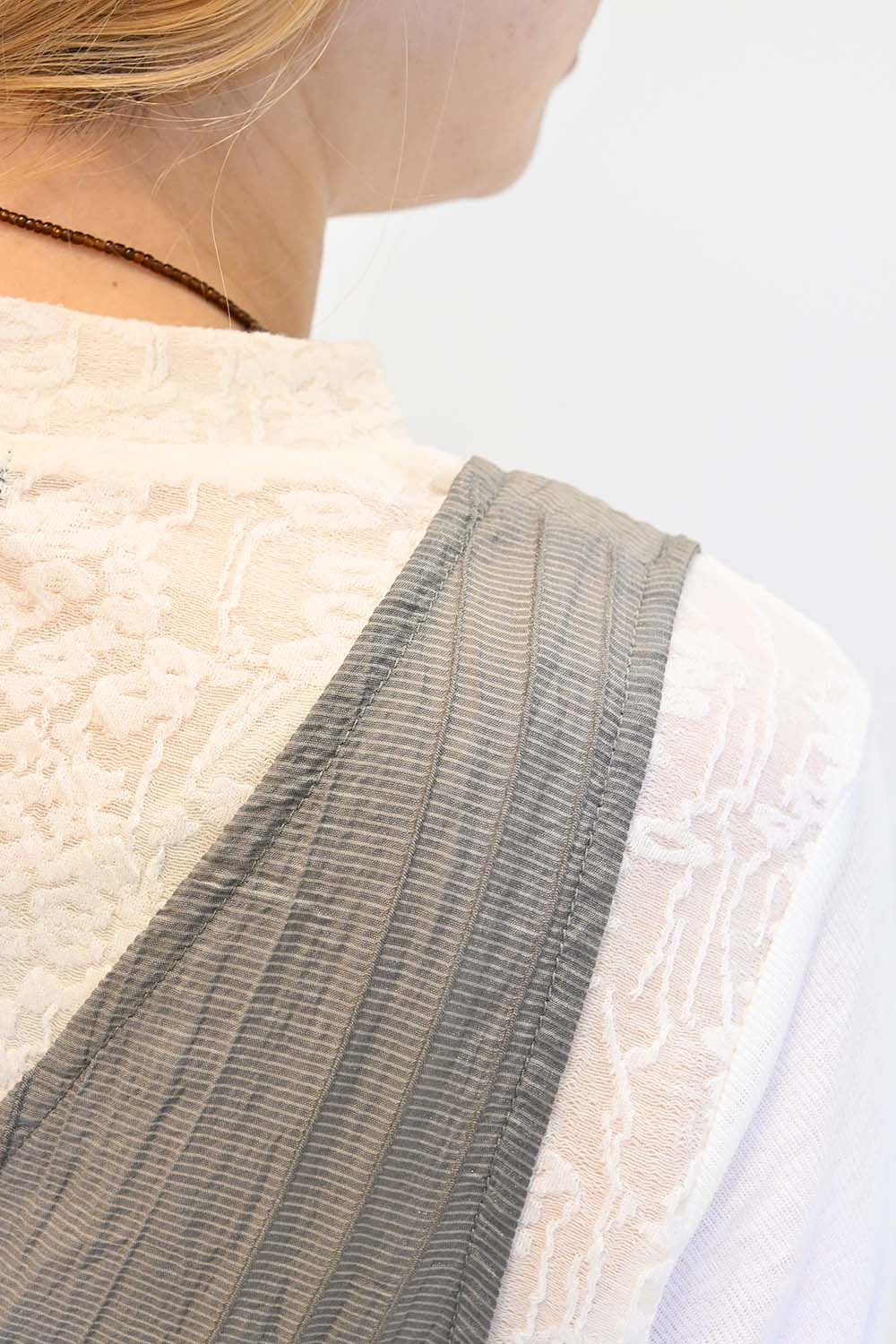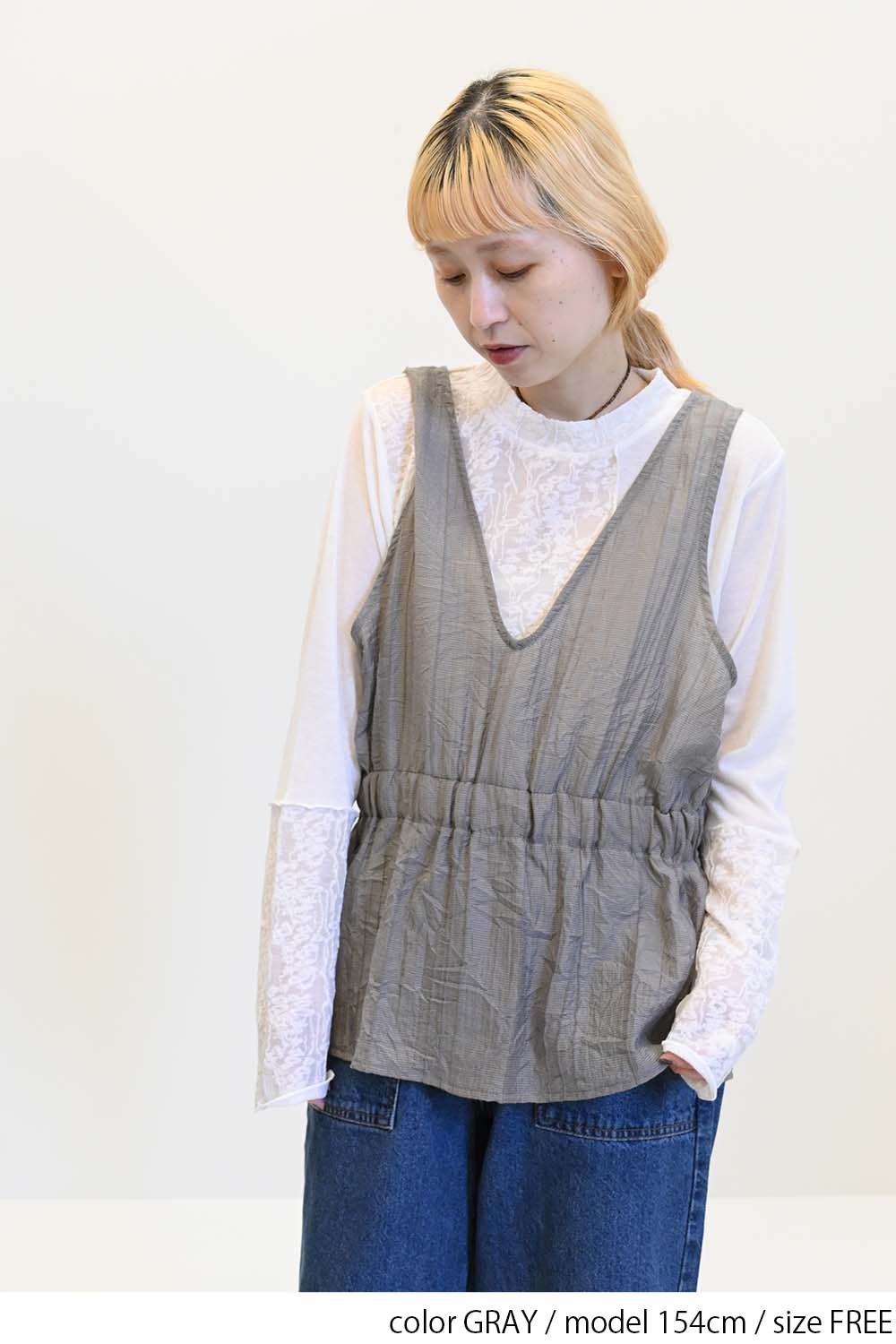 Tシャツやタンクトップ、ノースリーブのワンピースに重ねるだけで、いつものスタイルが旬の着こなしに変わります。