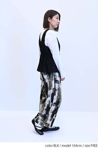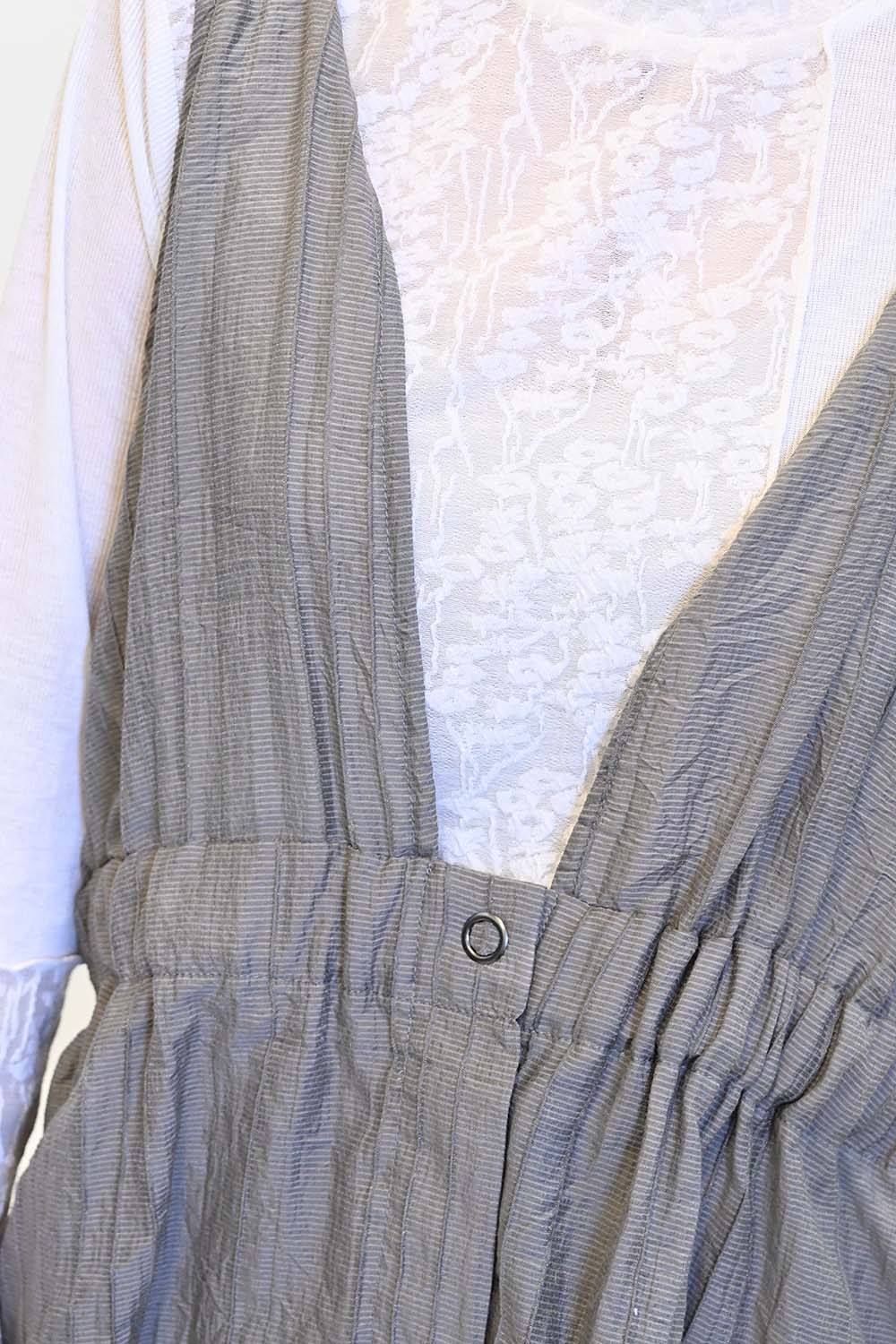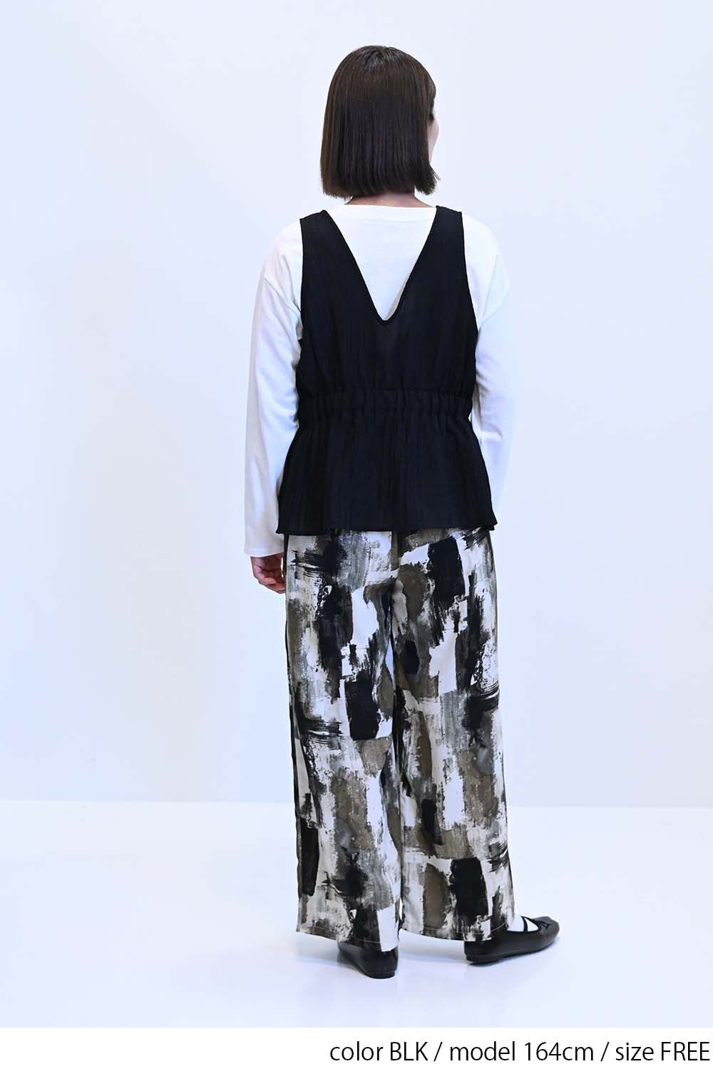 ウエスト部分にはギャザーがたっぷりと寄せられており、メリハリのある女性らしいシルエットを演出します。
