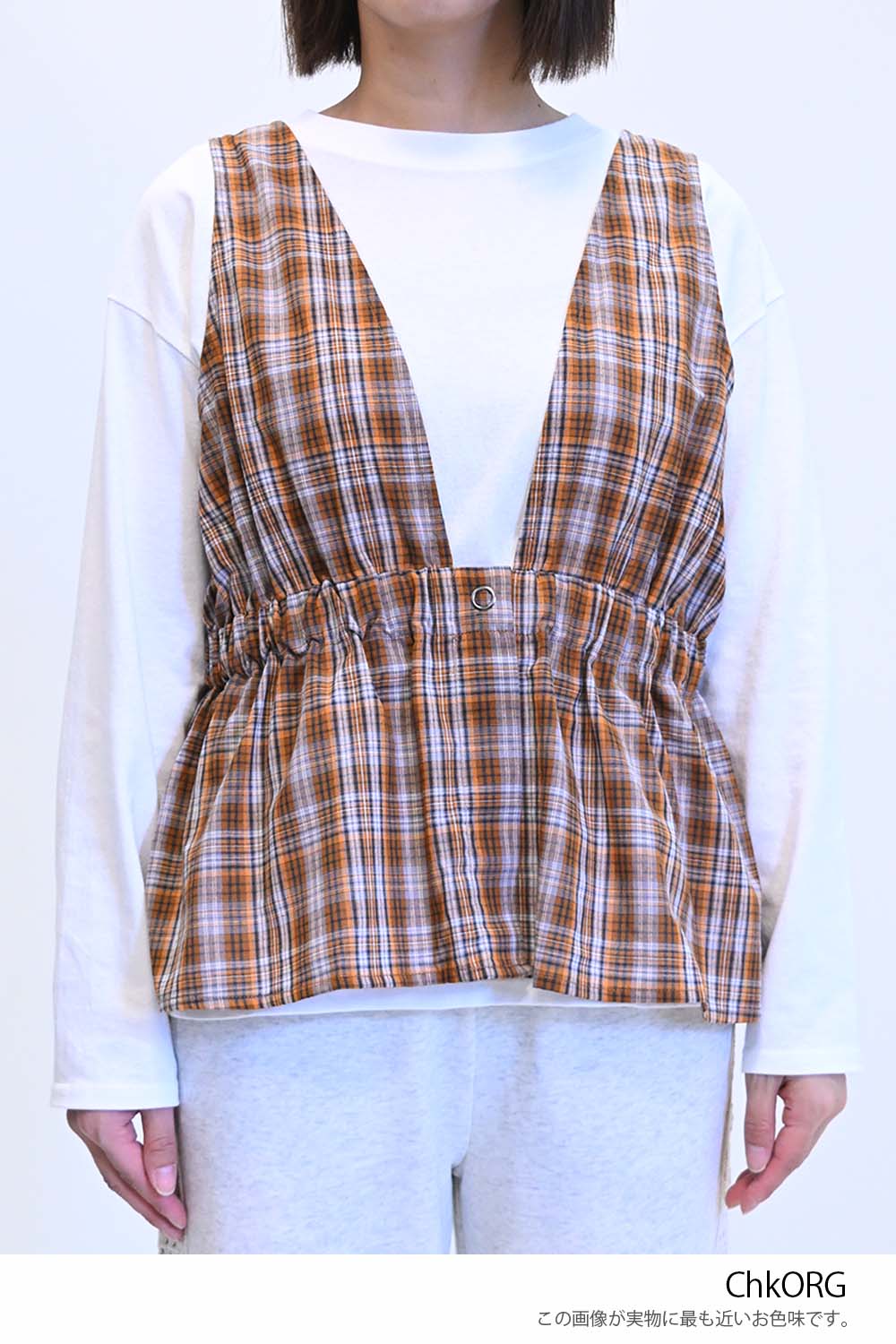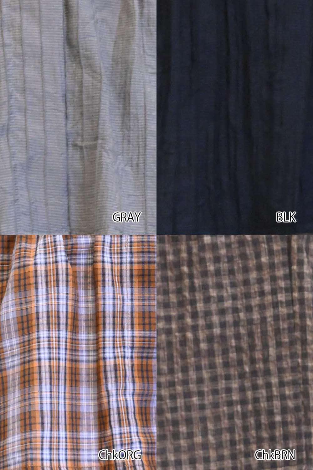 | 素材 | 【GRAY,BLK】再生繊維(セルロース) 85%、ナイロン 15% 【ChkORG】綿 100% 【ChkBRN】ポリエステル 75%、綿 25% |