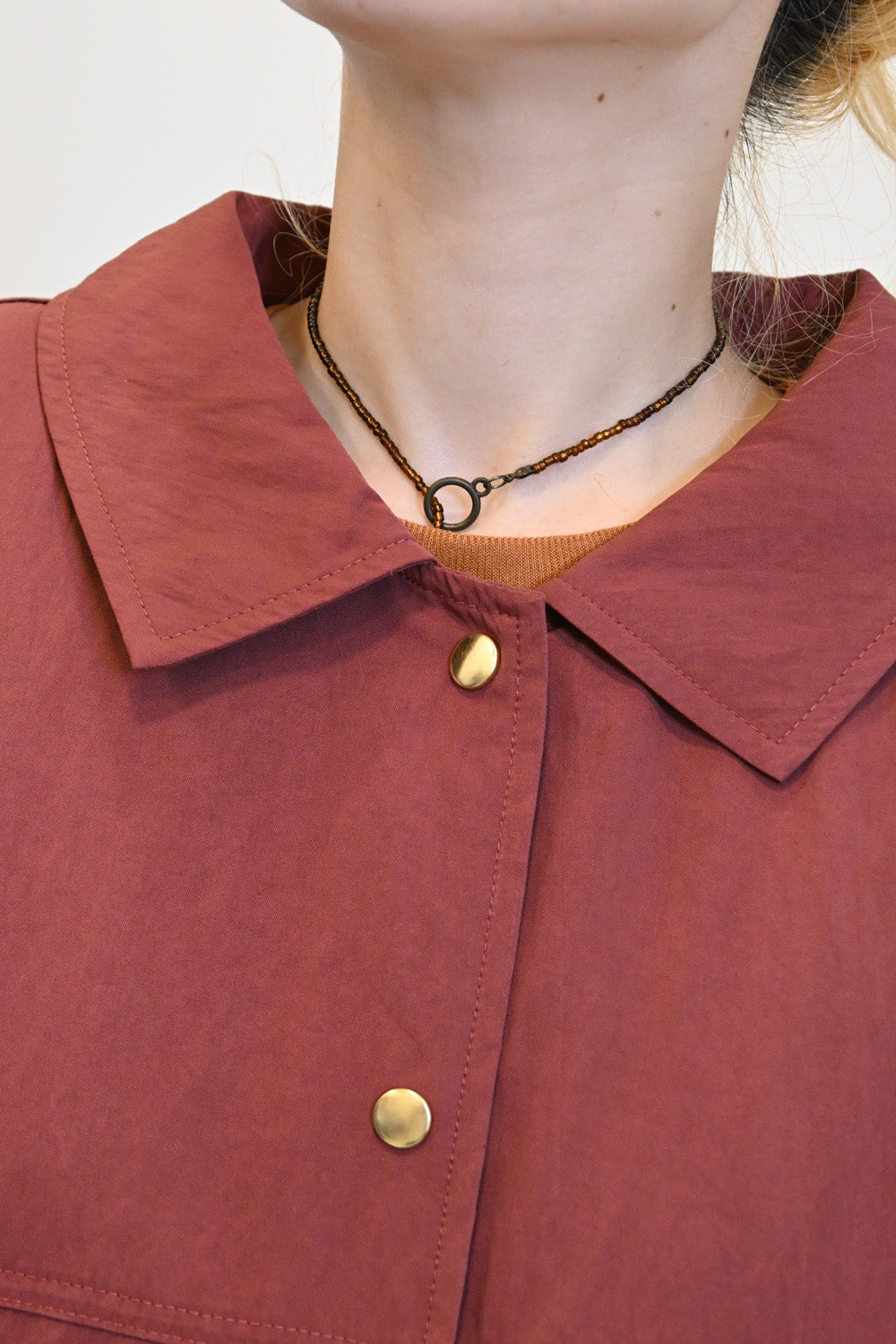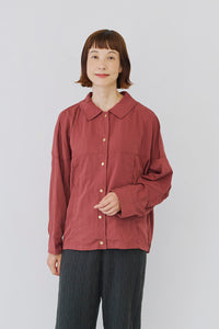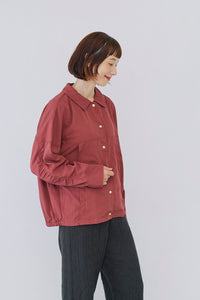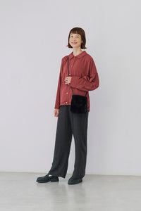 シンプルなボタン留めでコーディネートに馴染みやすいデザインに仕上げました。