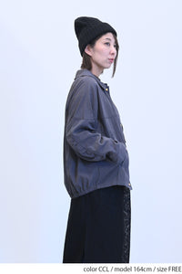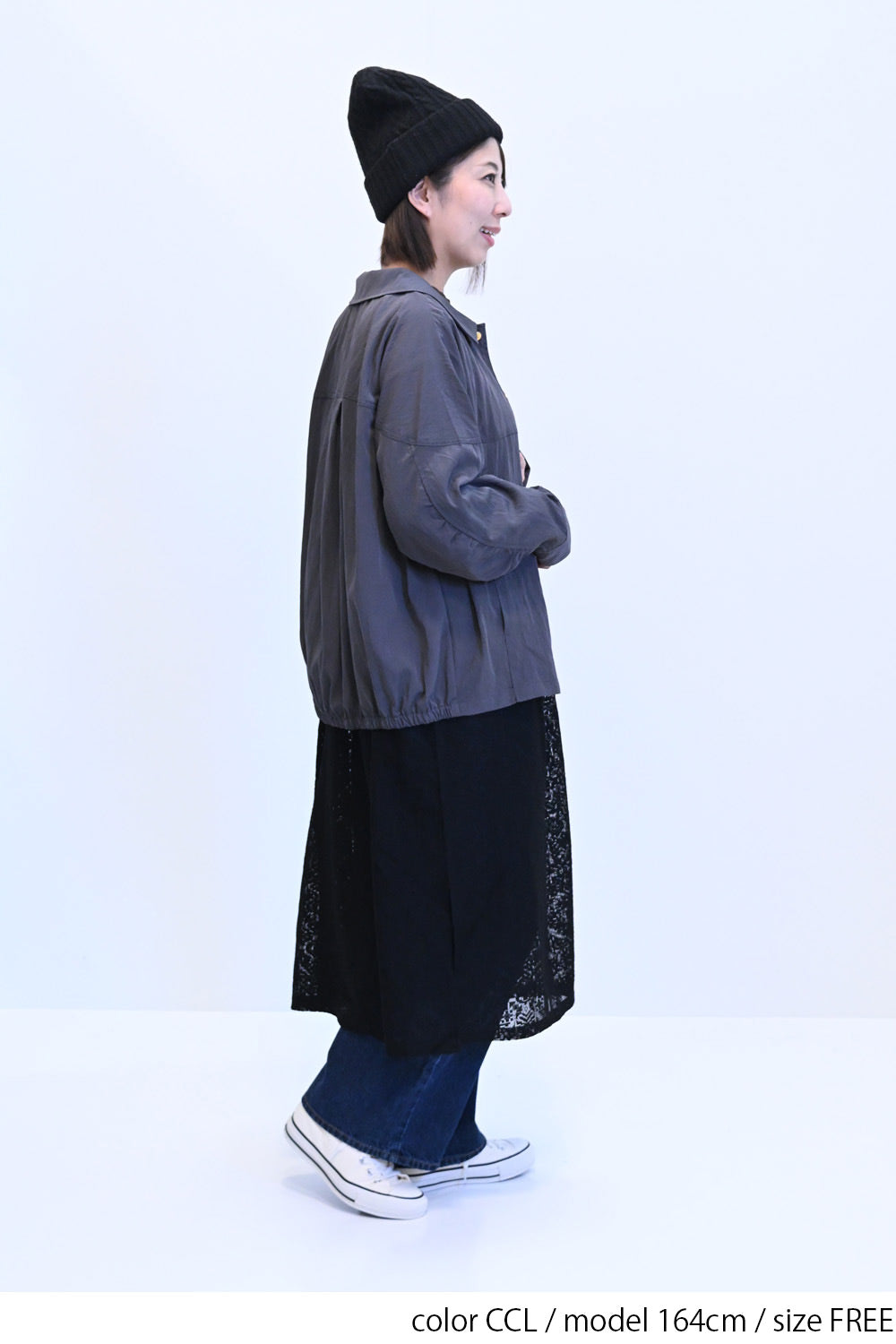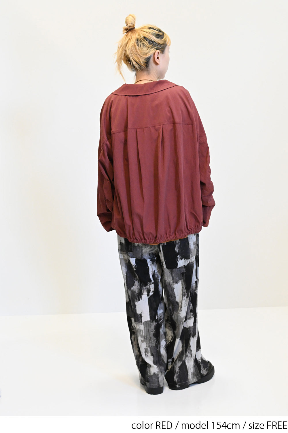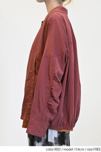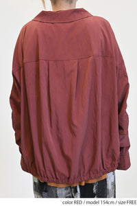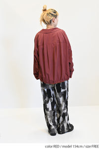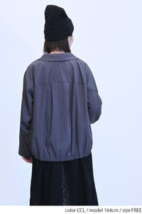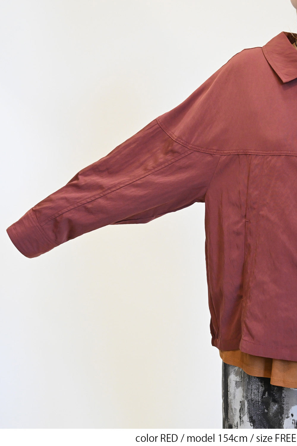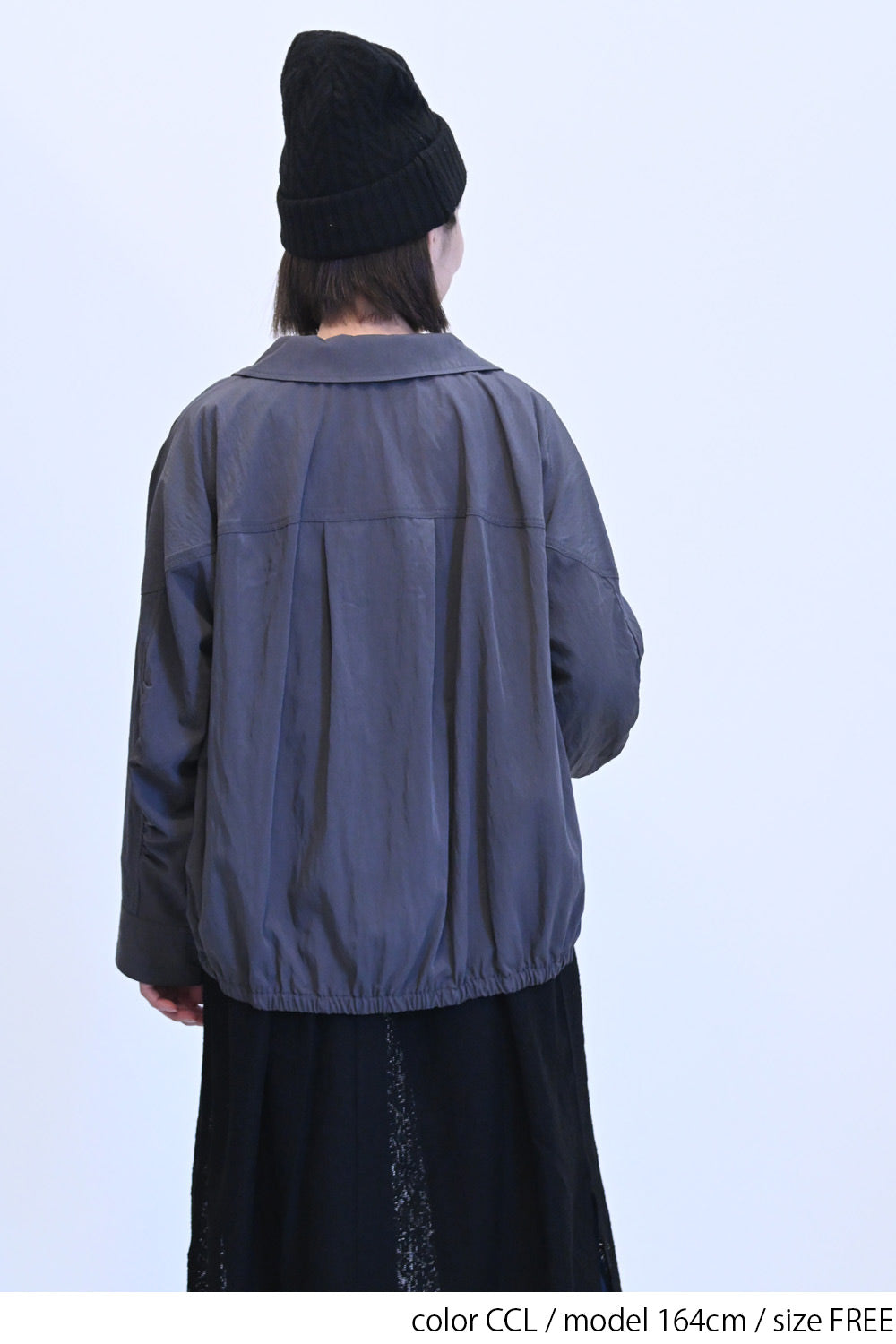 程よいハリ感と光沢のある素材が上品な印象を与える、バックボリュームブルゾンです。
