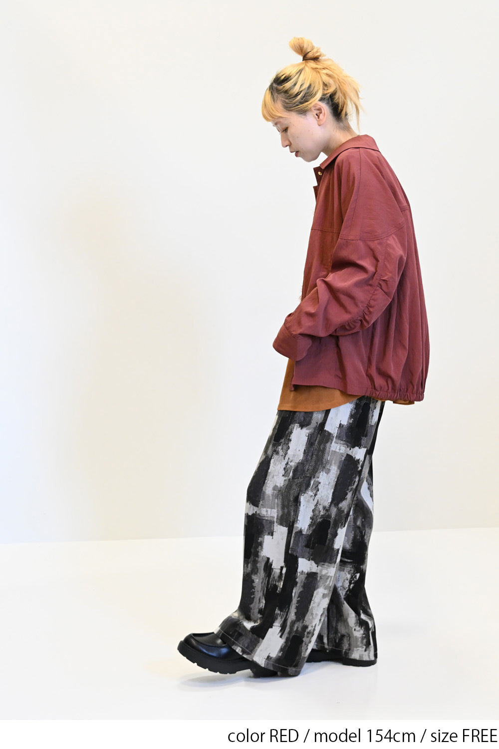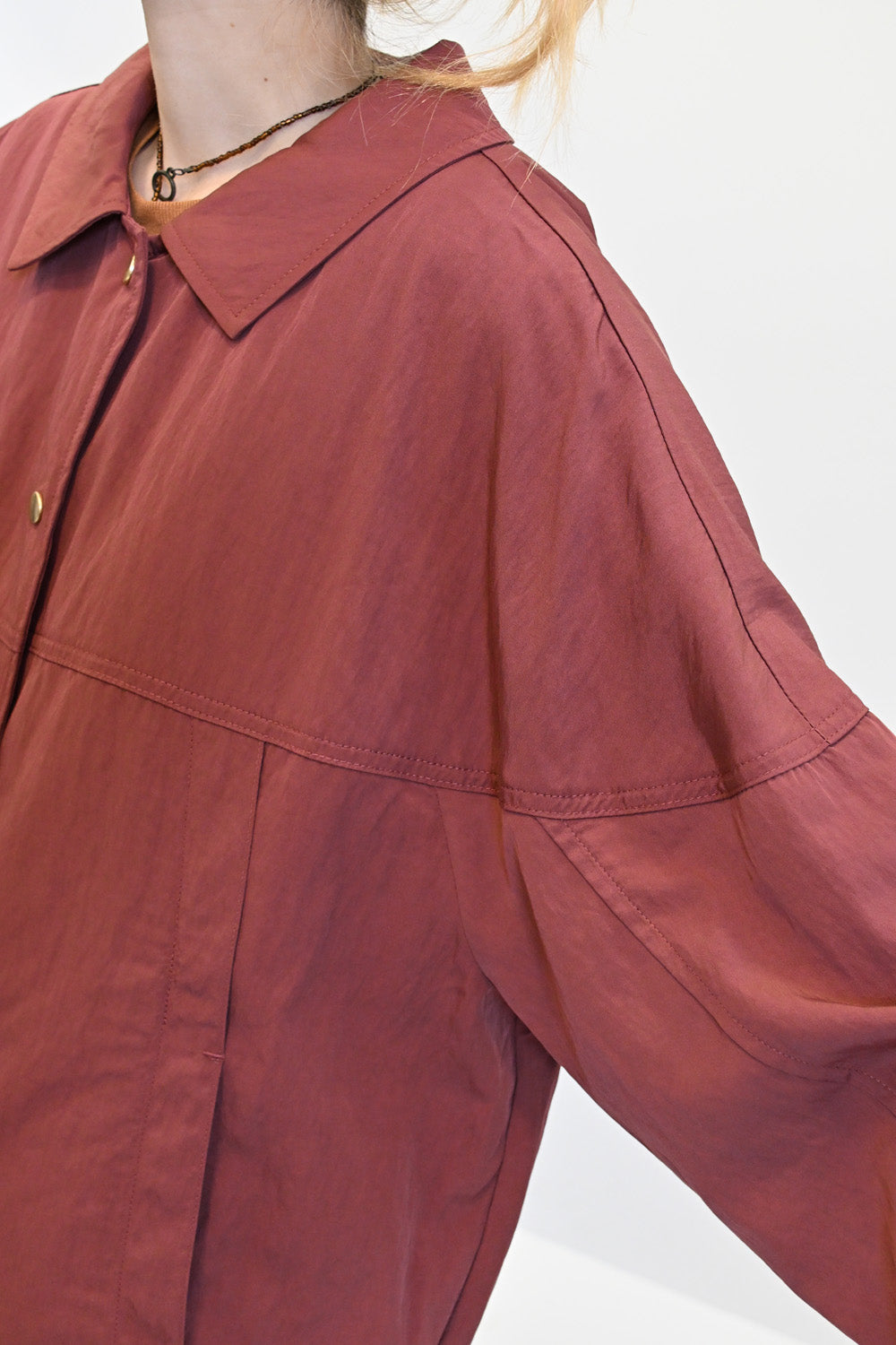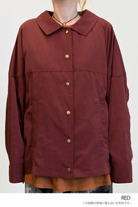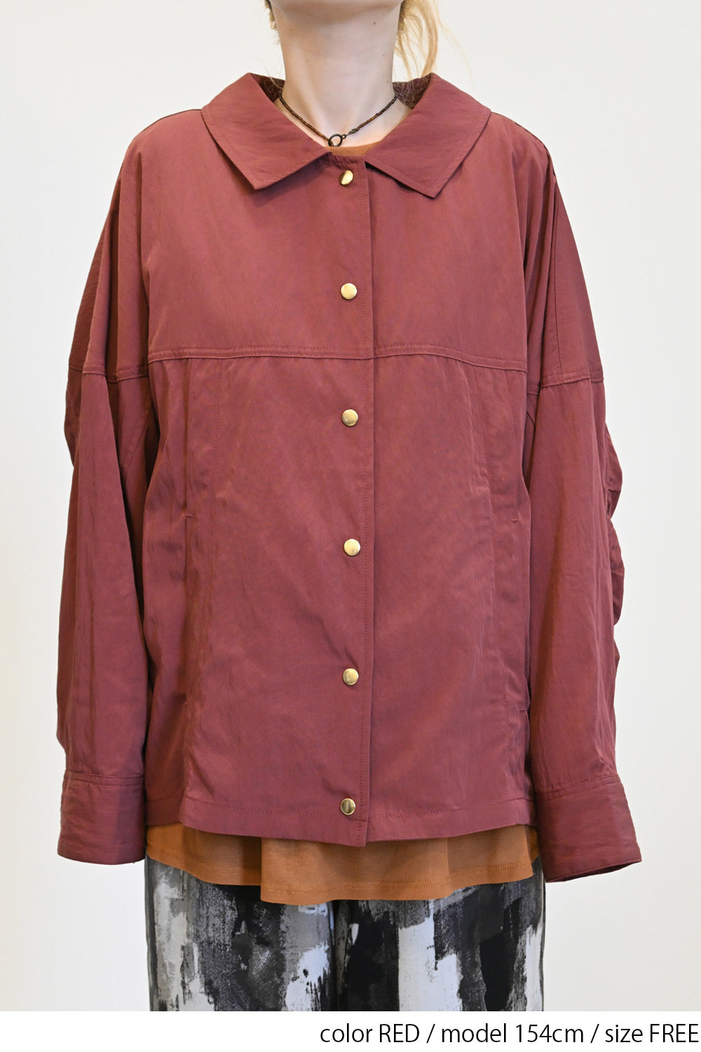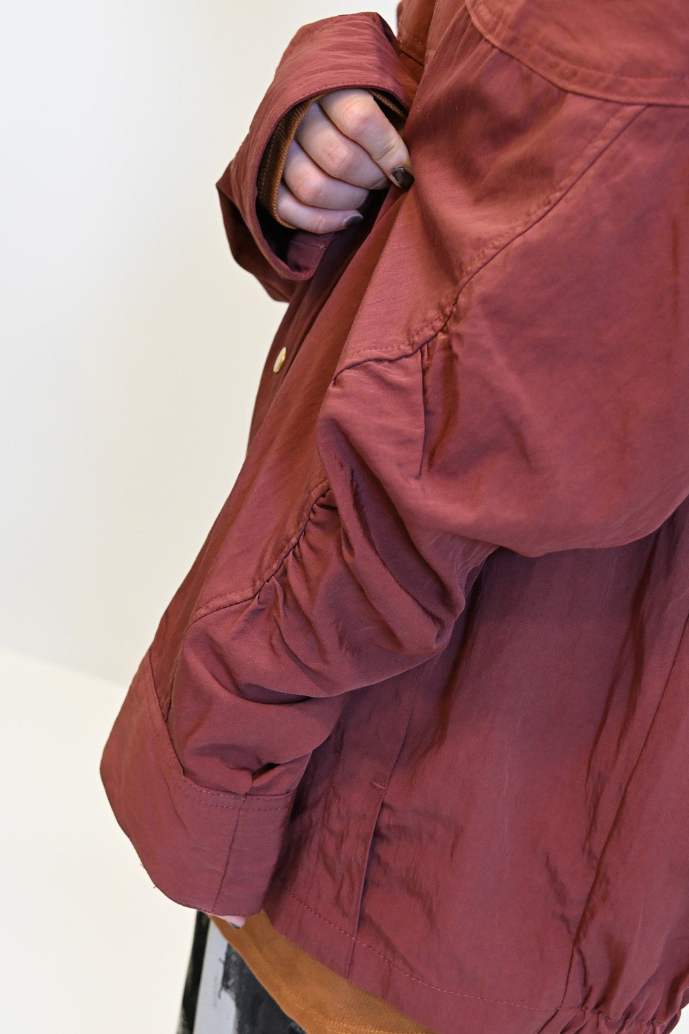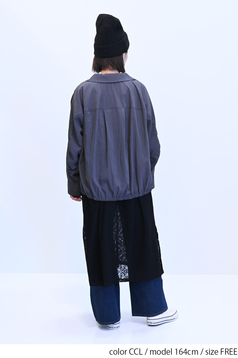 程よいハリ感と光沢のある素材が上品な印象を与える、バックボリュームブルゾンです。