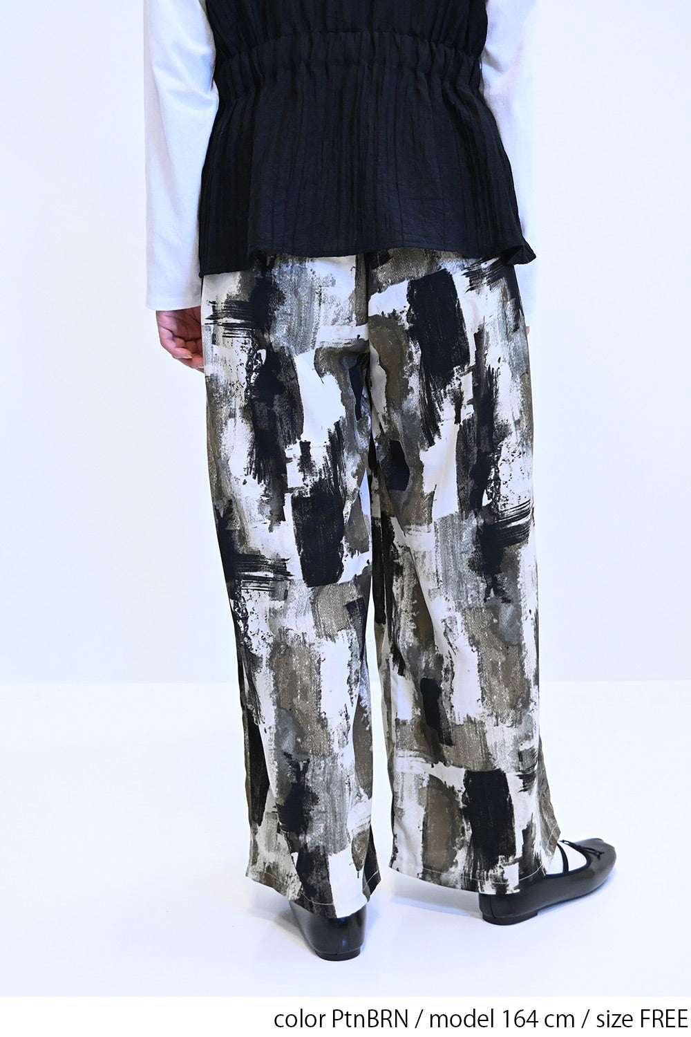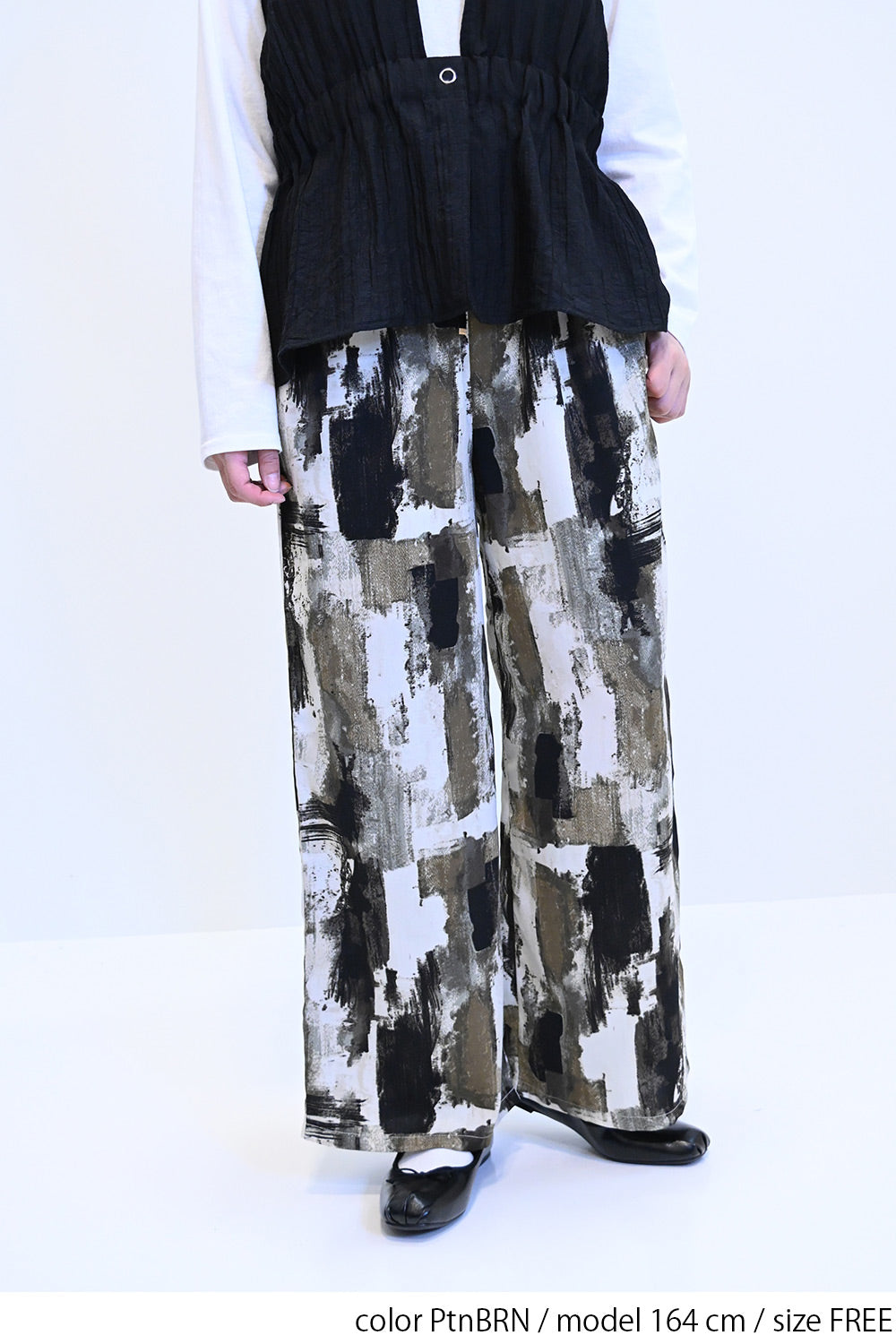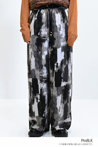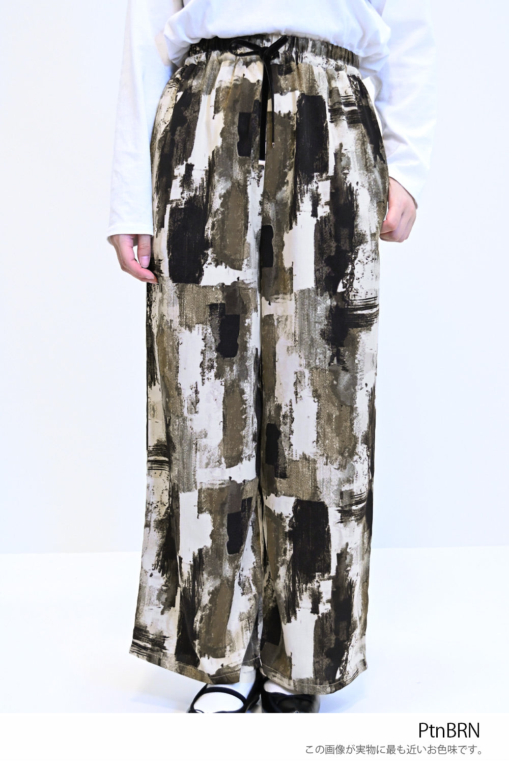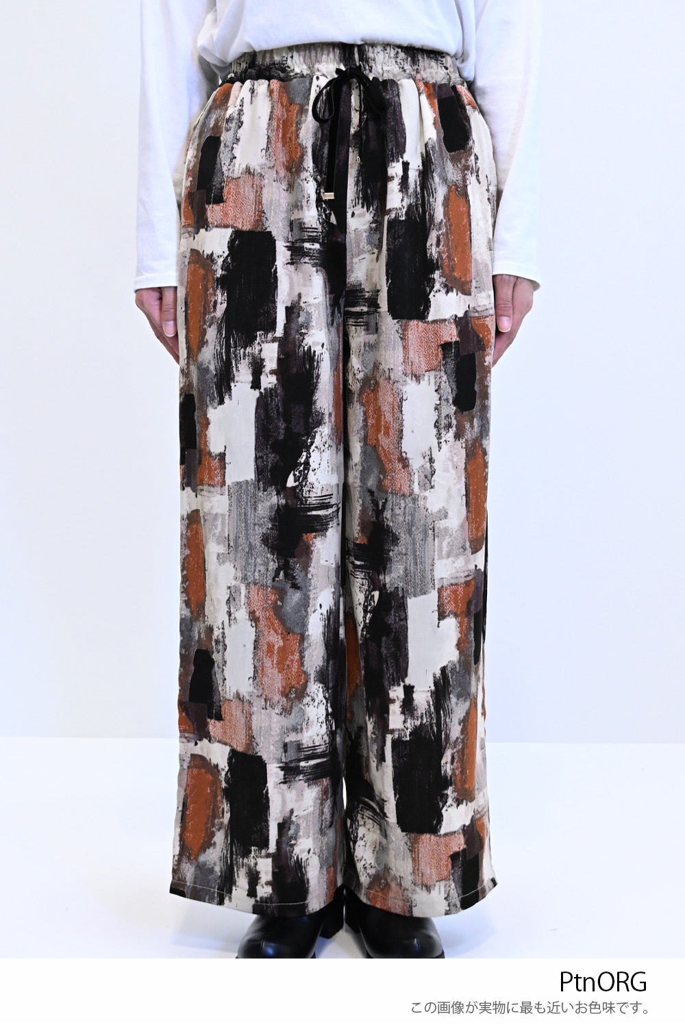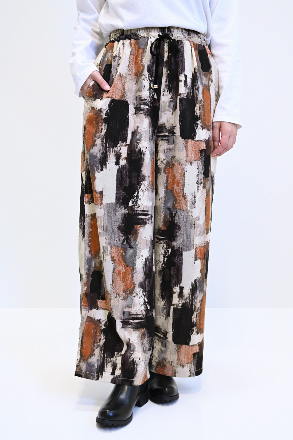 コーディネートの主役になる、個性的な柄のイージーパンツです。
