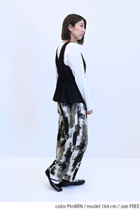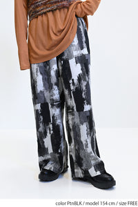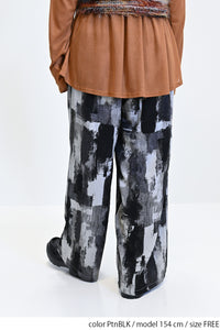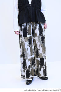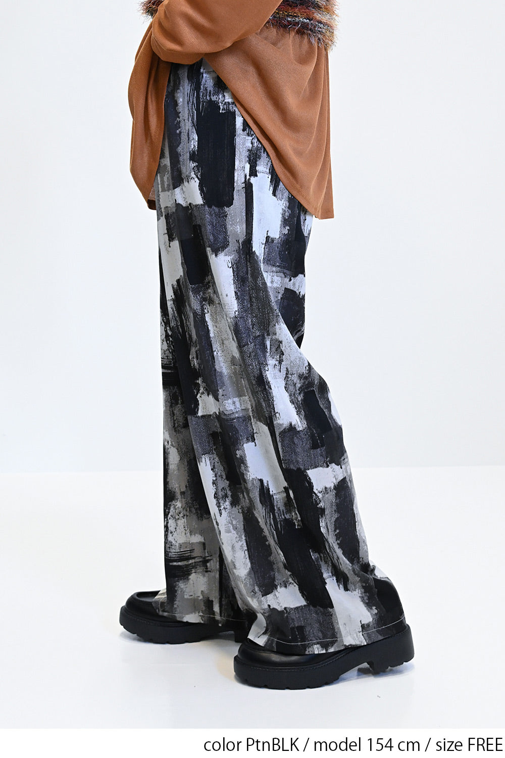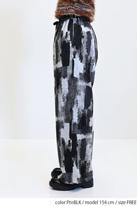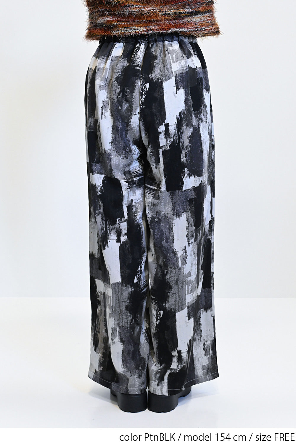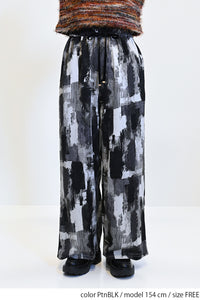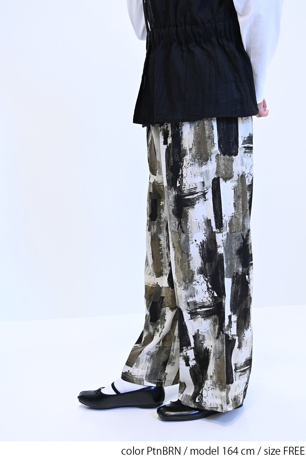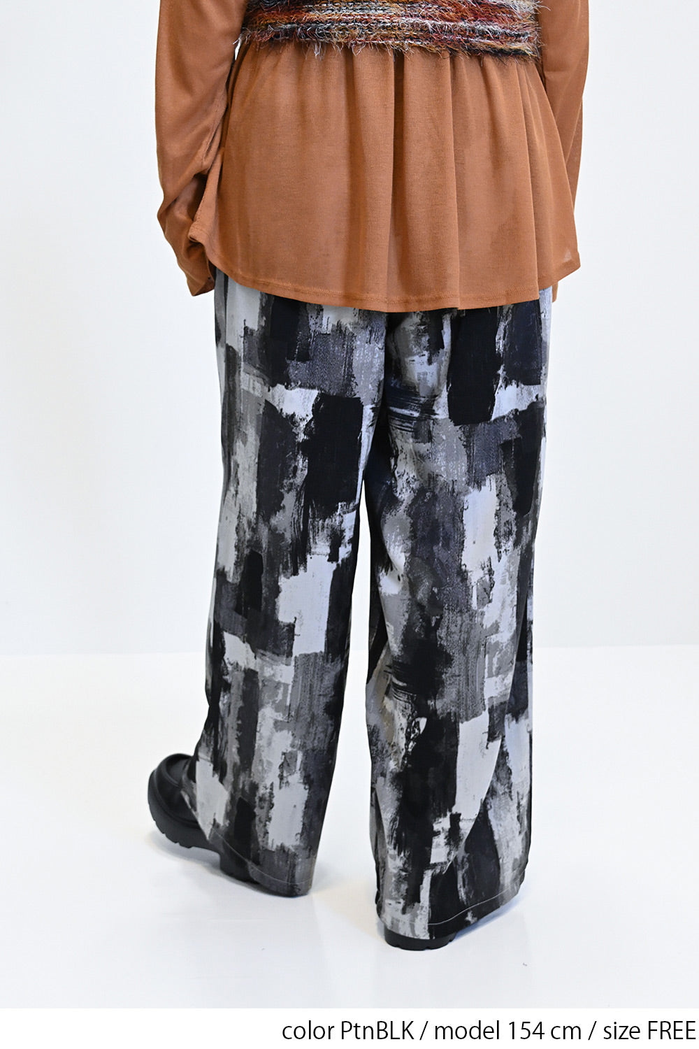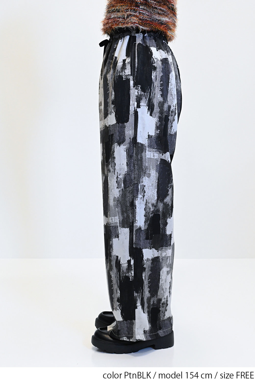 コーディネートの主役になる、個性的な柄のイージーパンツです。