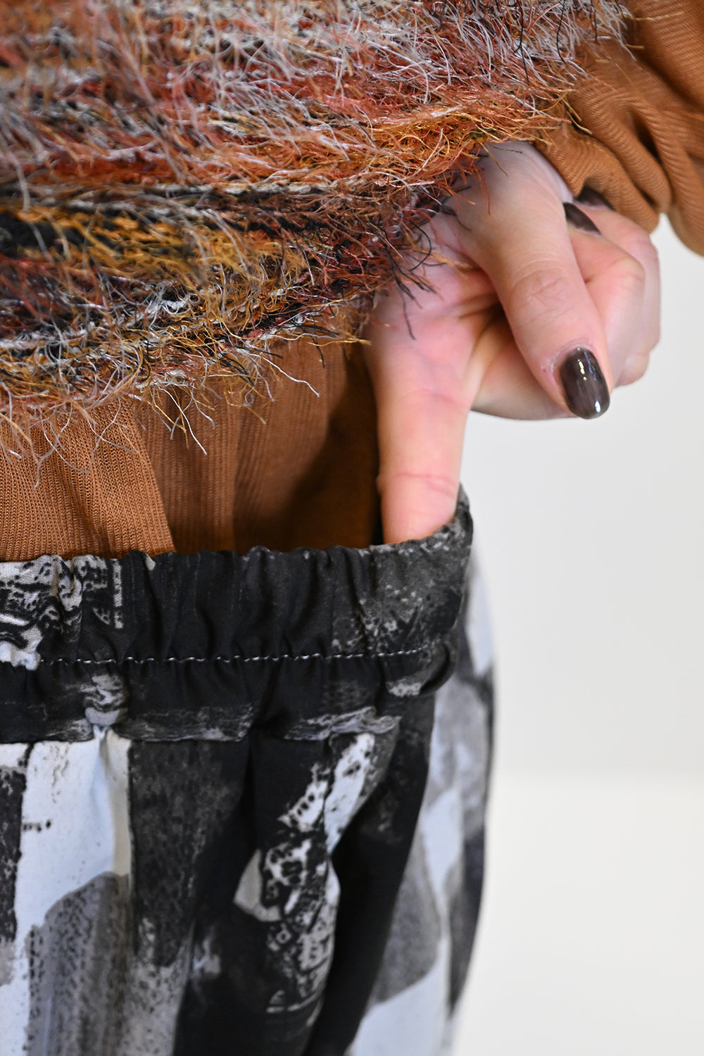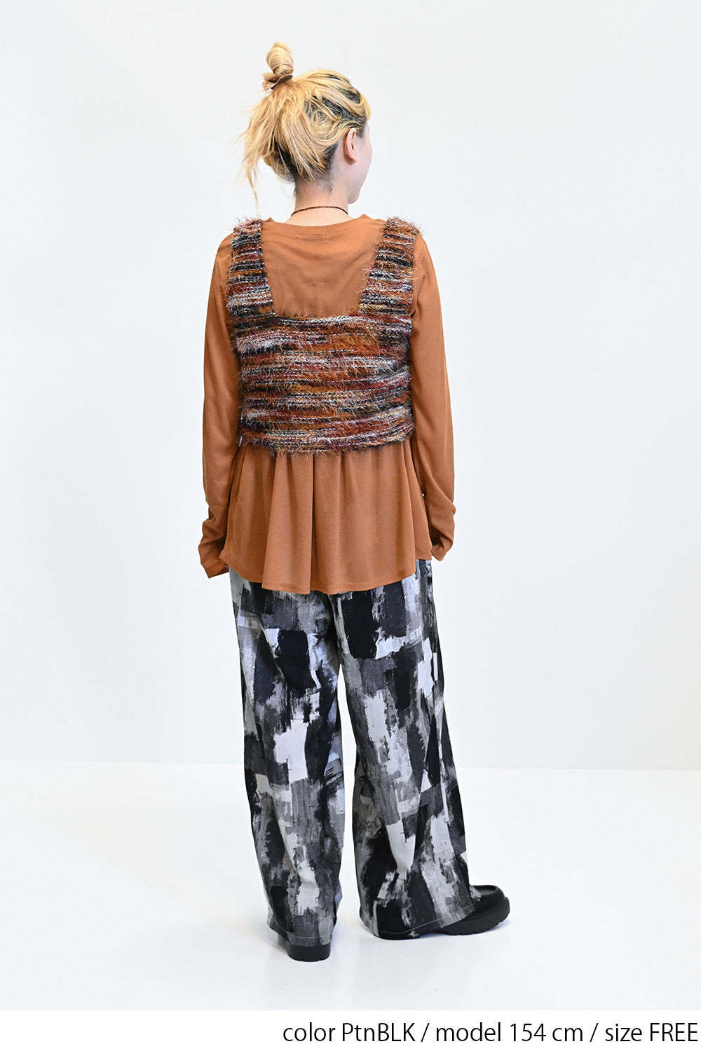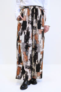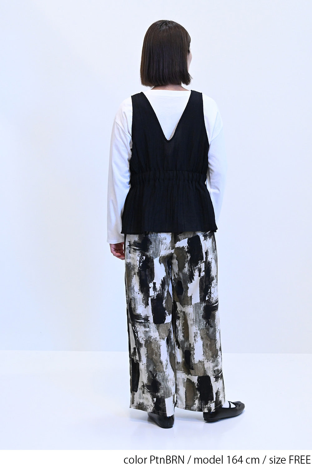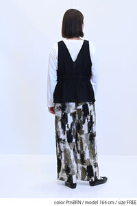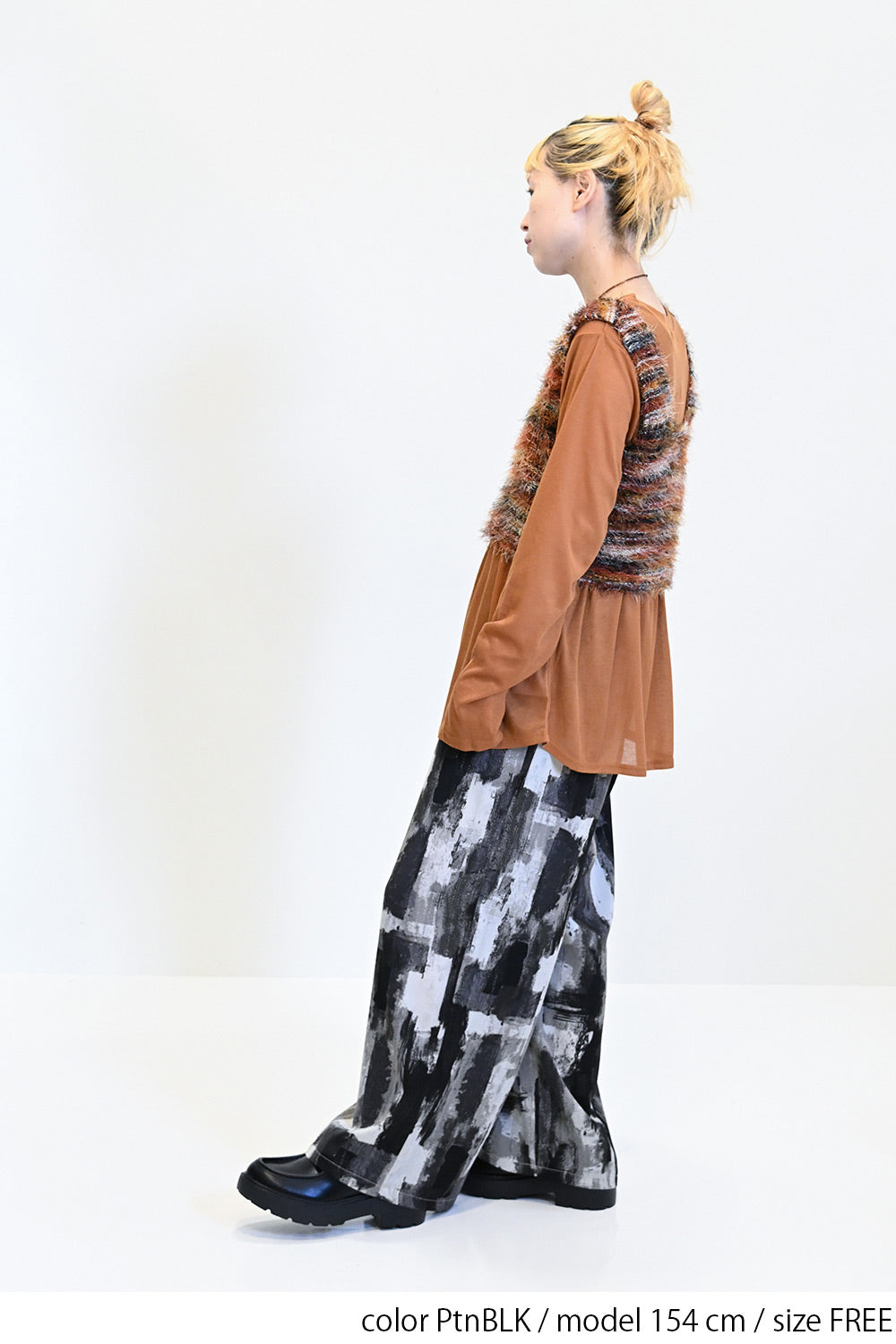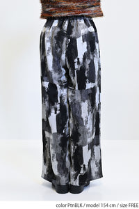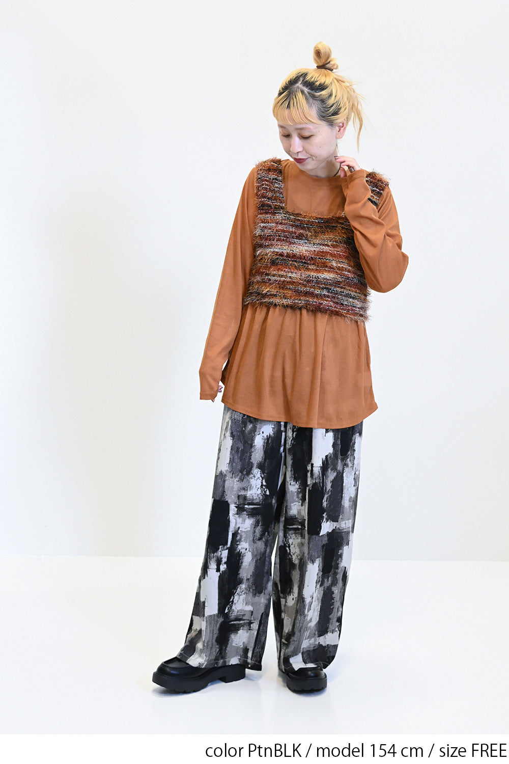コーディネートの主役になる、個性的な柄のイージーパンツです。