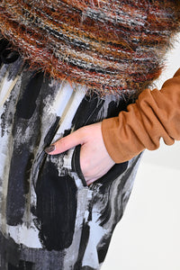 アーティスティックな総柄がスタイリングにこなれ感をプラスしてくれる一枚です。