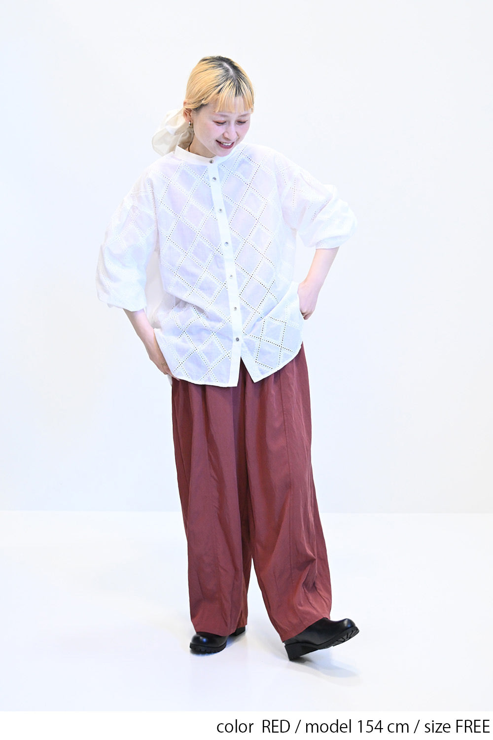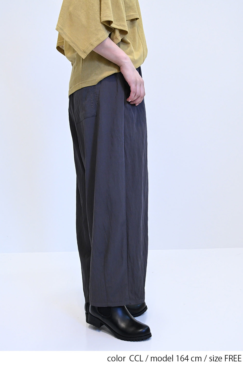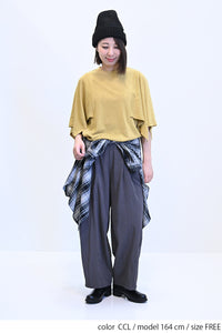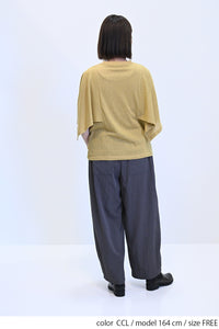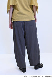 股上が深く、裾に向かって緩やかに細くなるコクーンシルエット。