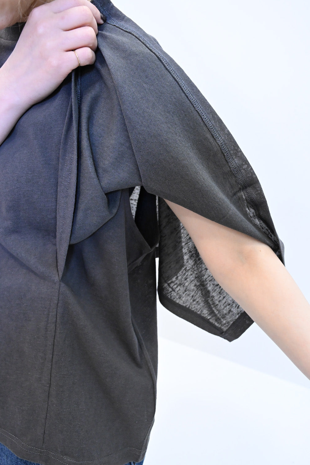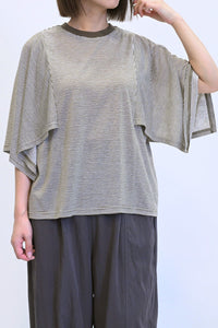 ベーシックなTシャツに、トレンド感のあるデザインスリーブを取り入れた、一枚でサマになるカットソーです。