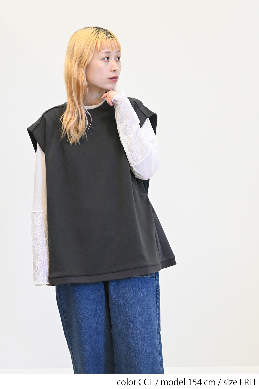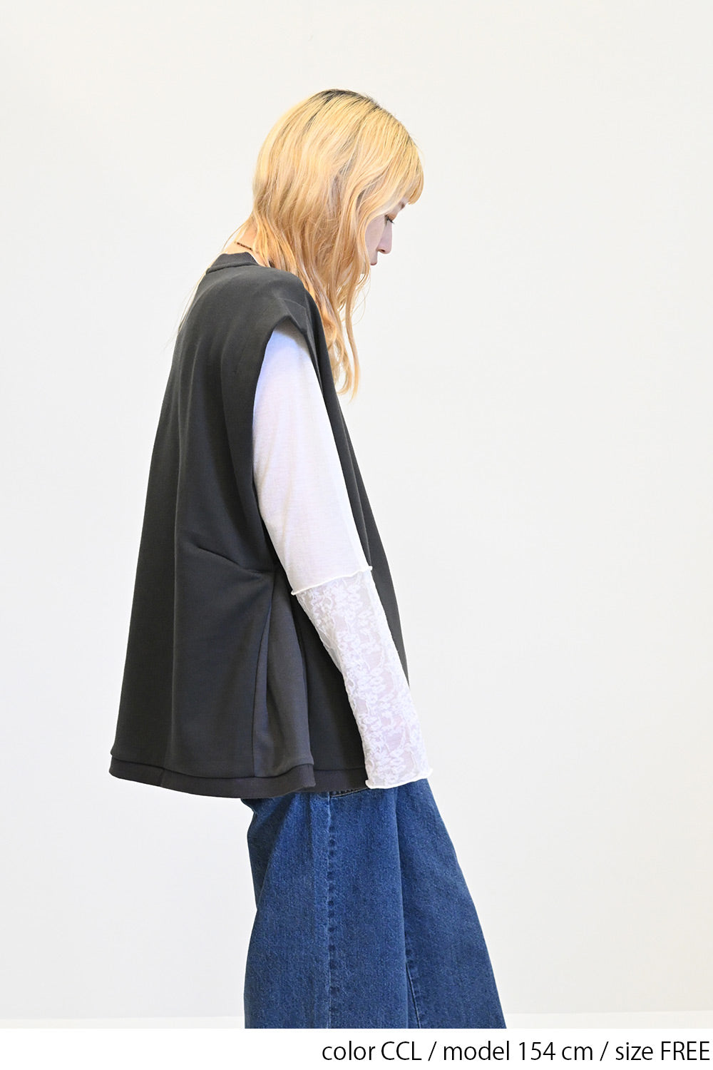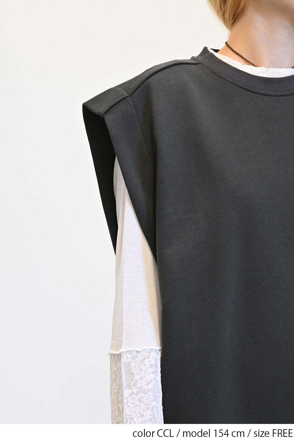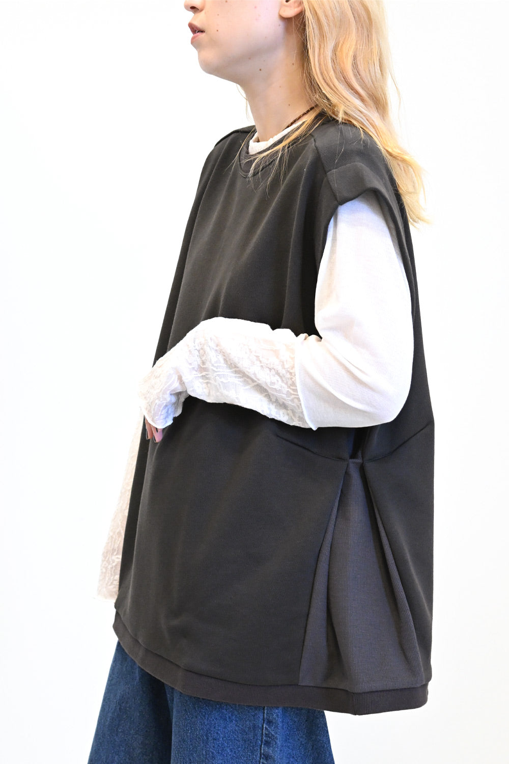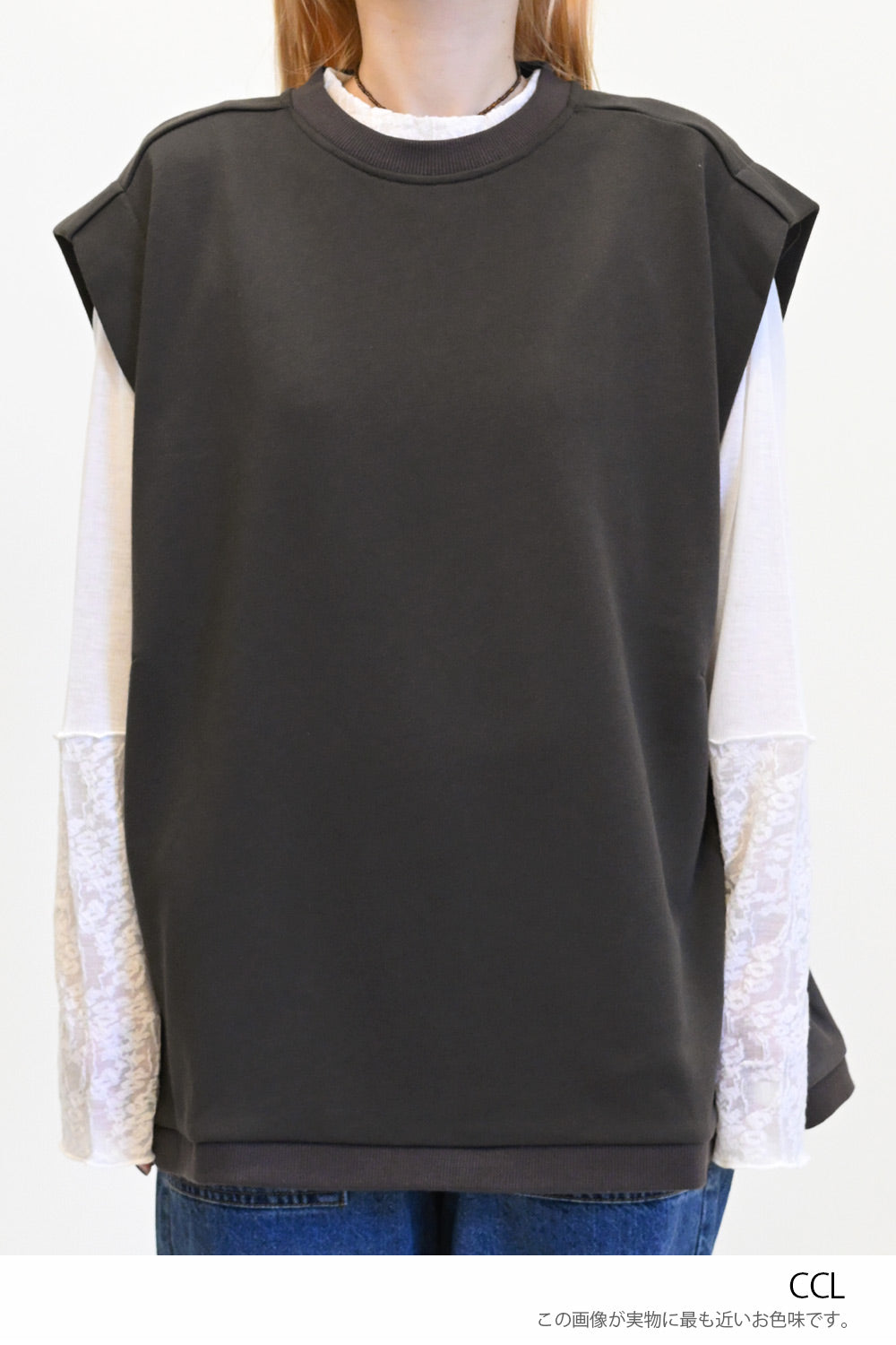 いつものコーディネートにプラスするだけで、旬のレイヤードスタイルが完成する一枚です。